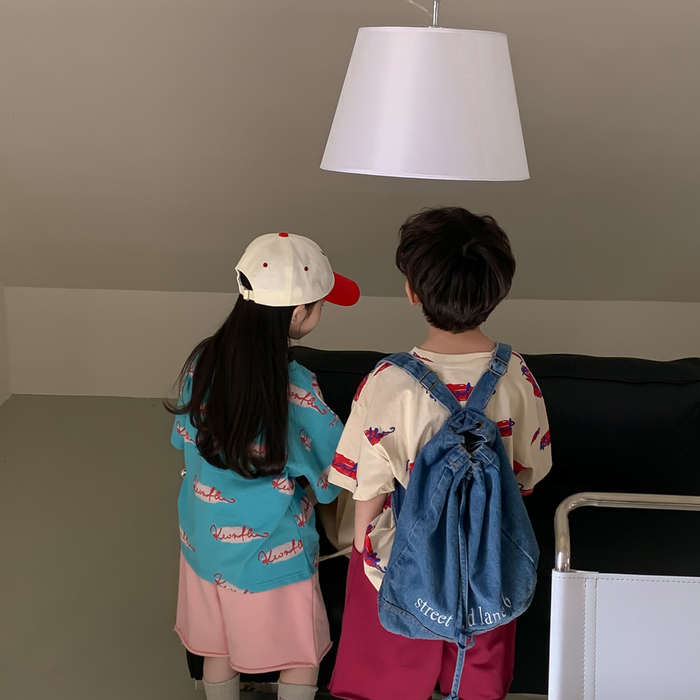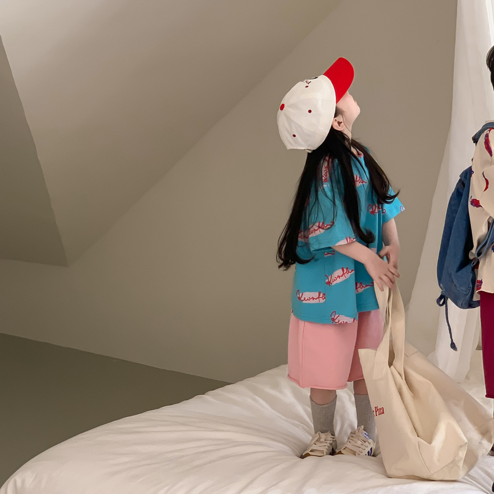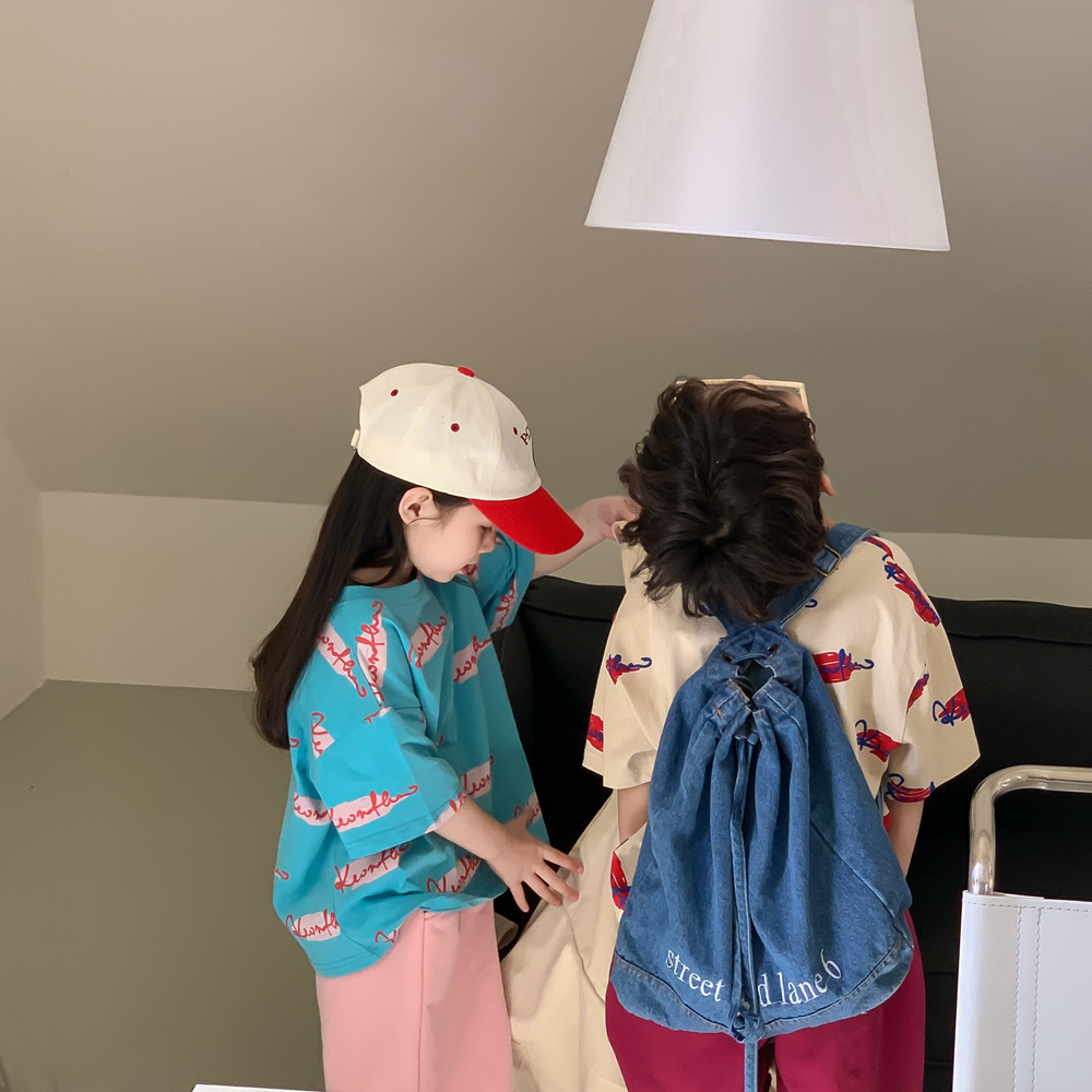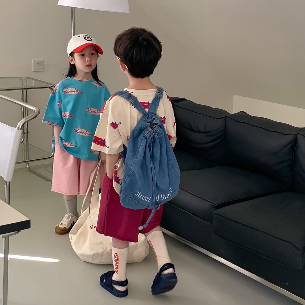 아동 티셔츠 2025 여름 스타일 소년과 소녀 캐주얼 루즈 한국 스타일 아동 낙서 문자 인쇄 반팔 Xiaomeng스토어 가기