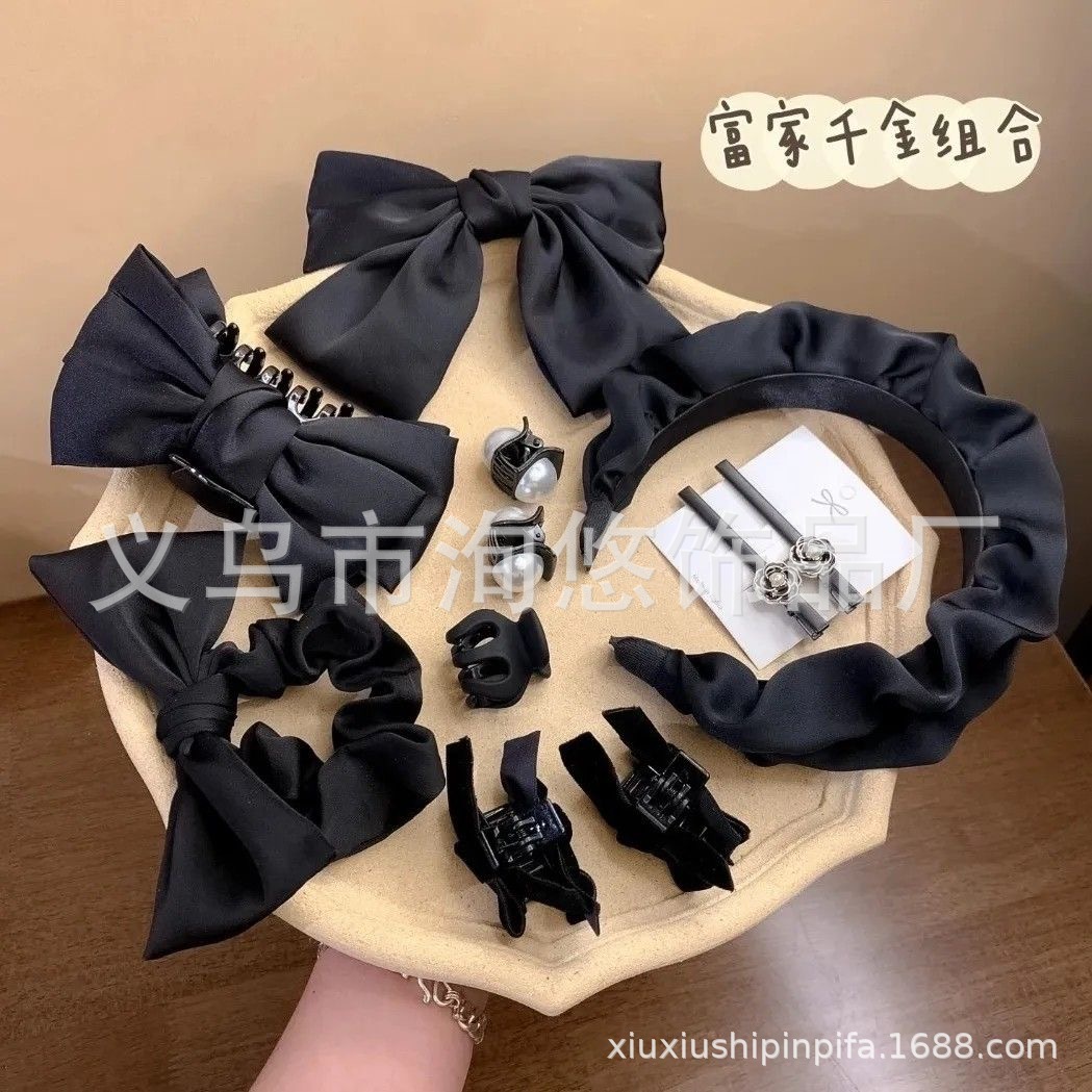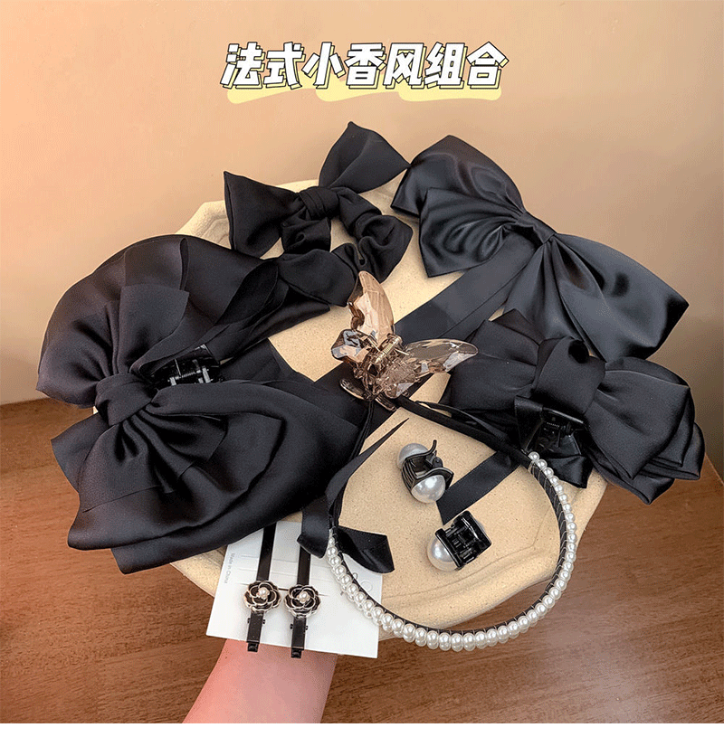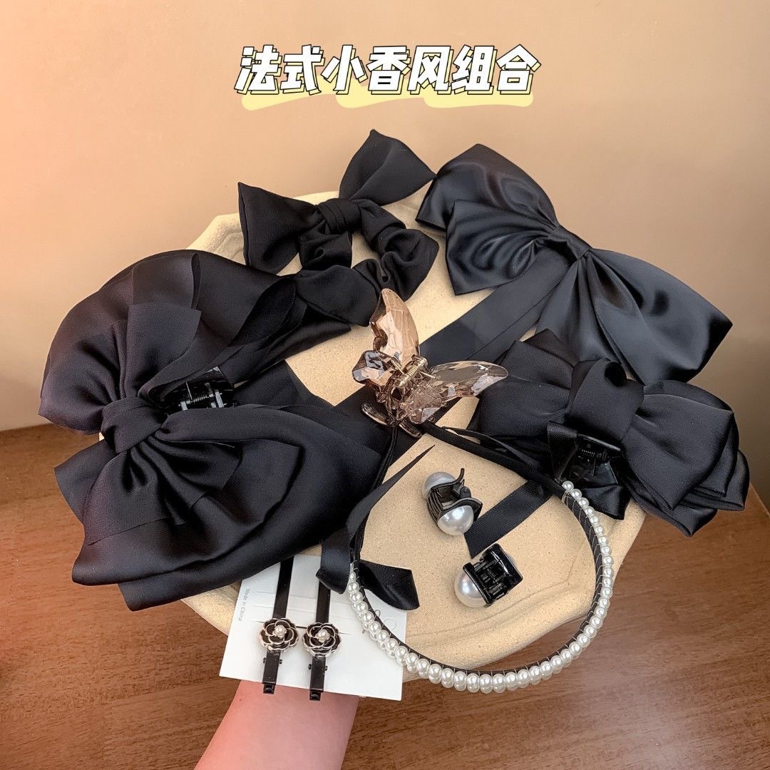 TikTok 프랑스 스타일 샤넬 스타일 조합 탈출 공주 머리핀 세트 큰 진주 우아한 그랩 활 머리띠