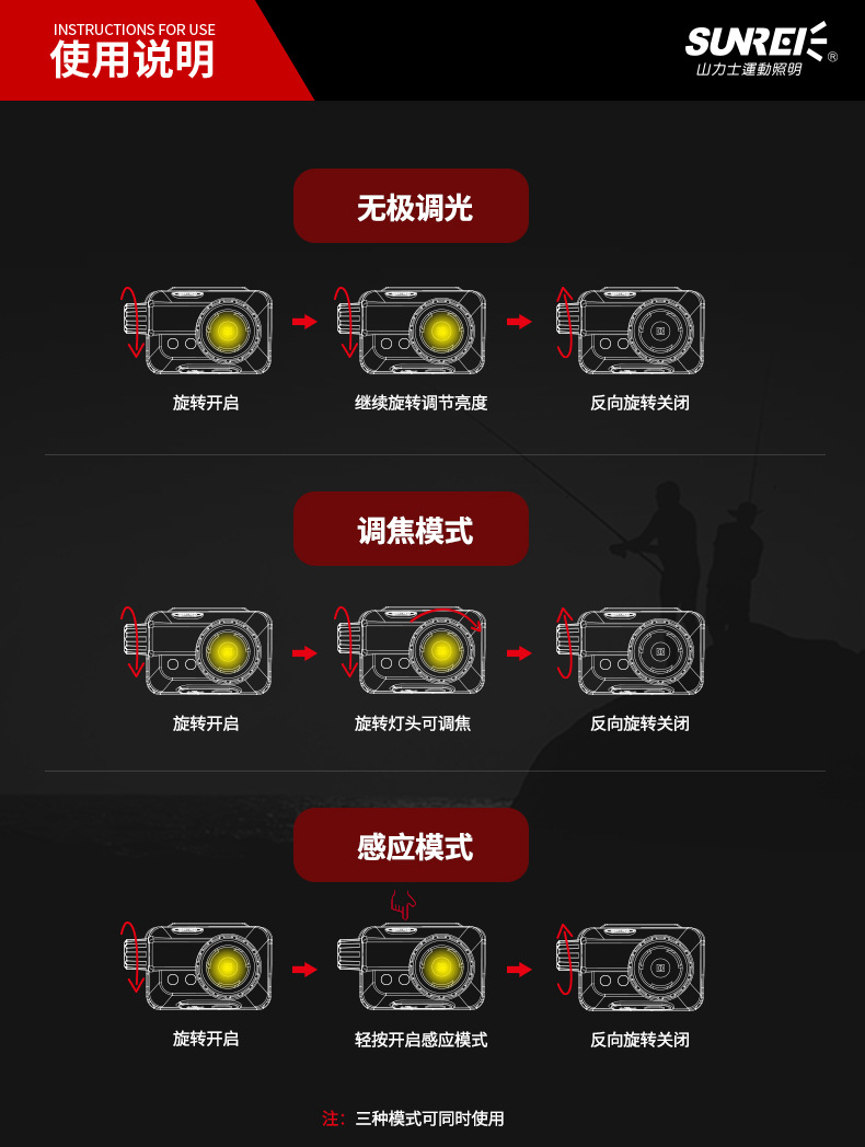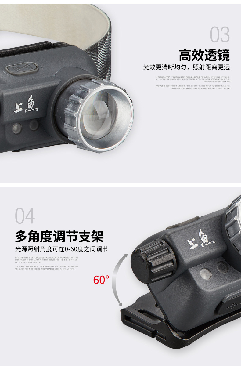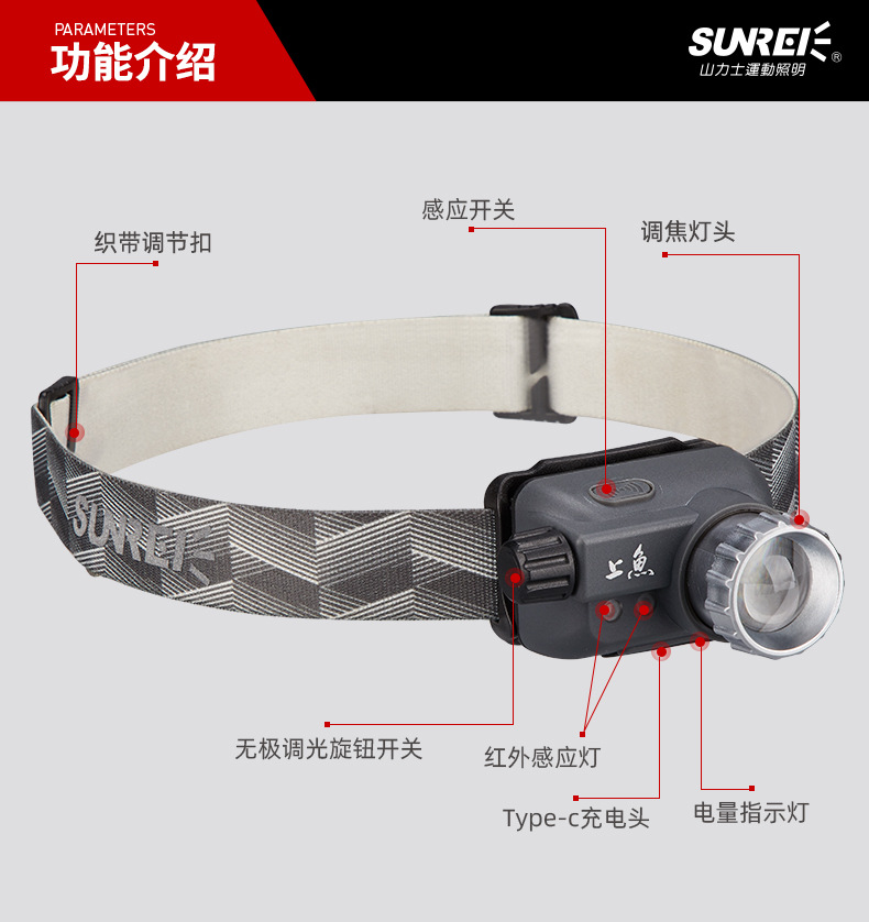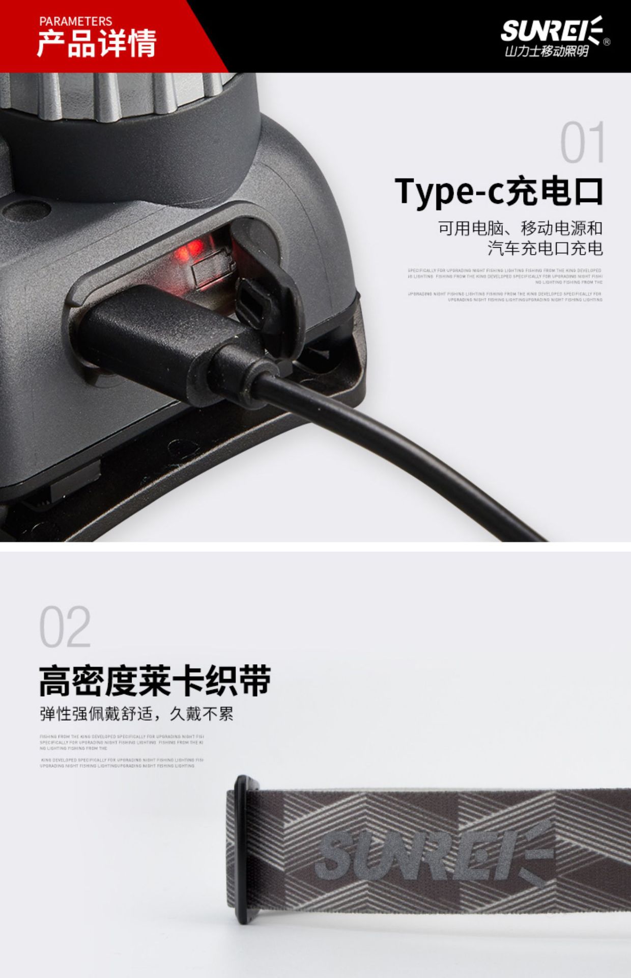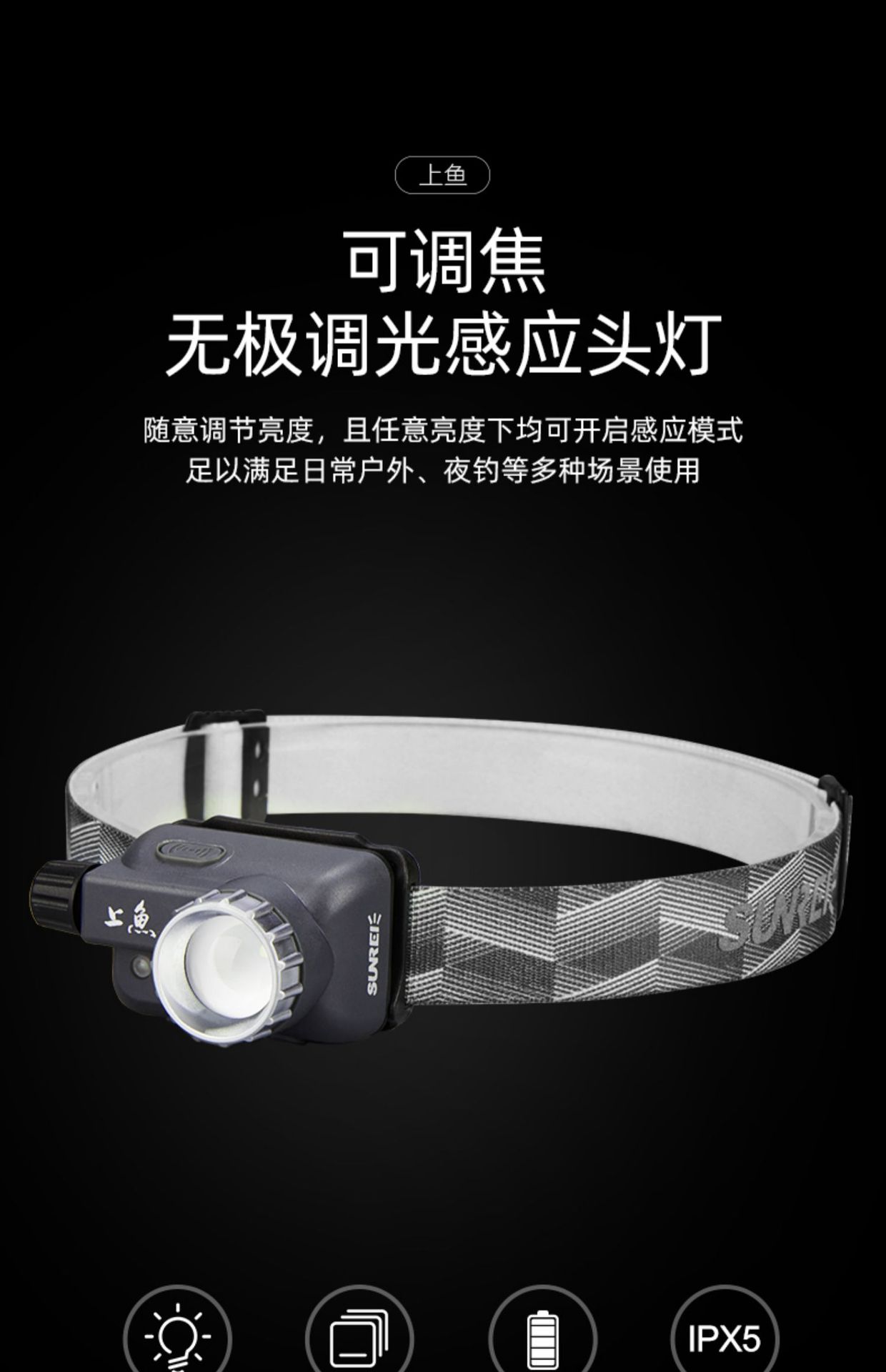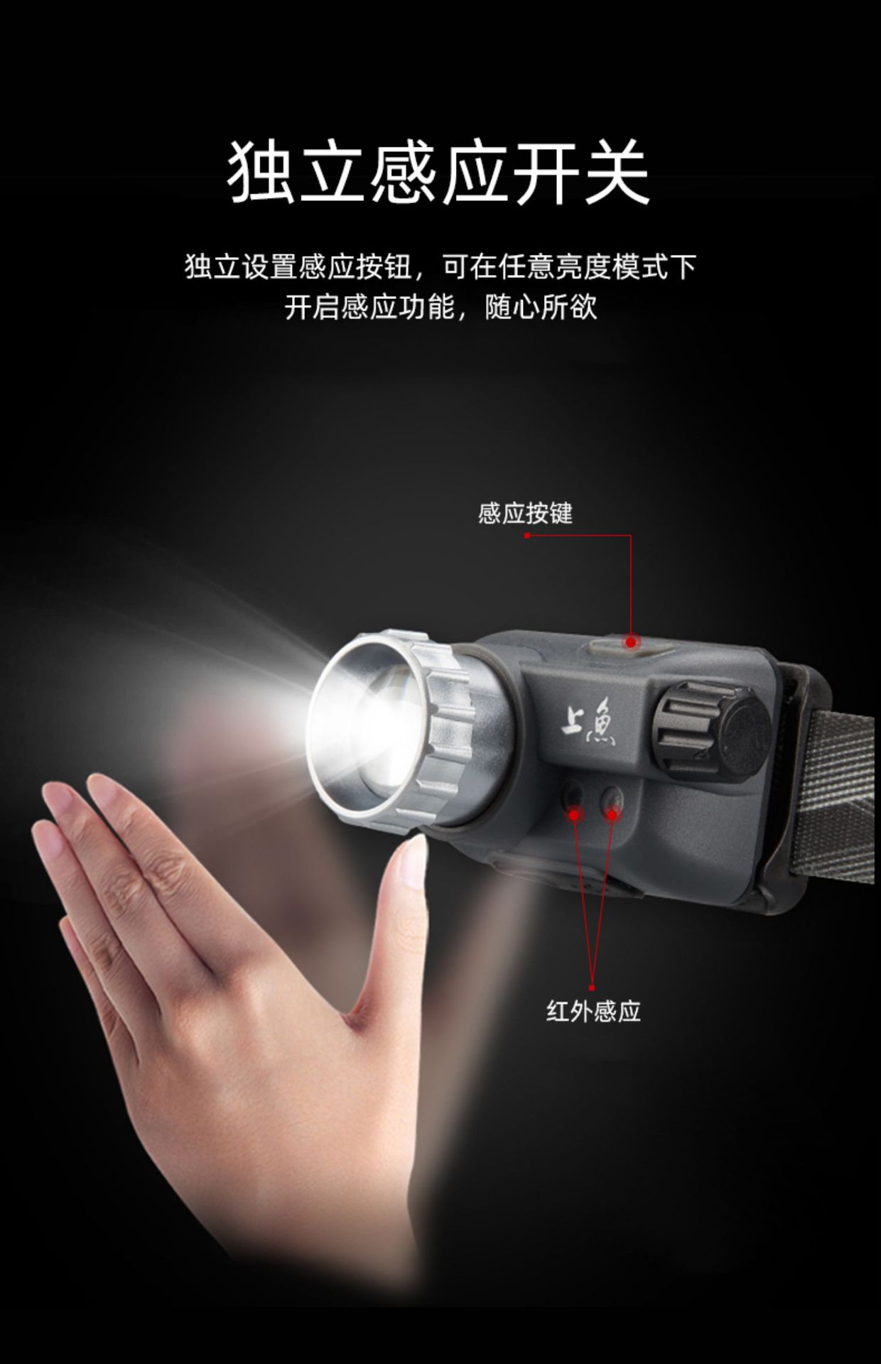 Shan Lishi 물고기 밤 낚시 헤드 라이트 강한 빛 유도 충전식 초점 무단 디밍 헤드 마운트 낚시 헤드 라이트