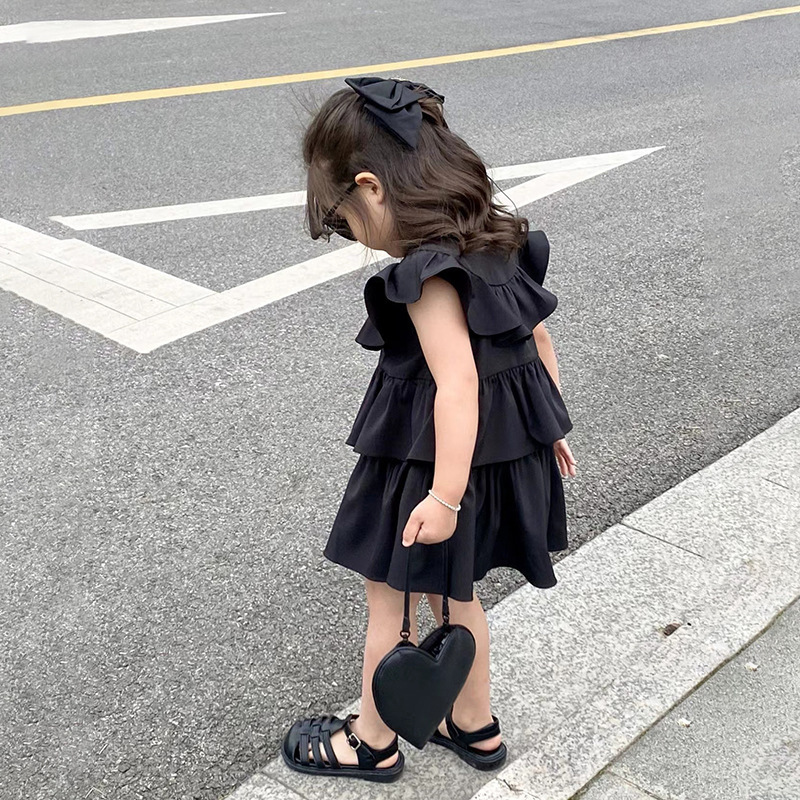 2024 블랙 여아 원피스 여름 아동 민소매 원피스 신상 스타일리쉬 여아 프릴 케이크 원피스 트렌디스토어 가기