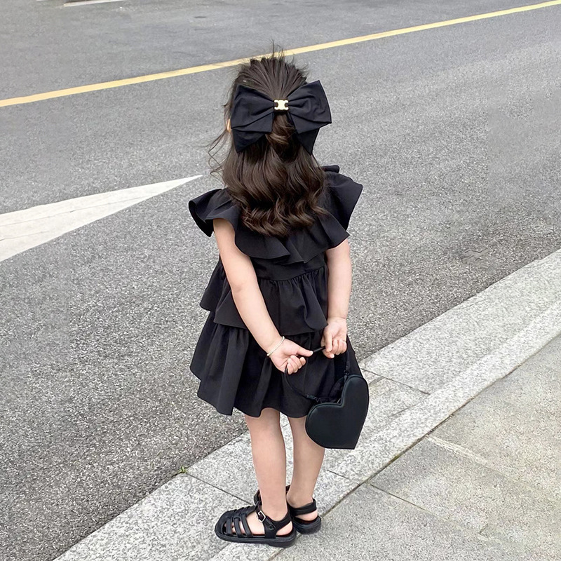 2024 블랙 여아 원피스 여름 아동 민소매 원피스 신상 스타일리쉬 여아 프릴 케이크 원피스 트렌디