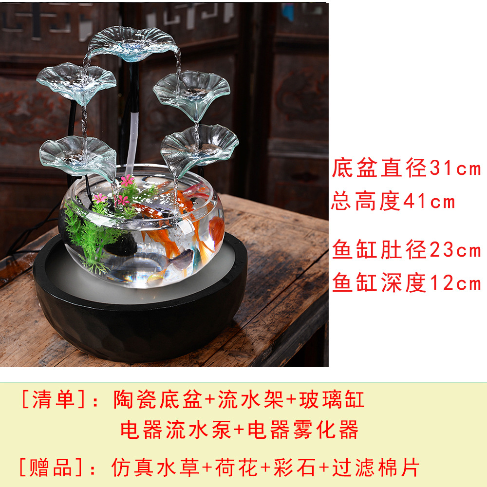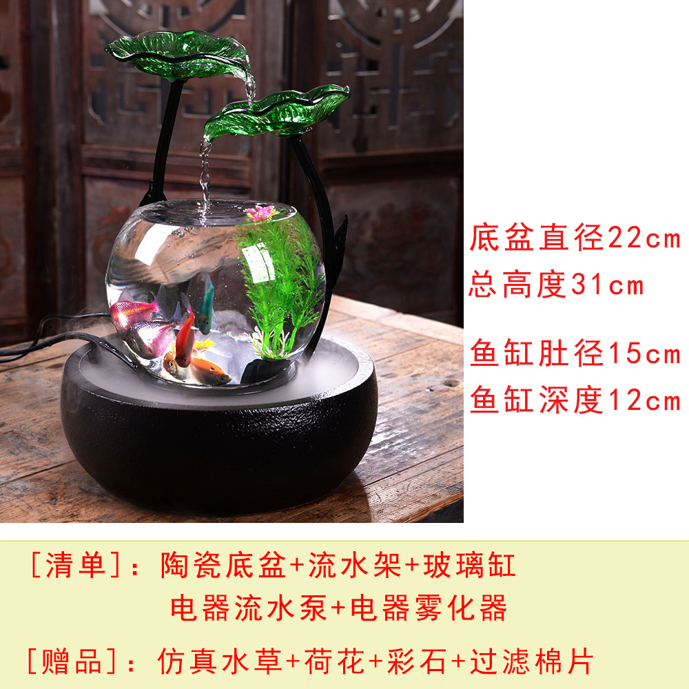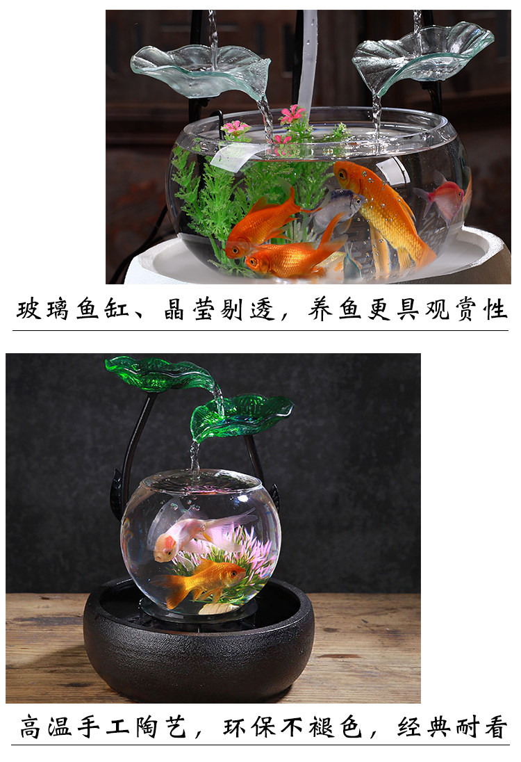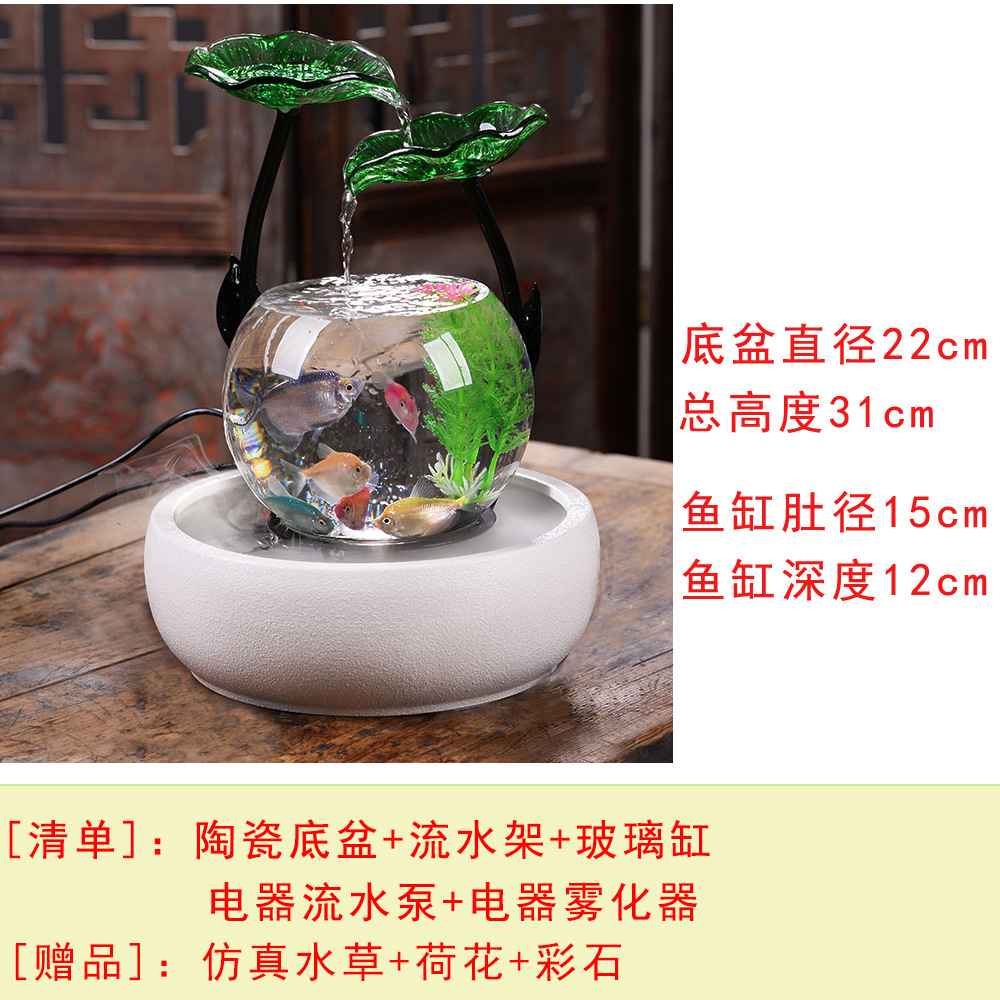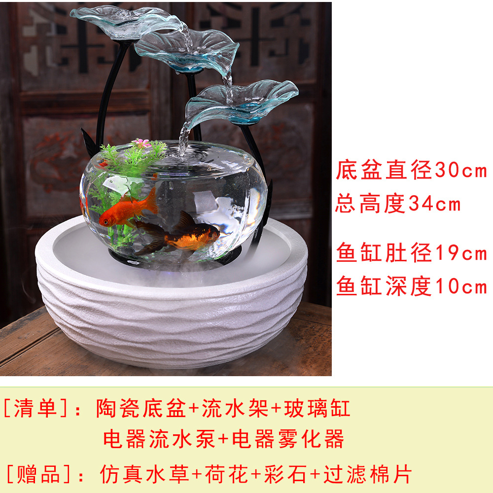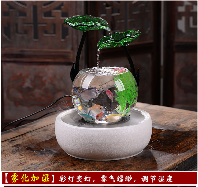세라믹 물고기 탱크 실행 물 거실 장식품 데스크탑 분수 사무실 TV 가습 조경 명소 수족관스토어 가기