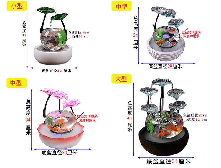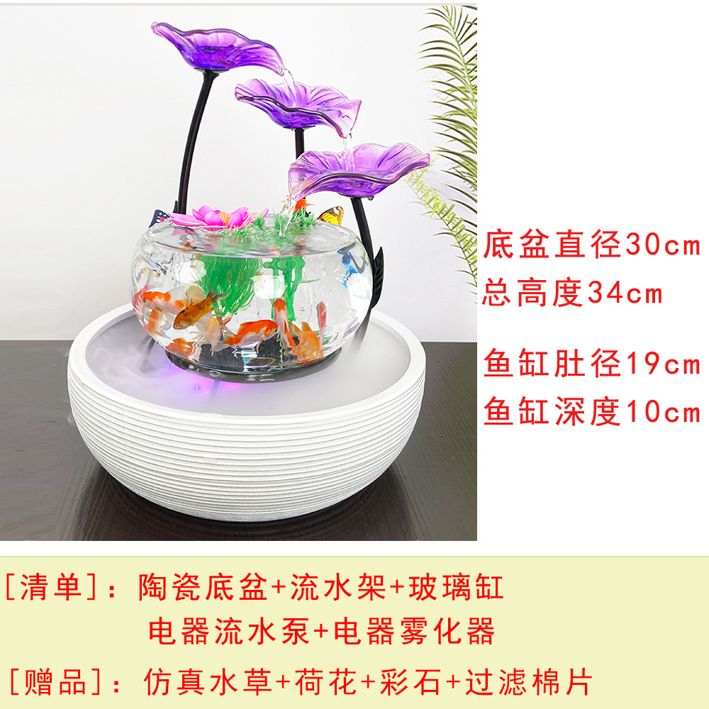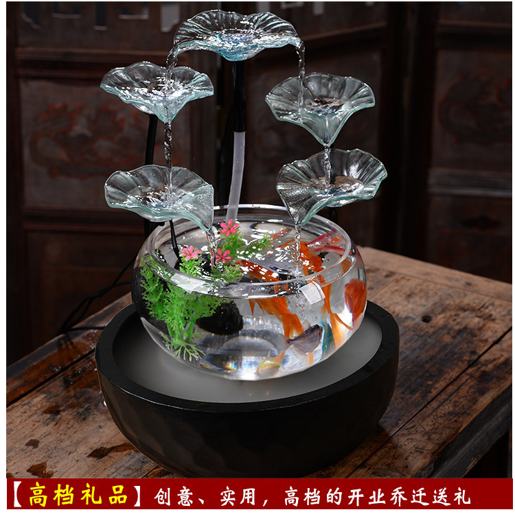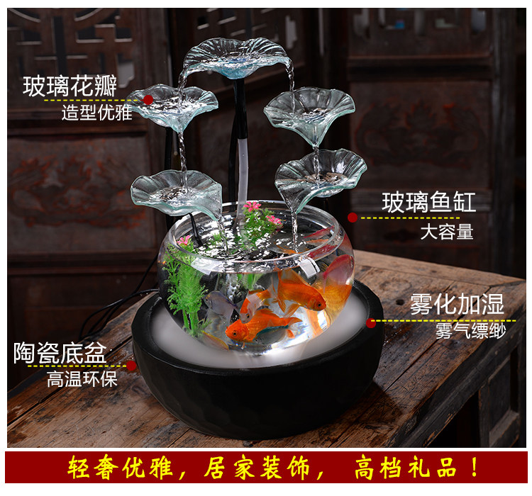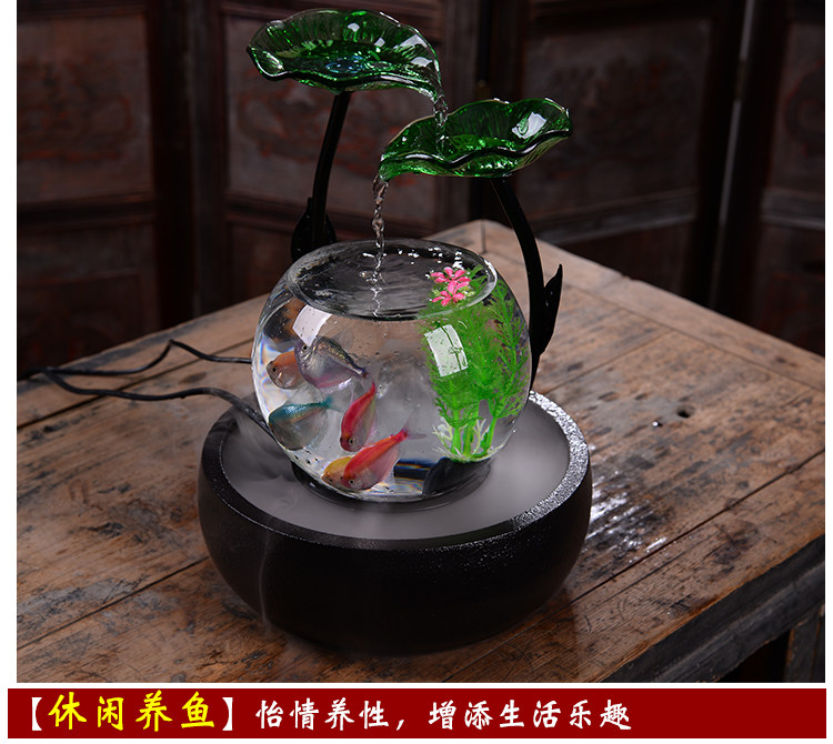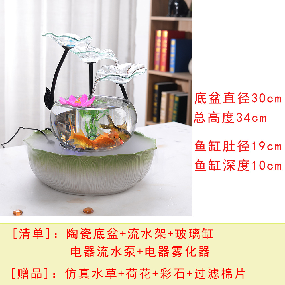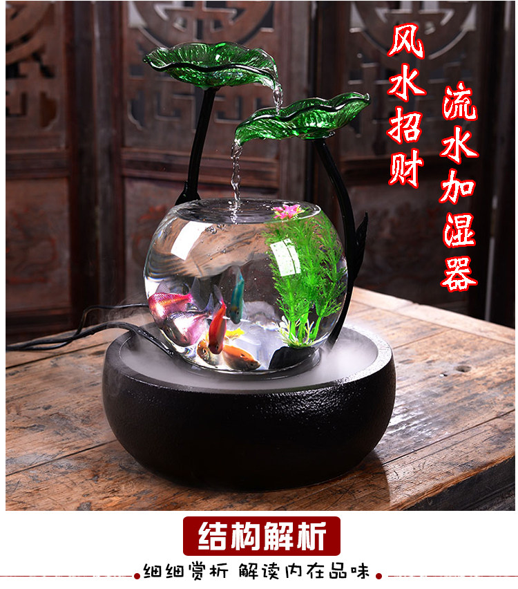 세라믹 물고기 탱크 실행 물 거실 장식품 데스크탑 분수 사무실 TV 가습 조경 명소 수족관스토어 가기