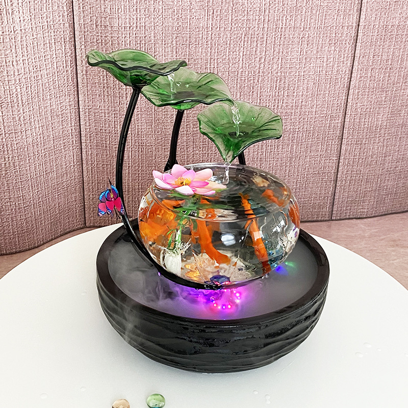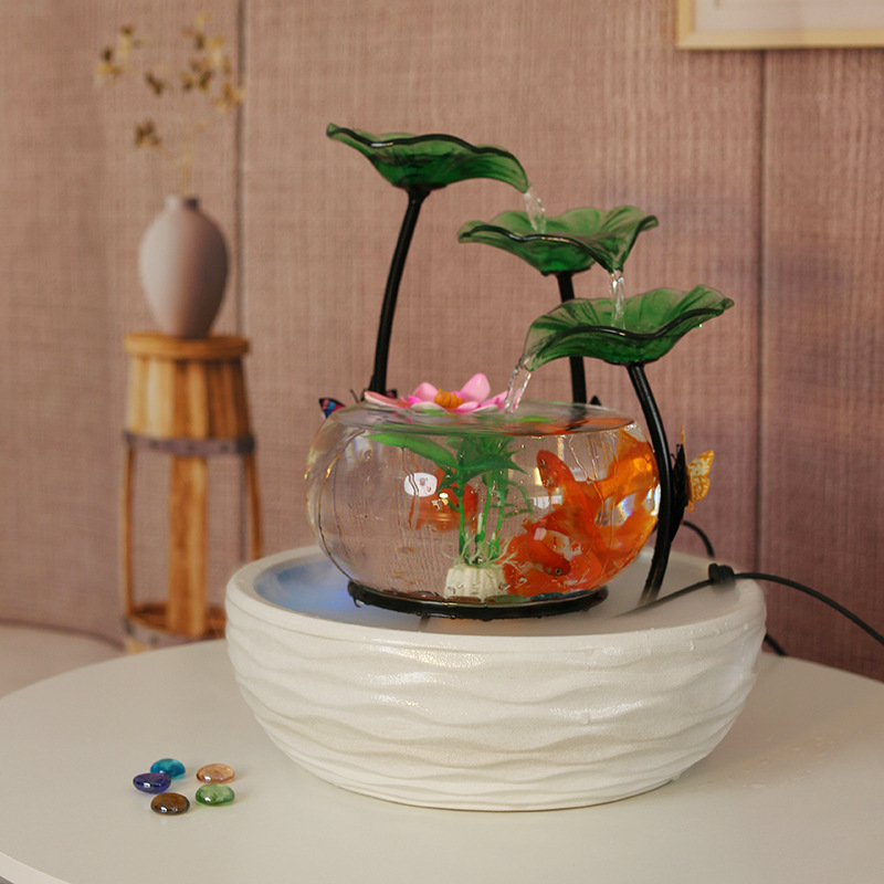 세라믹 물고기 탱크 실행 물 거실 장식품 데스크탑 분수 사무실 TV 가습 조경 명소 수족관