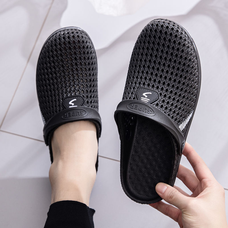 공장 도매 구멍 신발 남성용 미끄럼 방지 통기성 작업 두꺼운 바닥 여름 착용 부드러운 바닥 비치 Baotou 남성 샌들