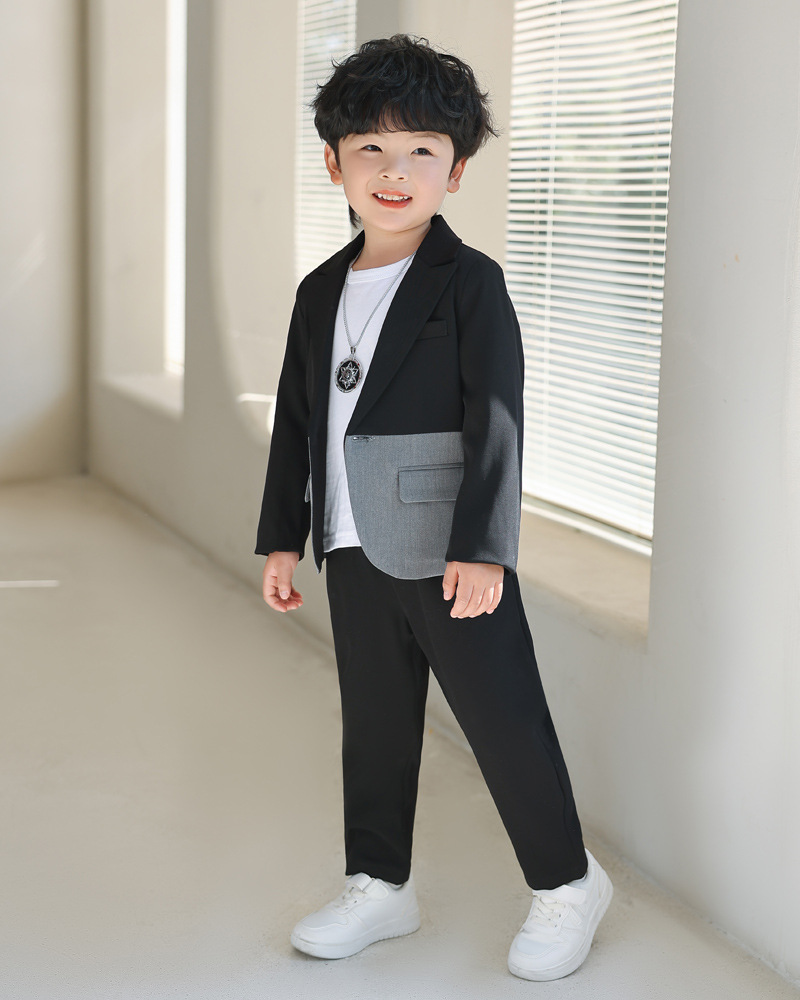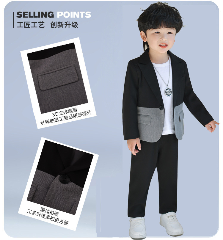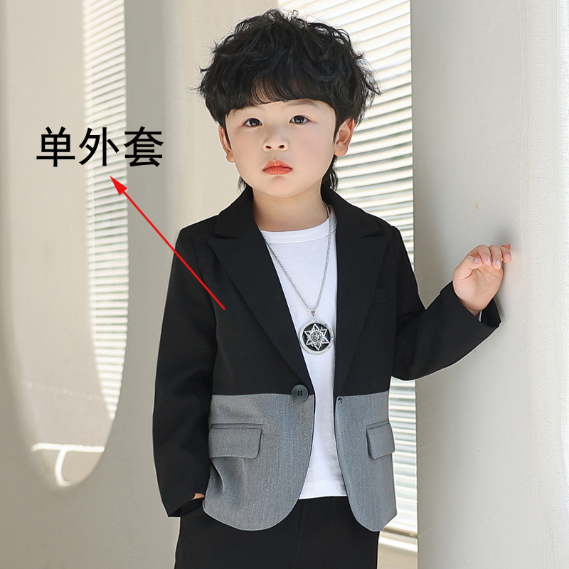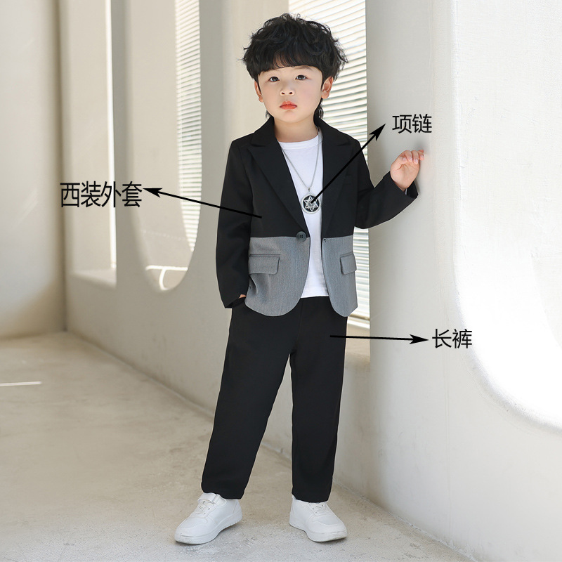 어린이 세트 2023 가을 새로운 작은 세트 한국의 잘 생긴 소년 스티치 재킷 코트 조수 머리카락의 세대