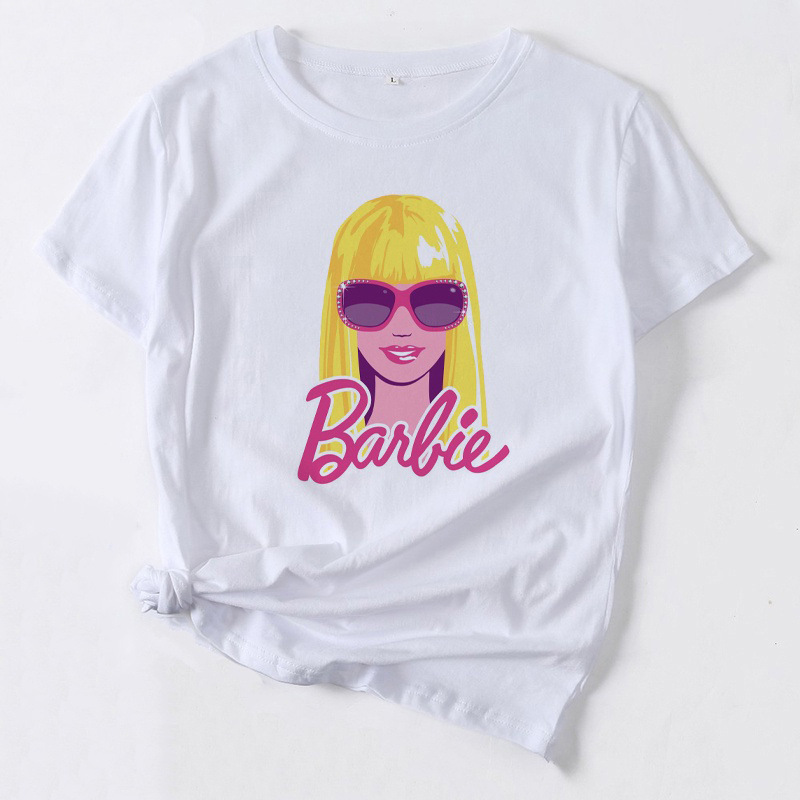 2023 바비 바비 새우 스킨 라운드 넥 프린트 화이트 티셔츠 반팔 여성 대외 무역 크로스 보더 이베이 아마존
