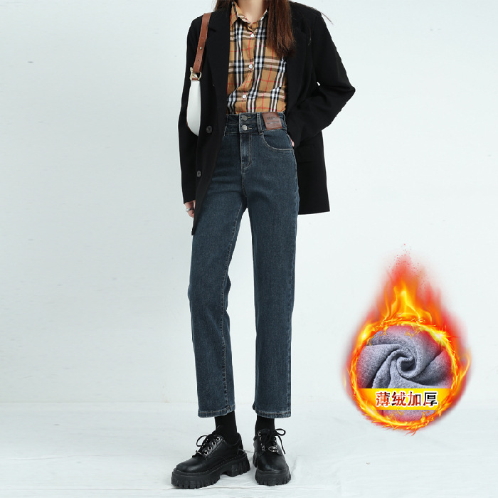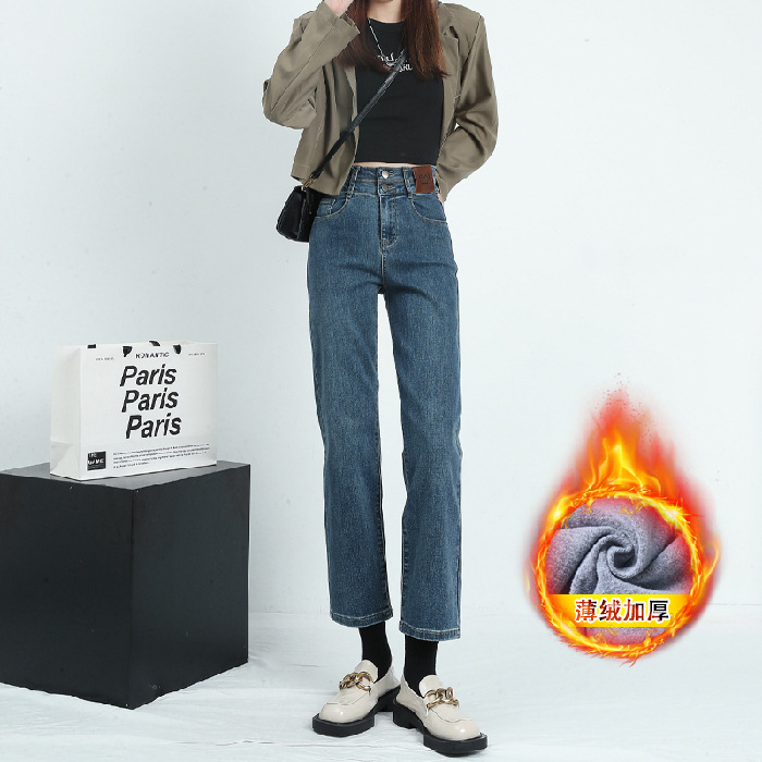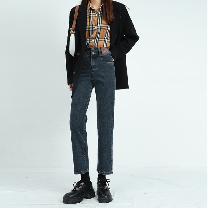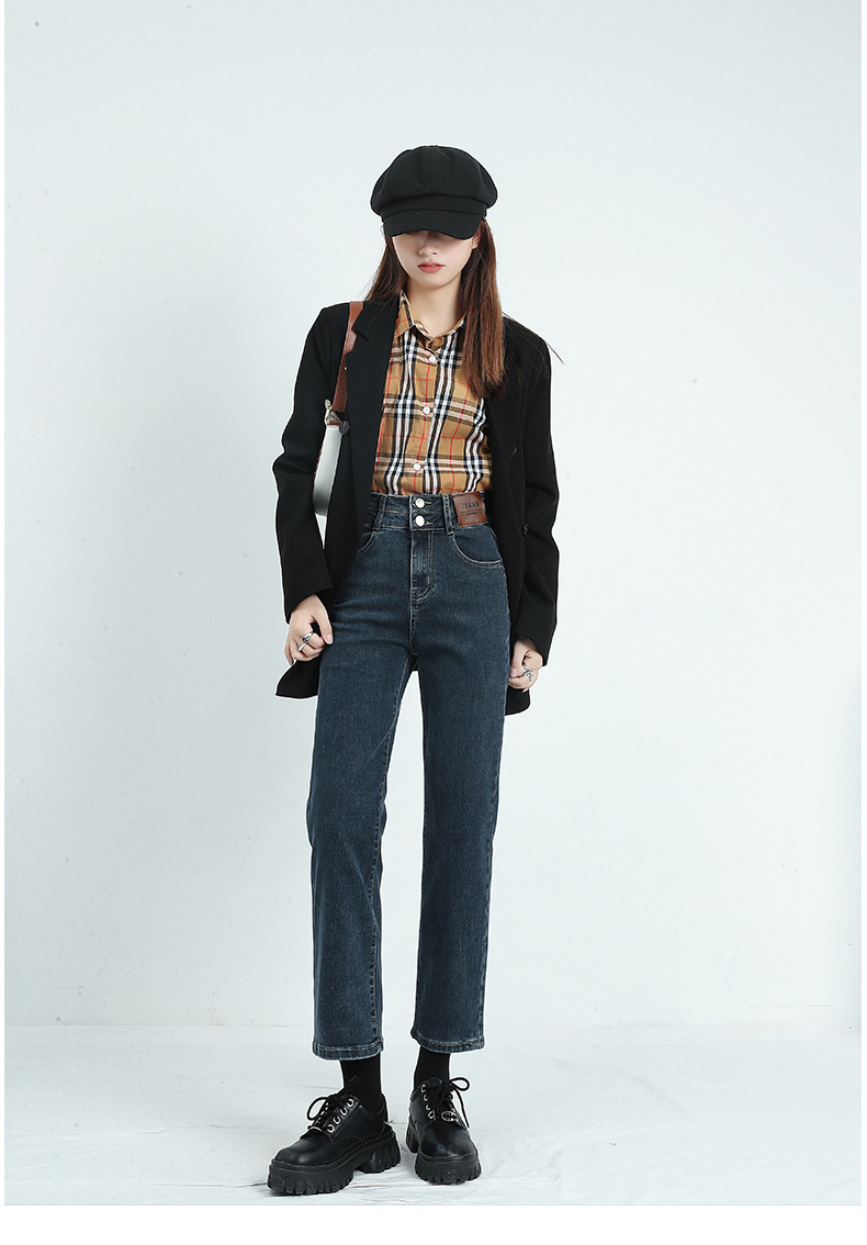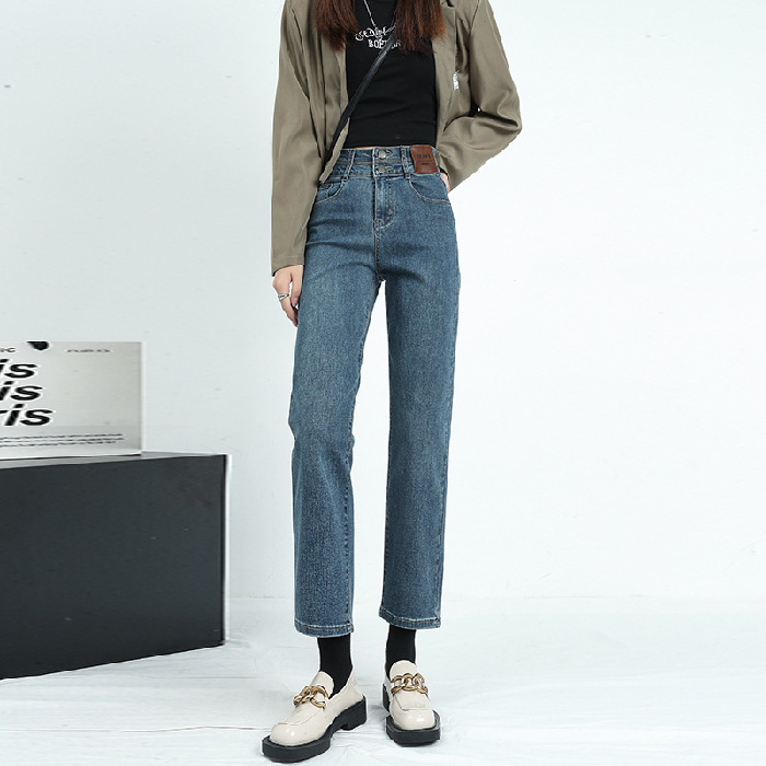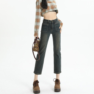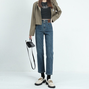 烟管裤女秋窄版直筒牛仔裤女秋款高腰显瘦小个子九分裤女秋
