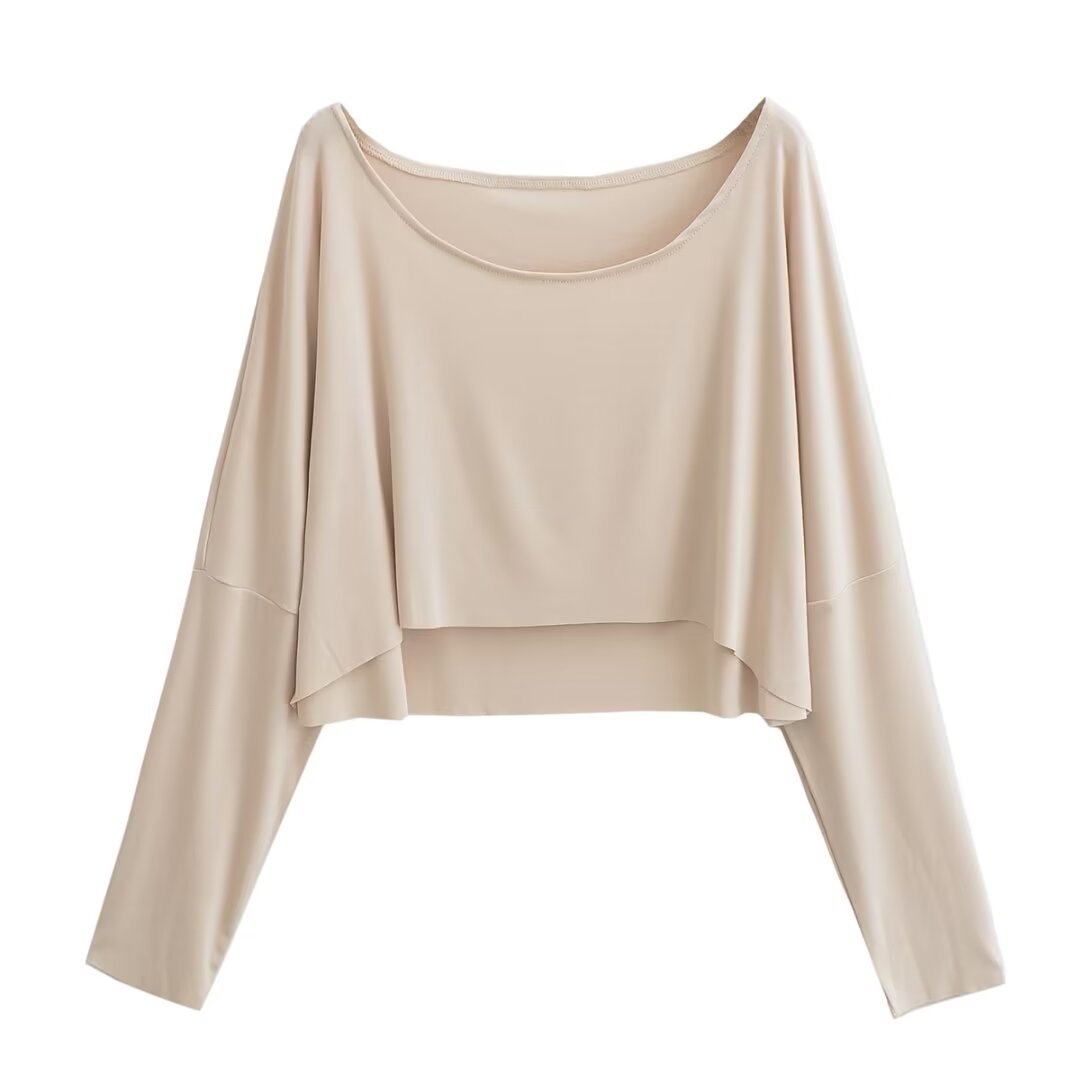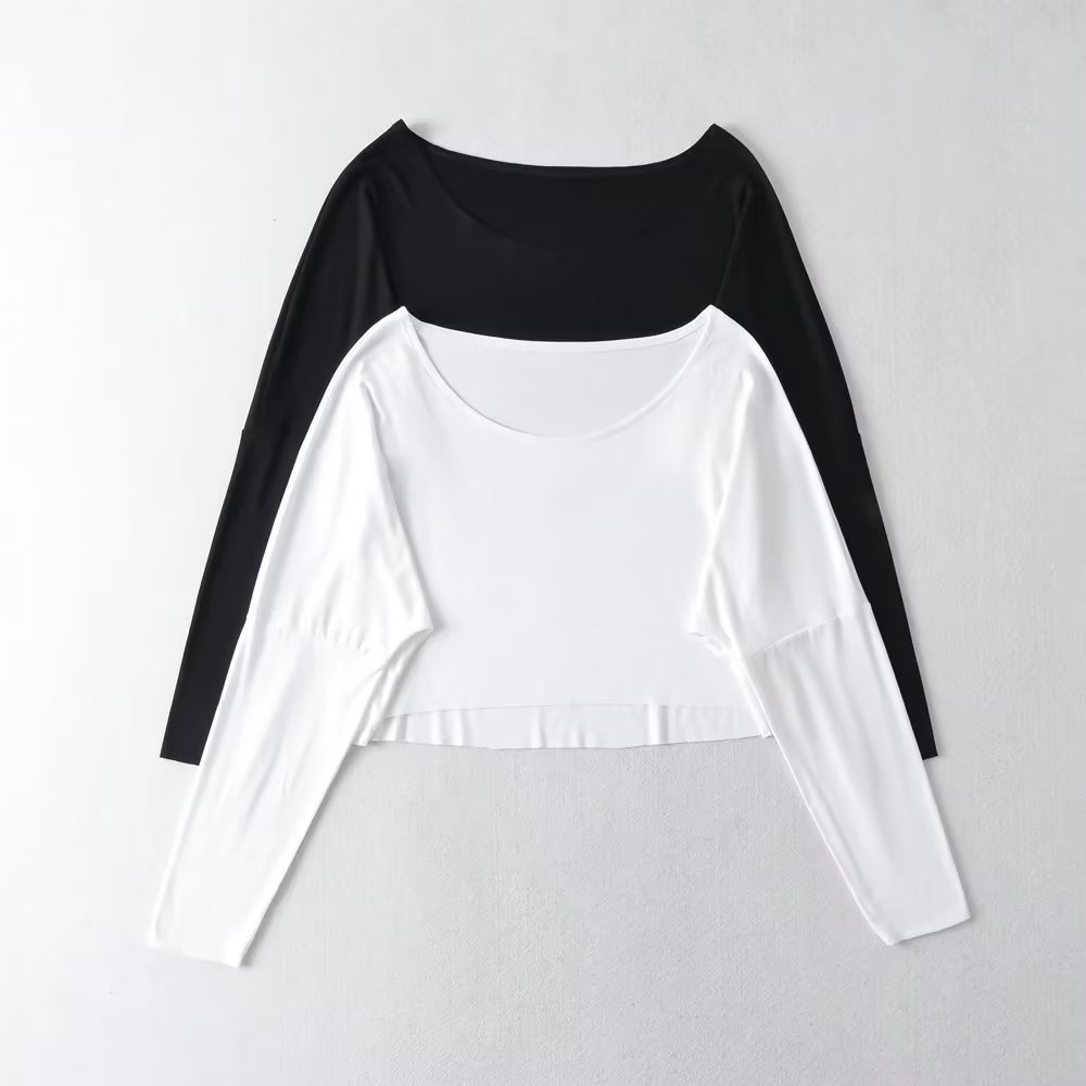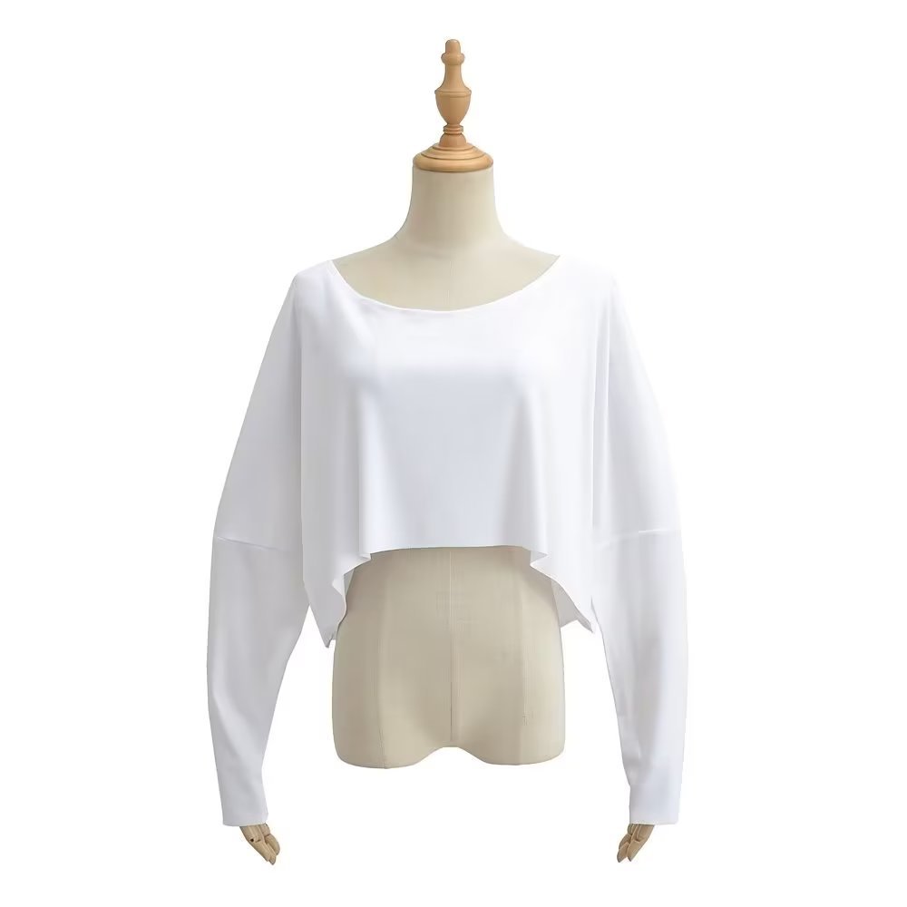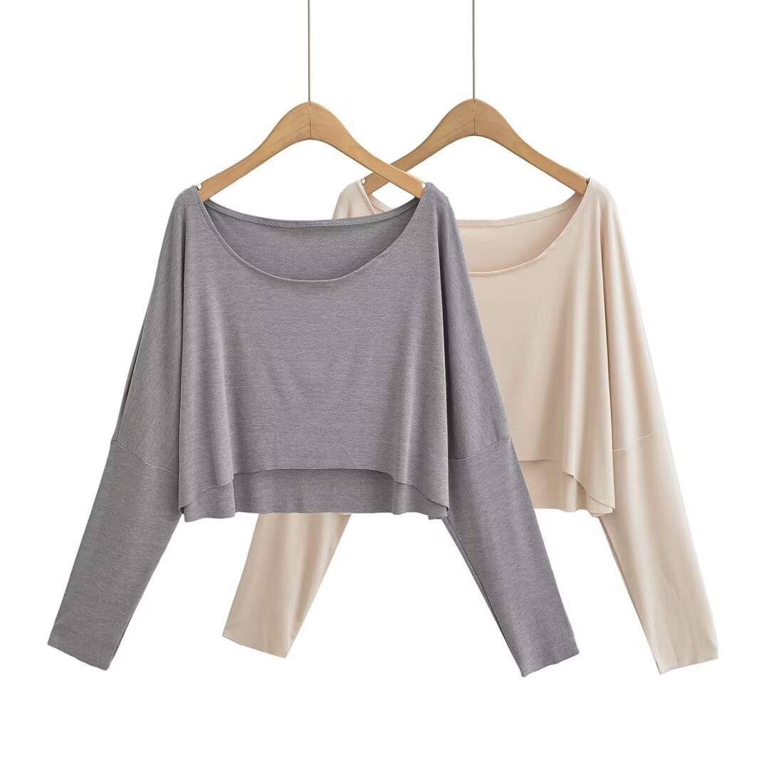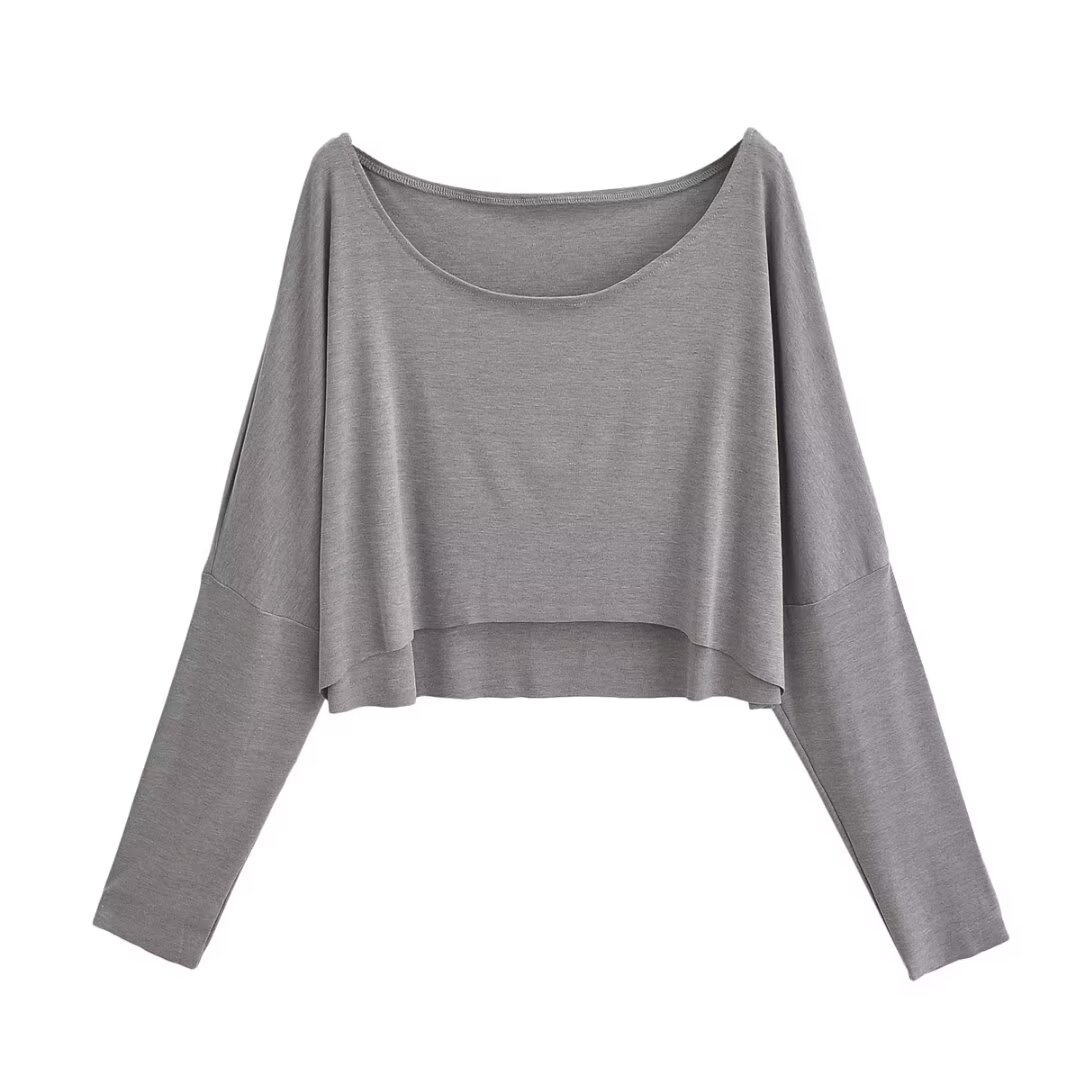 댄싱 짧은 블라우스 라지 라운드 넥 느슨한 오프 숄더 오프 숄더 탑 솔리드 컬러 느슨한 긴 소매 티셔츠