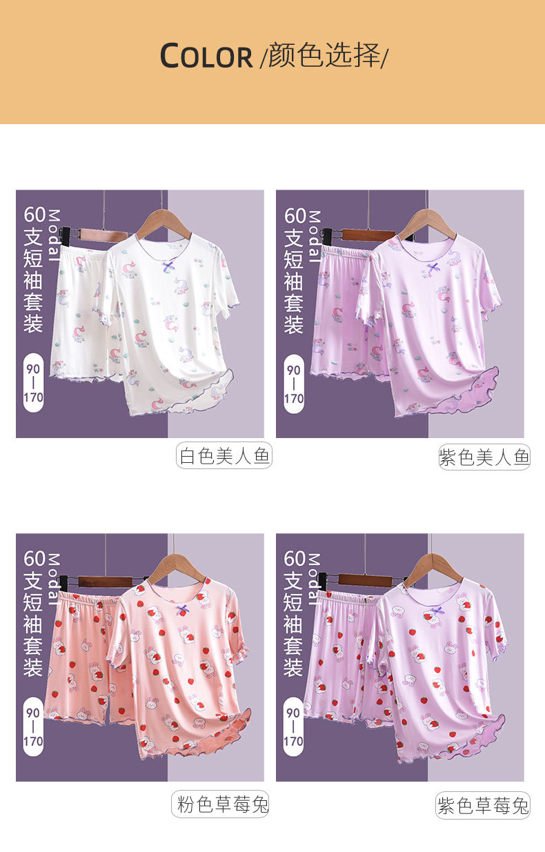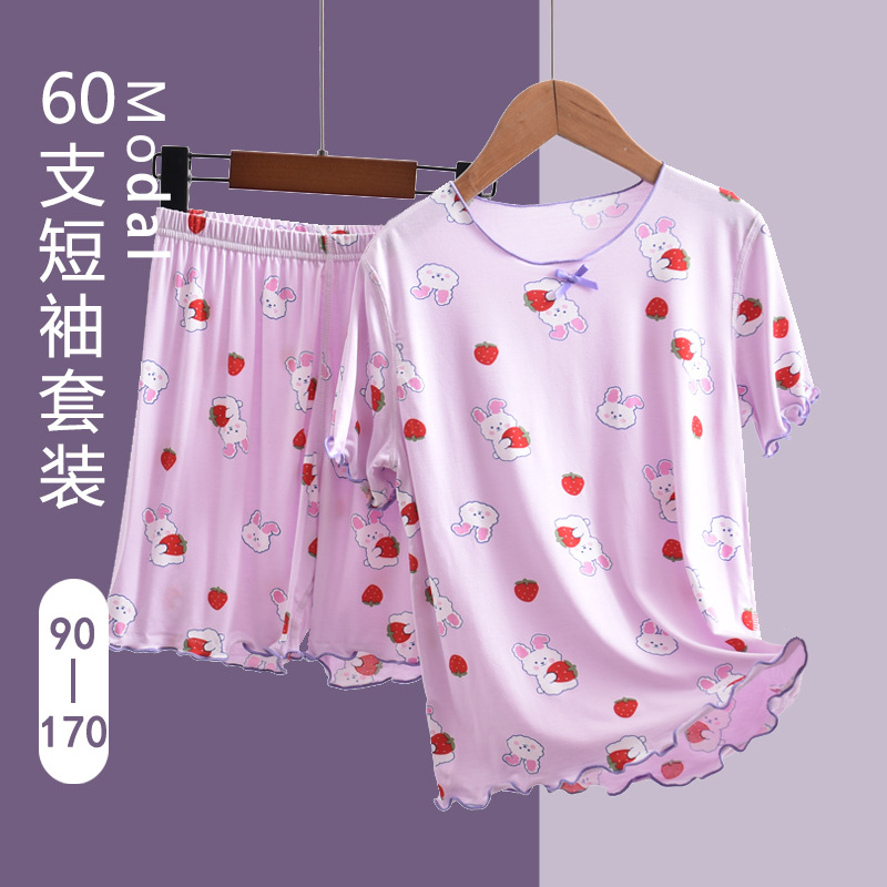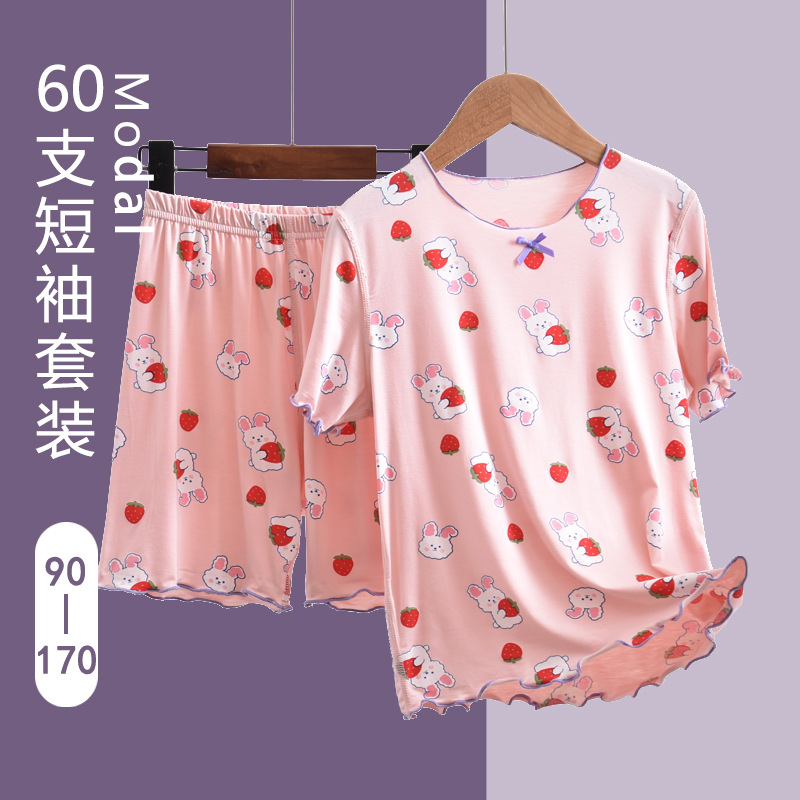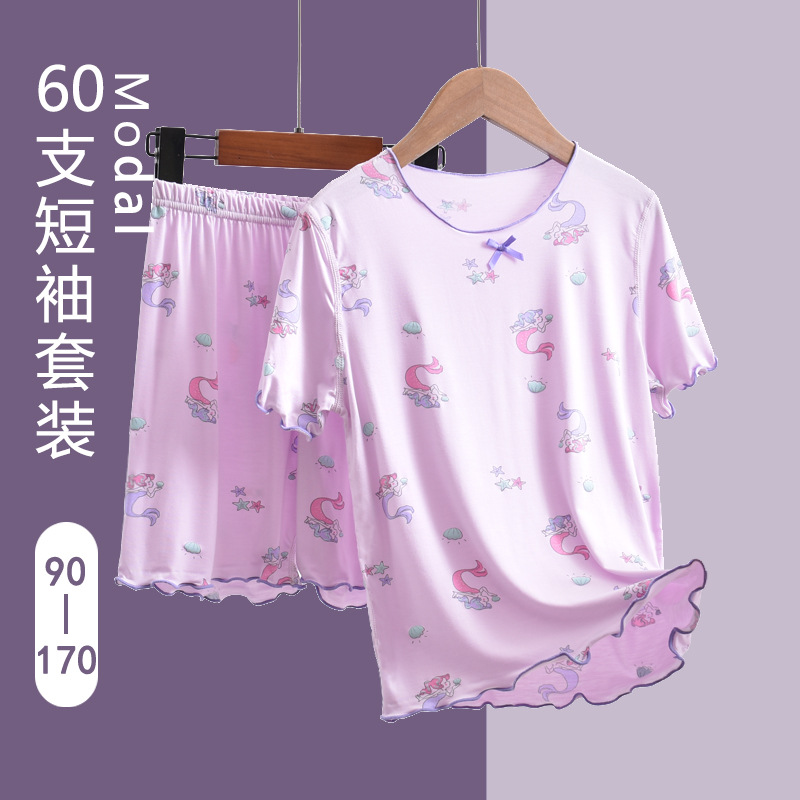 60 Youke 모달 소녀 반팔 반바지 가정 의류 세트 어린이 잠옷 대형 어린이 여름 에어컨 옷스토어 가기