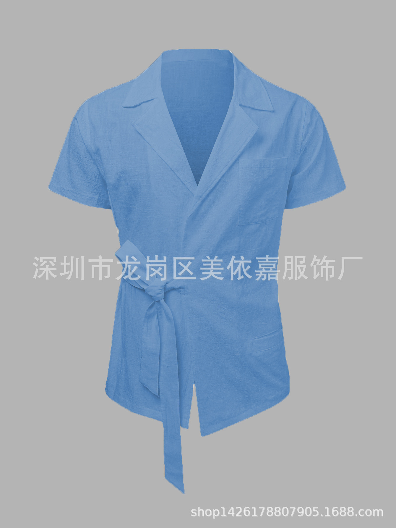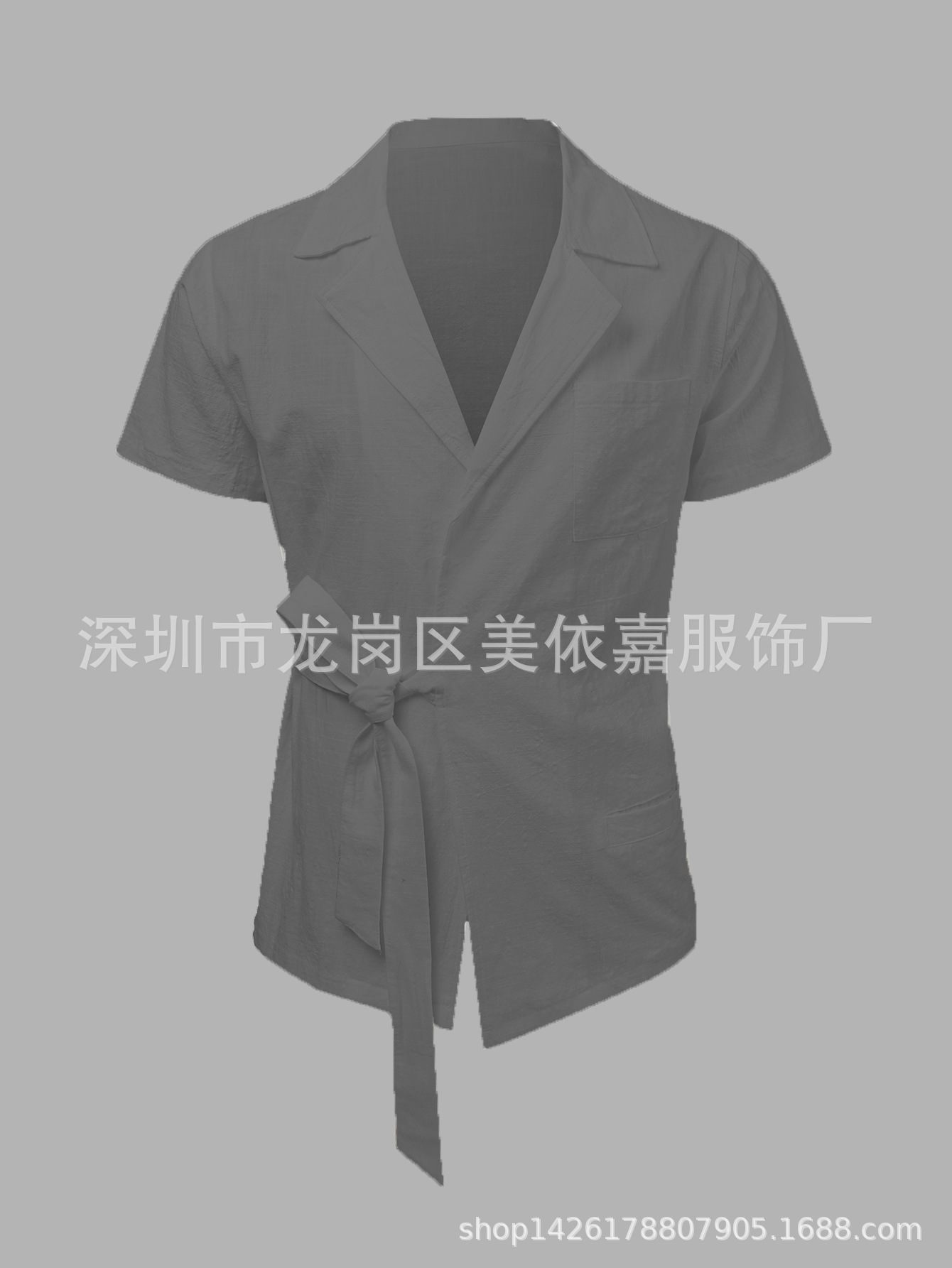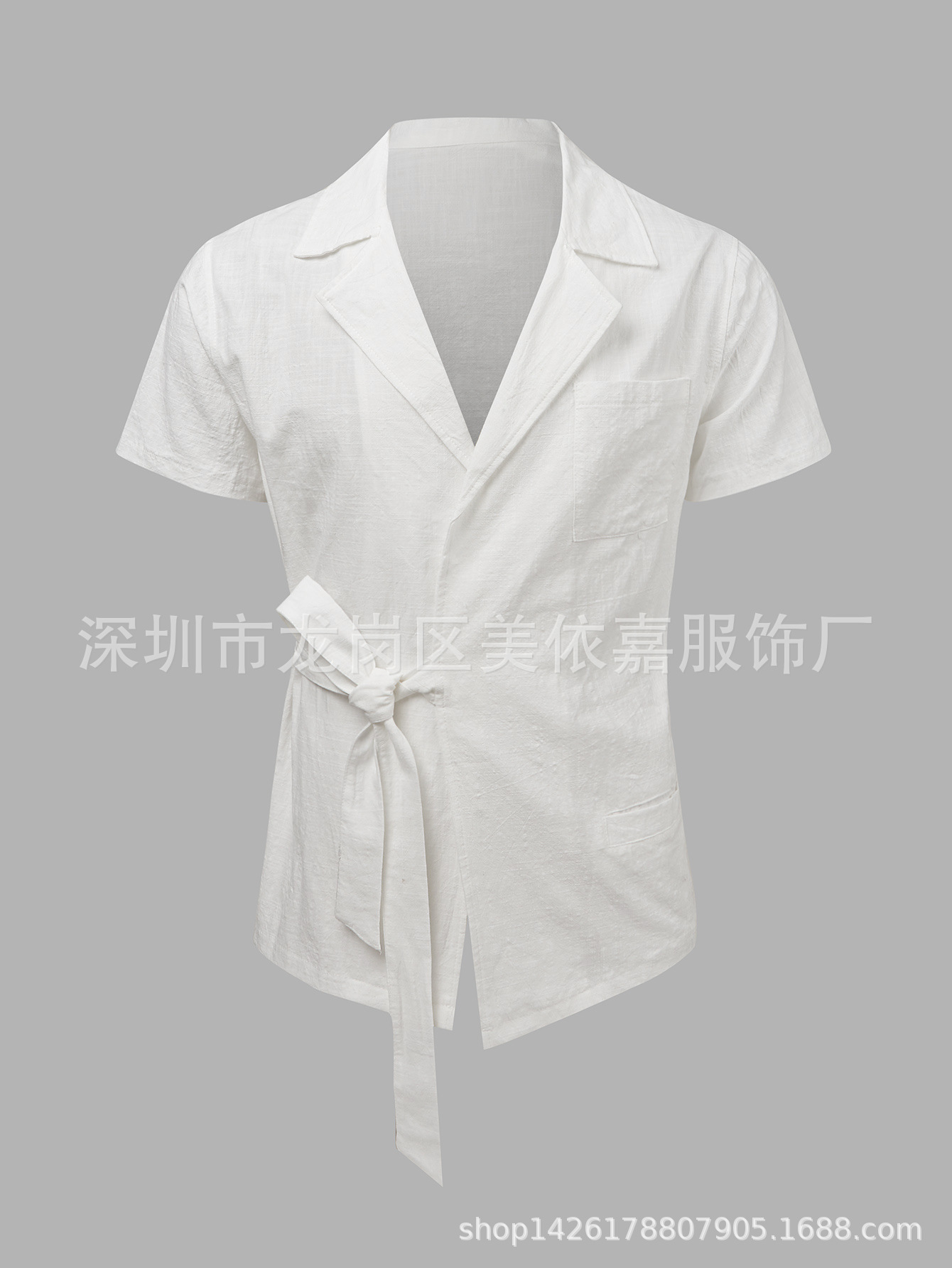 2023 Amazon AliExpress 독립 역 여름 남성 솔리드 컬러 코튼 및 리넨 세트 옷깃 레이스 짧은 소매 셔츠스토어 가기