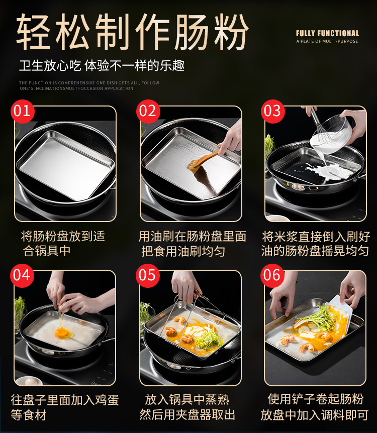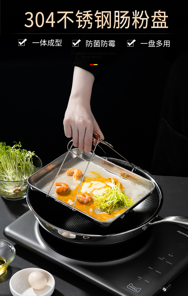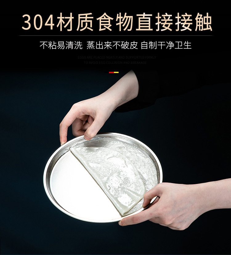 304 스테인레스 쌀 롤 접시 원형 디스크 304 식품 등급 쌀 롤 찜 접시 원형 평면 바닥 찜 접시 시원한 가죽 접시스토어 가기