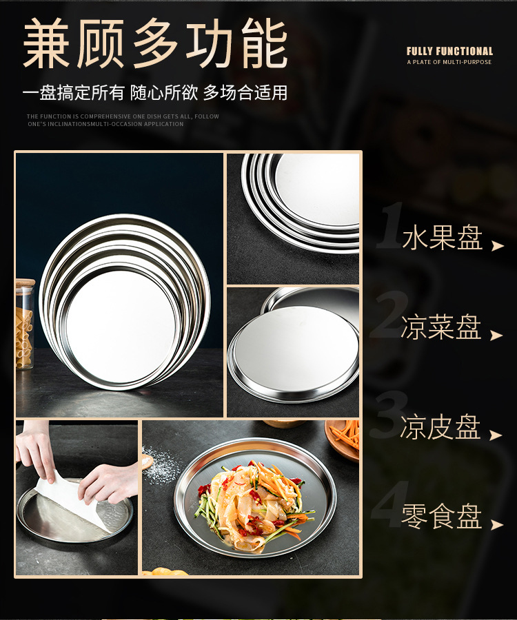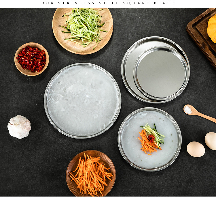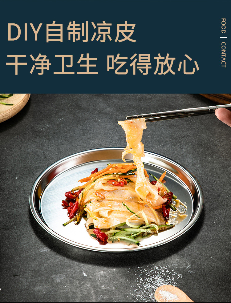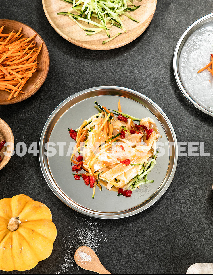 304 스테인레스 쌀 롤 접시 원형 디스크 304 식품 등급 쌀 롤 찜 접시 원형 평면 바닥 찜 접시 시원한 가죽 접시