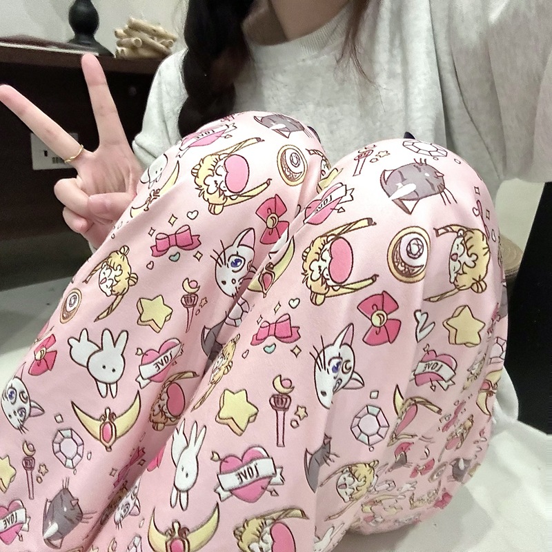 워킹 팬츠 만화 파자마 바지 여성의 여름과 가을 새로운 겉옷 홈 에어컨 바지 어린이를위한 한국 느슨한 캐주얼 바지