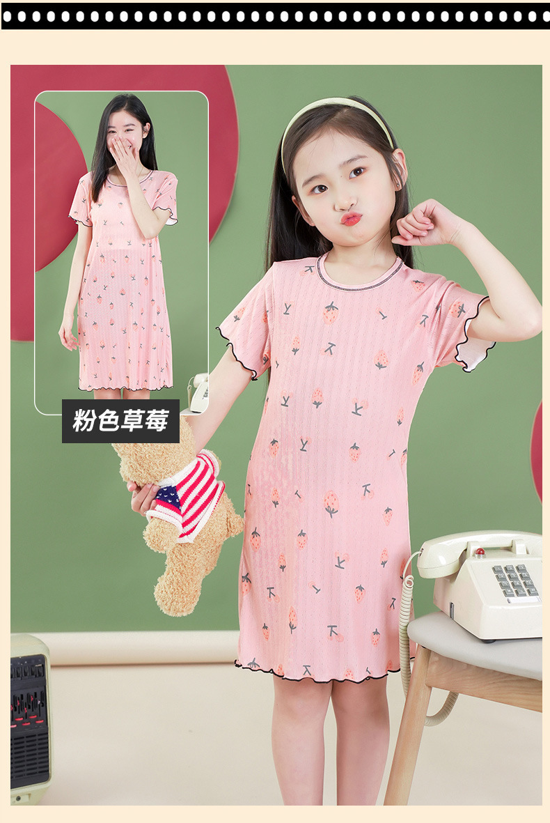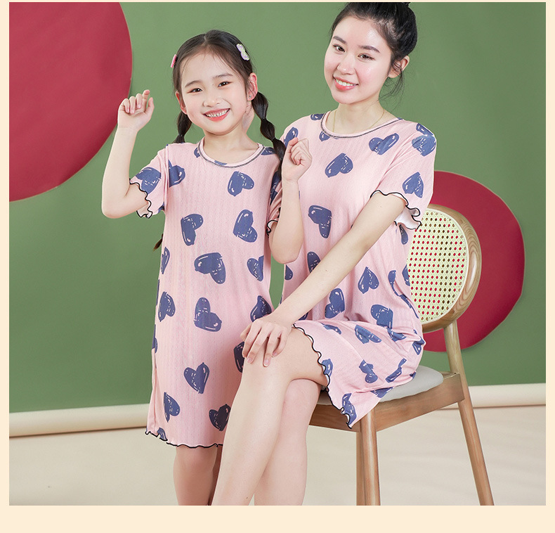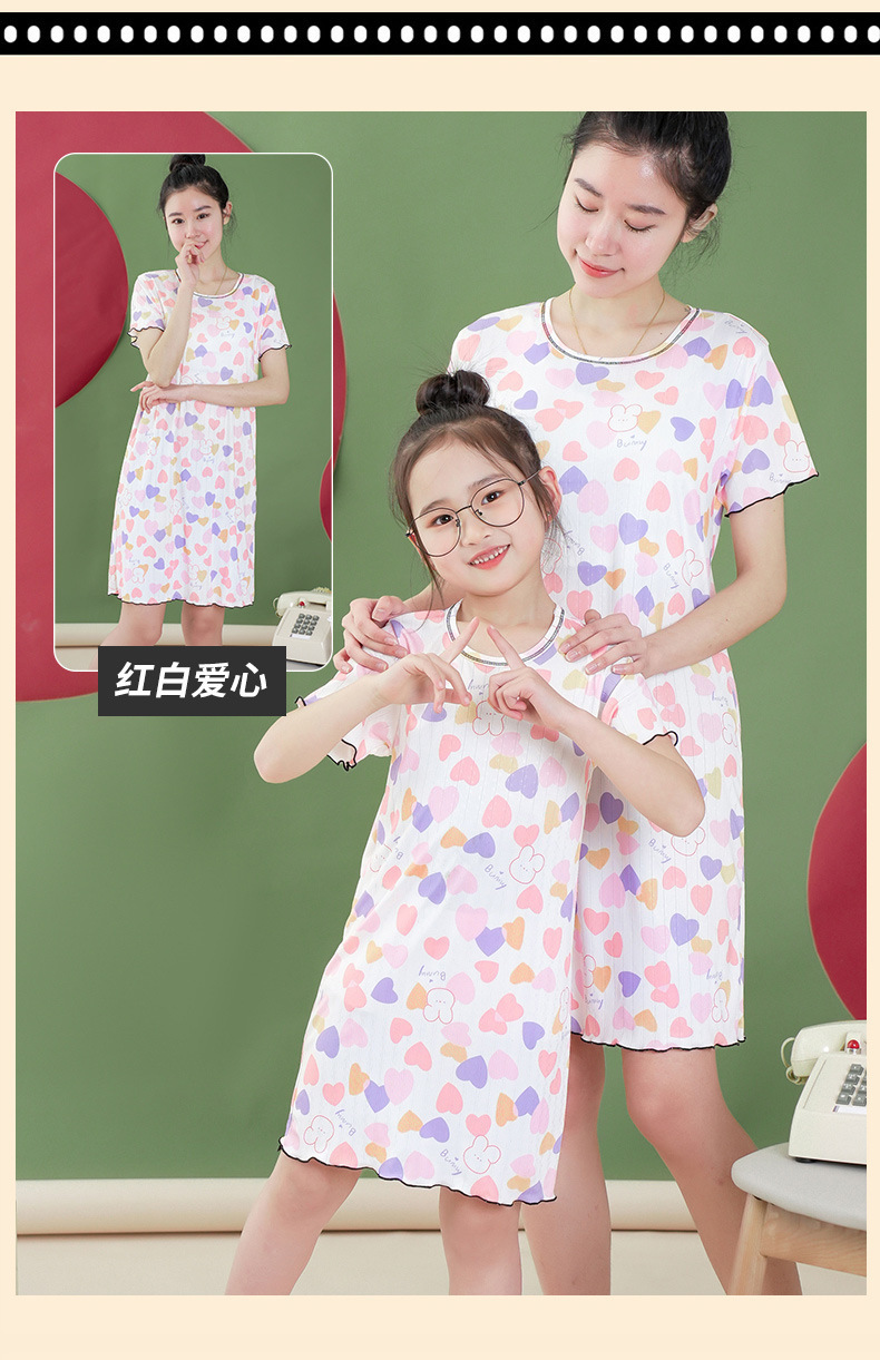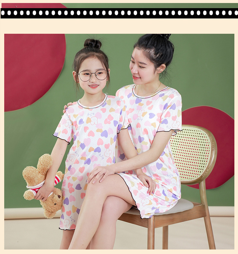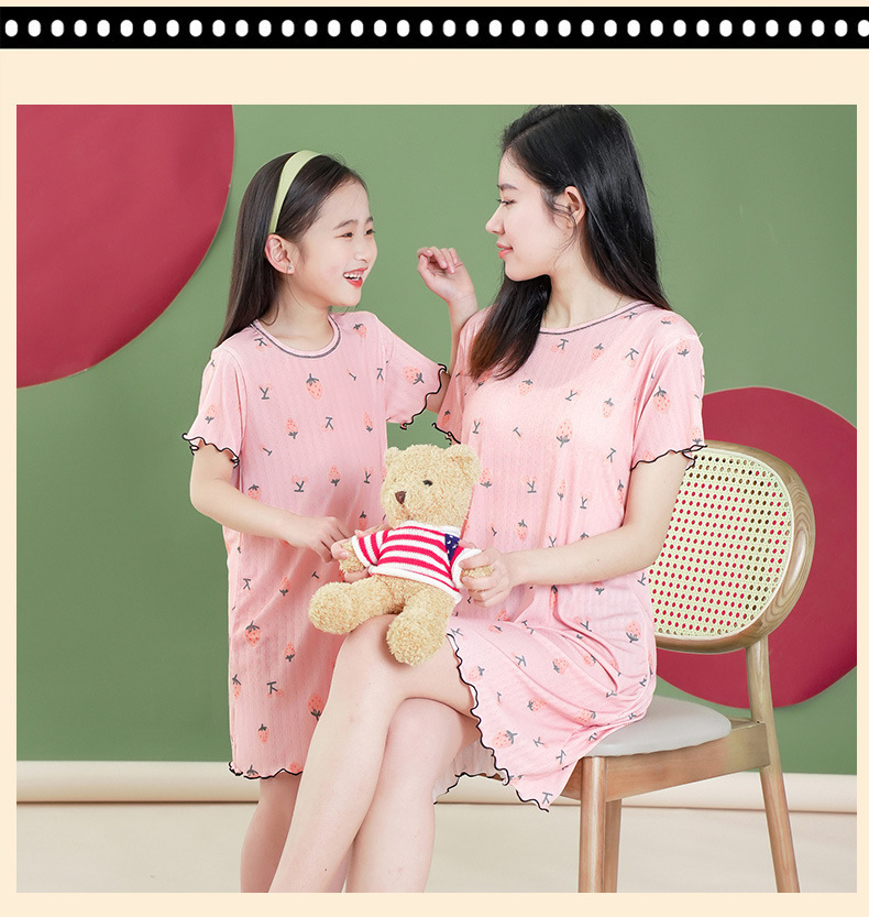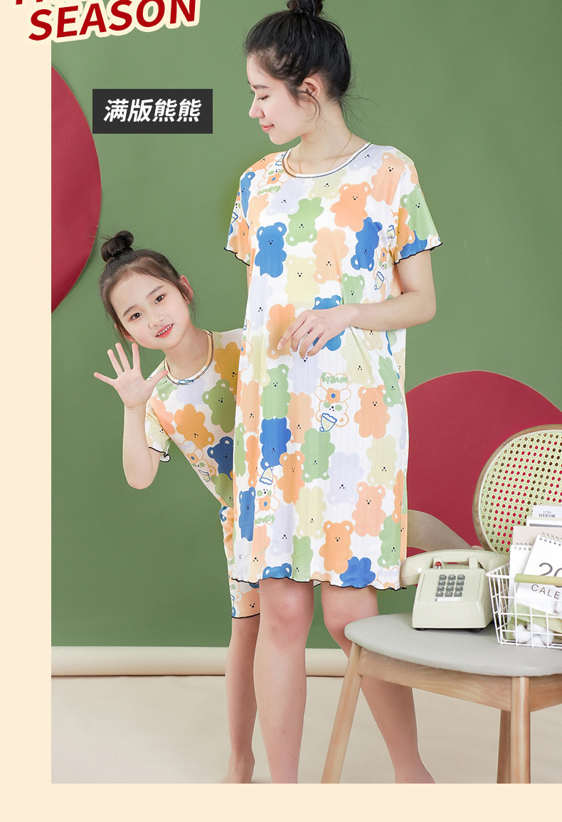 冰丝女童睡裙卡通亲子装家居裙子儿童夏季薄款小童花边母女睡衣裙