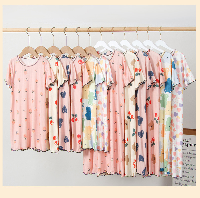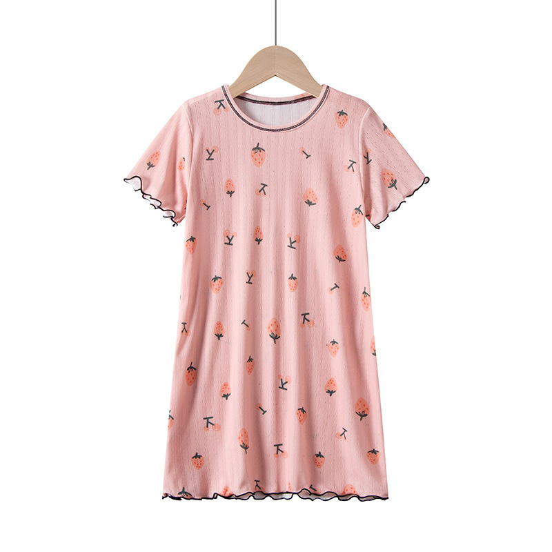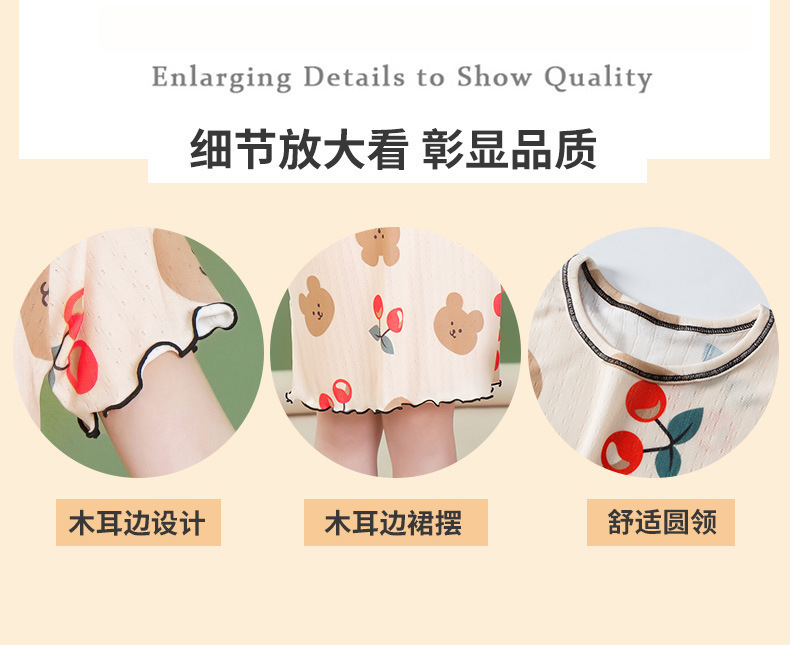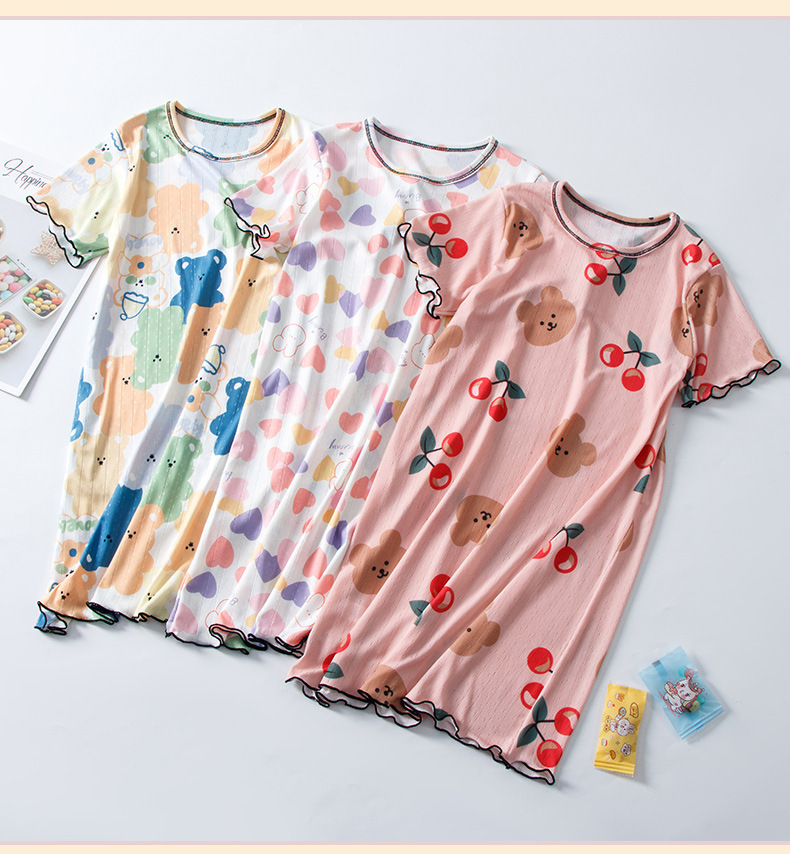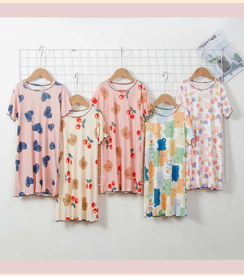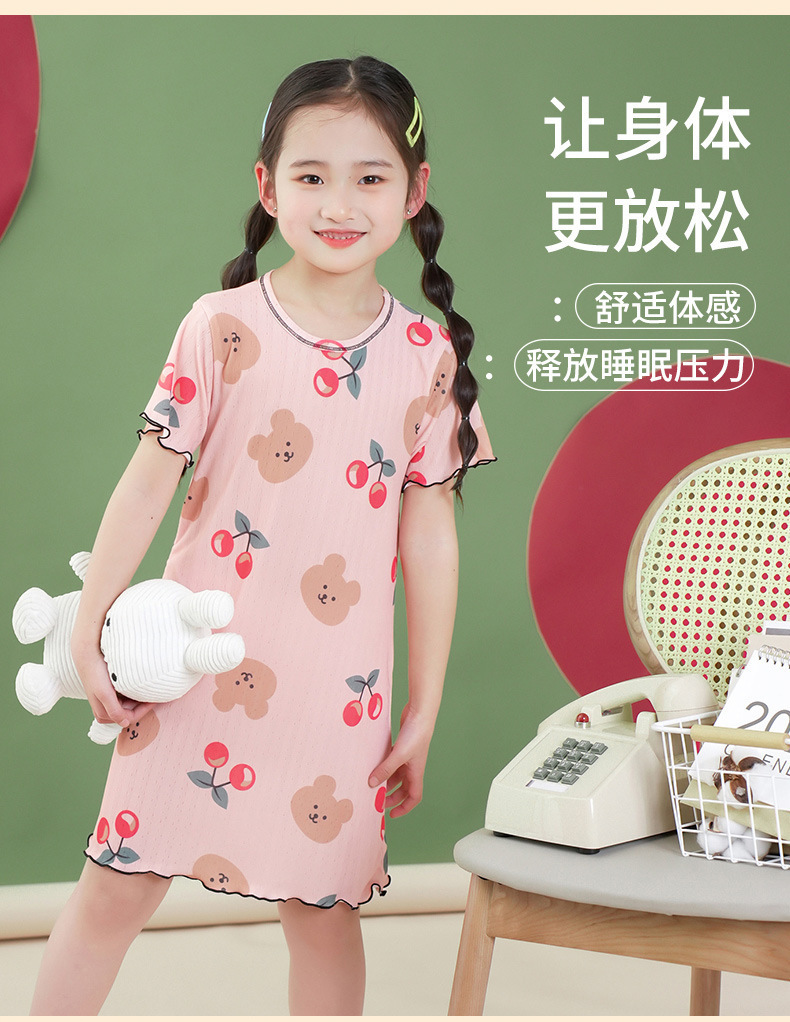 冰丝女童睡裙卡通亲子装家居裙子儿童夏季薄款小童花边母女睡衣裙