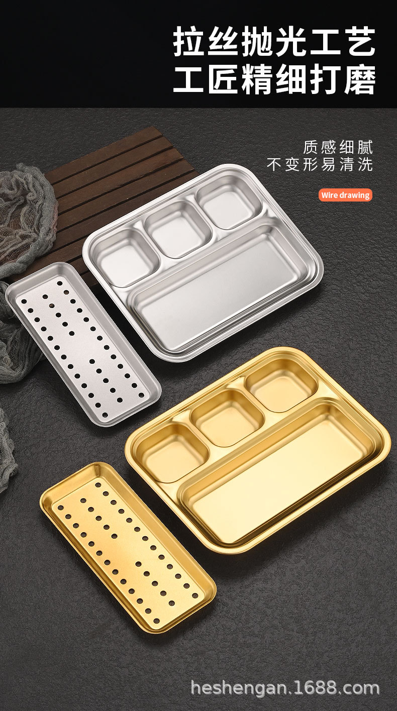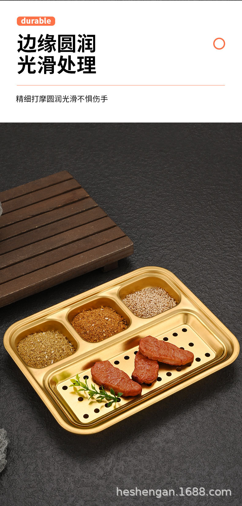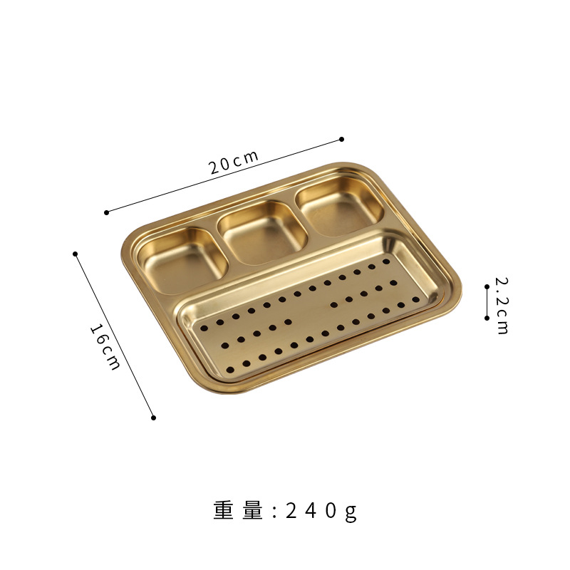 공장 직접 판매 304 스테인레스 스틸 바베큐 디핑 올인원 플레이트 한국식 바베큐 구획 조미료 플레이트 소스 플레이트스토어 가기