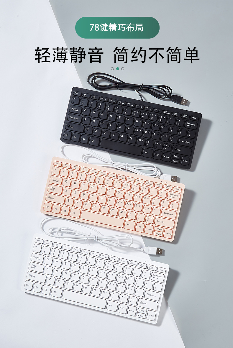 K1000 초콜릿 78키 미니 유선 키보드 멀티미디어 얇고 가벼운 휴대용 노트북 USB 외부스토어 가기