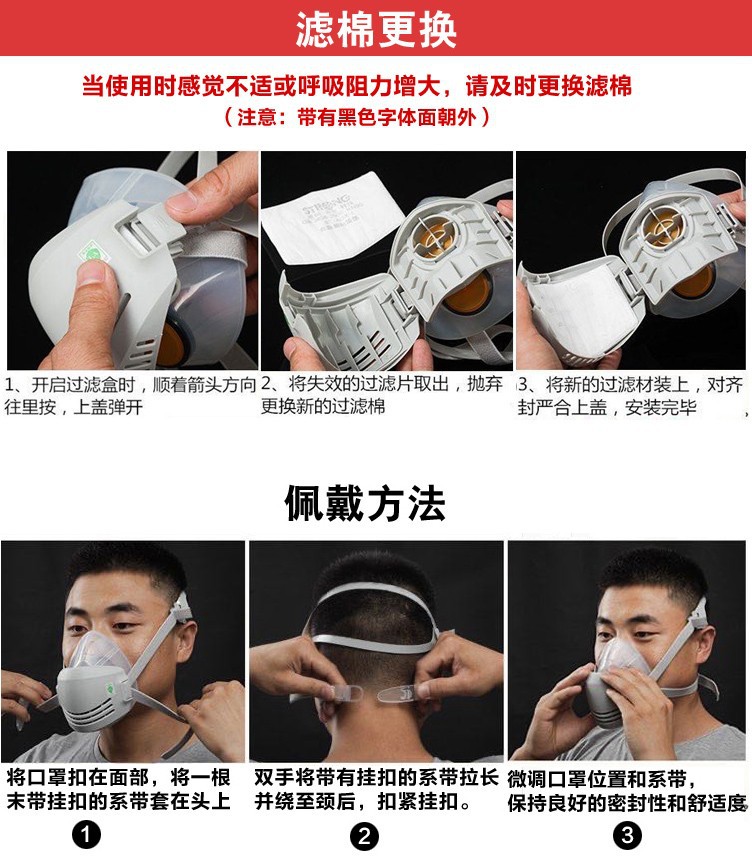 硅胶口鼻罩防尘口罩工业粉尘透气易呼吸电焊灰防毒面具头套过滤棉