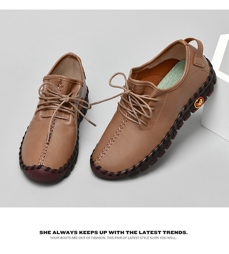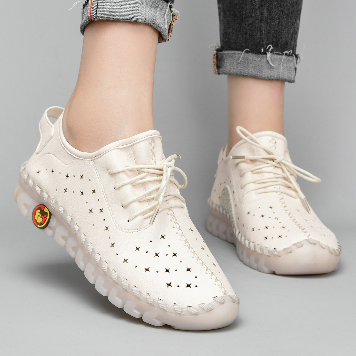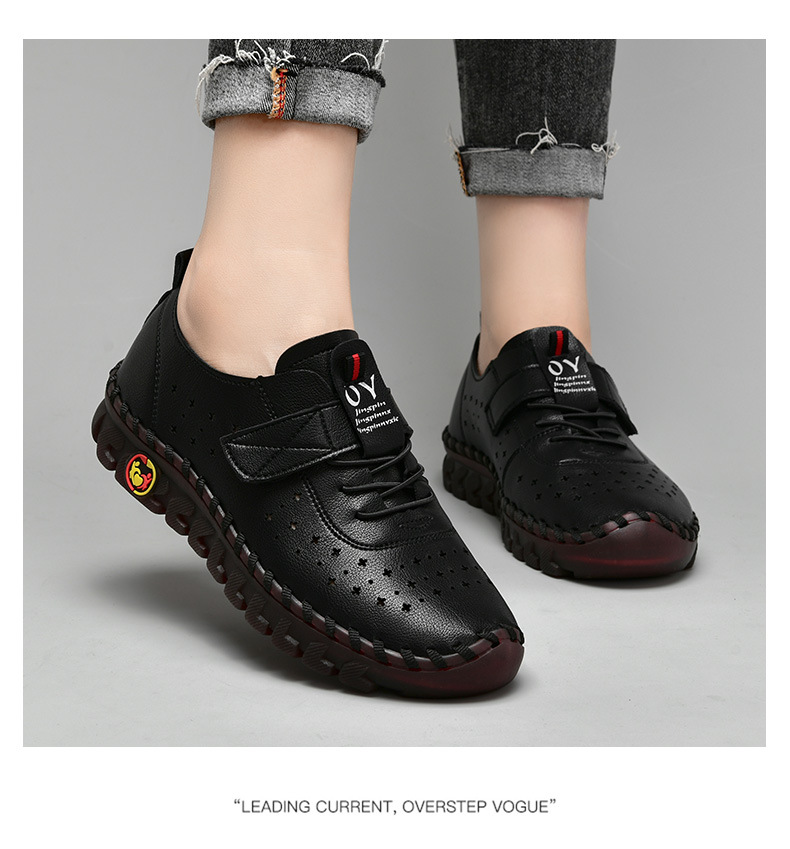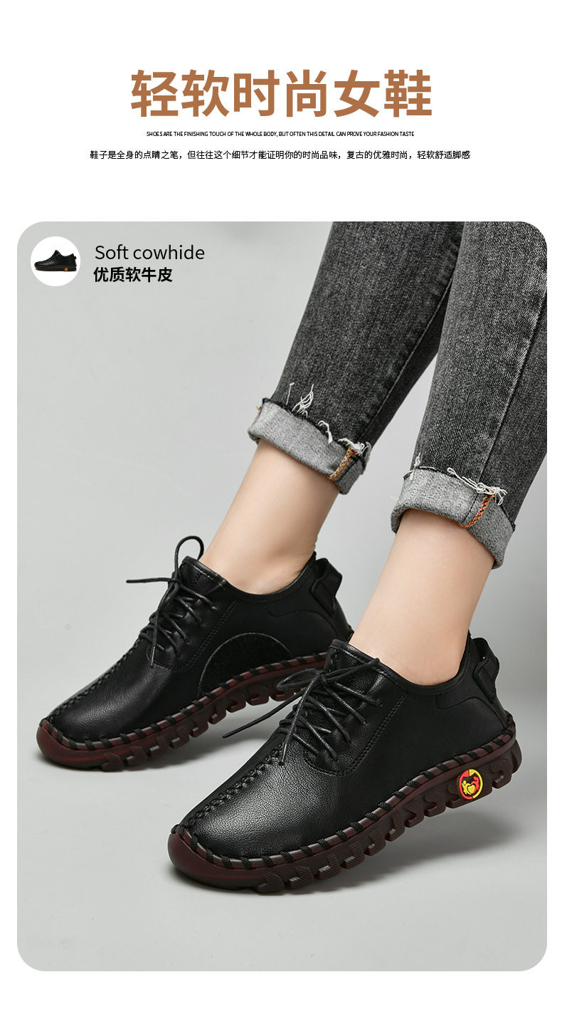 국경 간 폭발 수제 쇠고기 힘줄 부드러운 바닥 어머니 신발 여성용 2022 봄과 여름 새로운 독립 스테이션 플랫 슈즈 캐주얼 신발스토어 가기