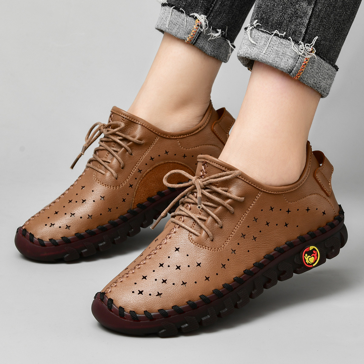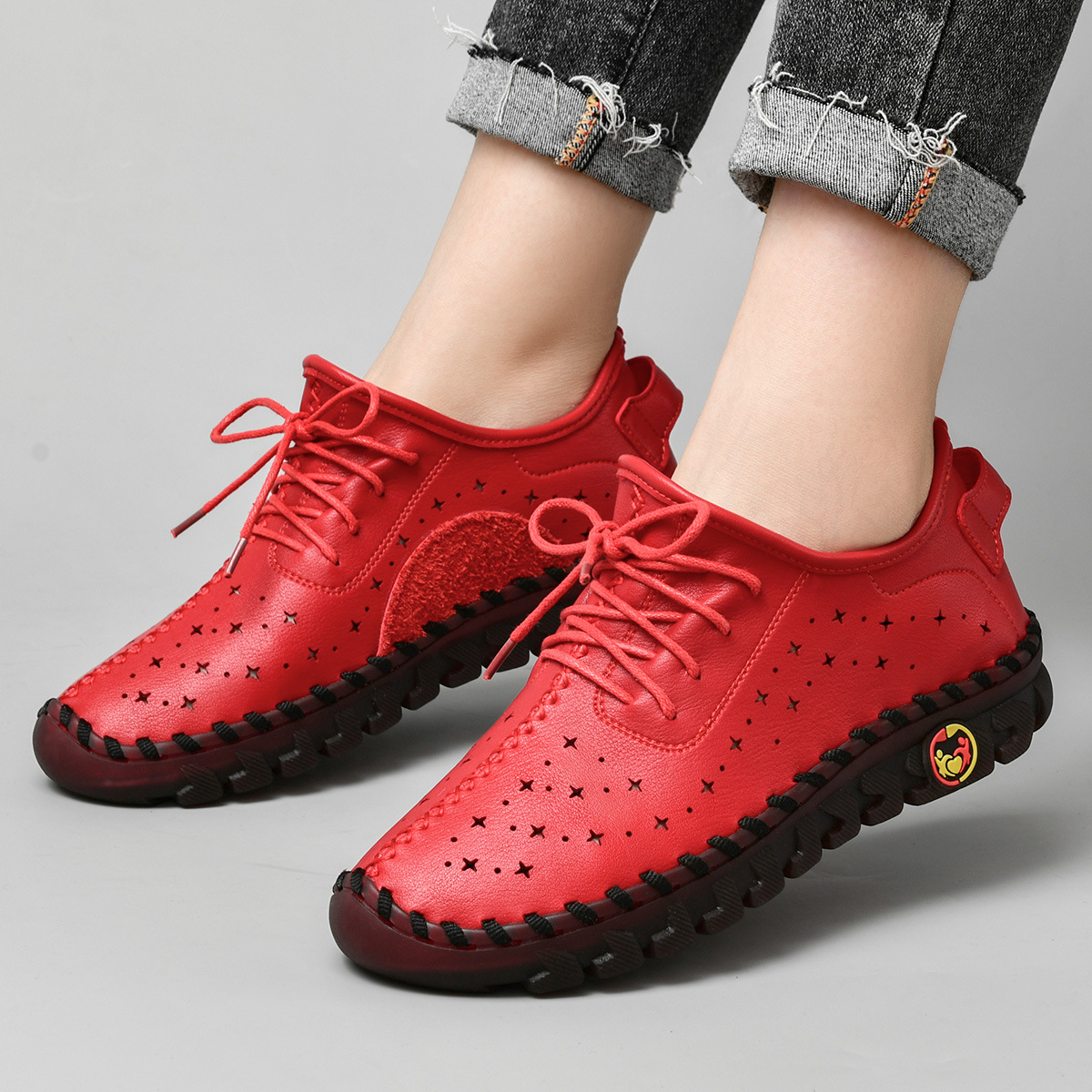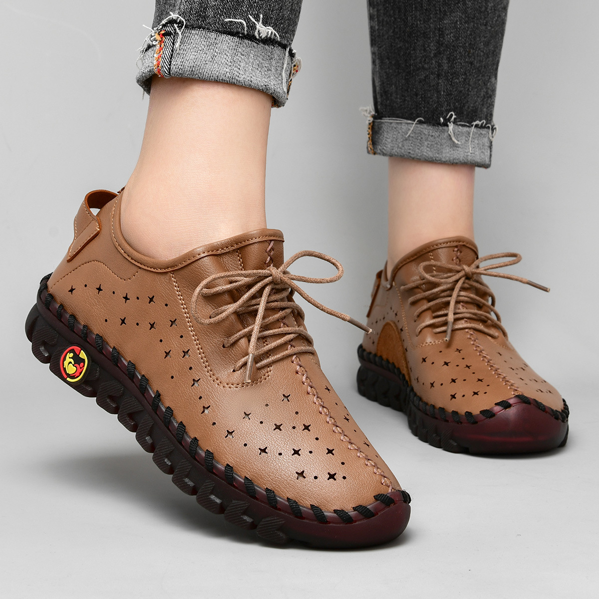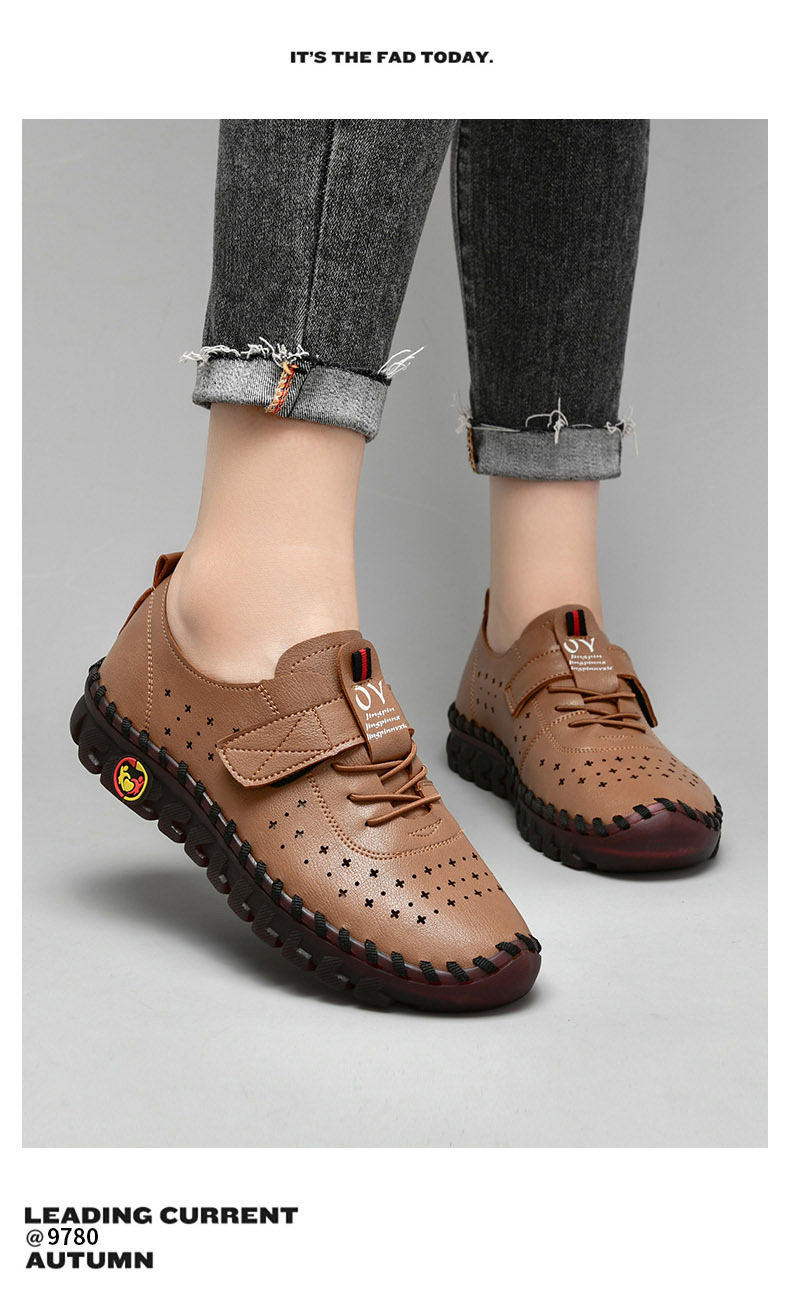국경 간 폭발 수제 쇠고기 힘줄 부드러운 바닥 어머니 신발 여성용 2022 봄과 여름 새로운 독립 스테이션 플랫 슈즈 캐주얼 신발스토어 가기