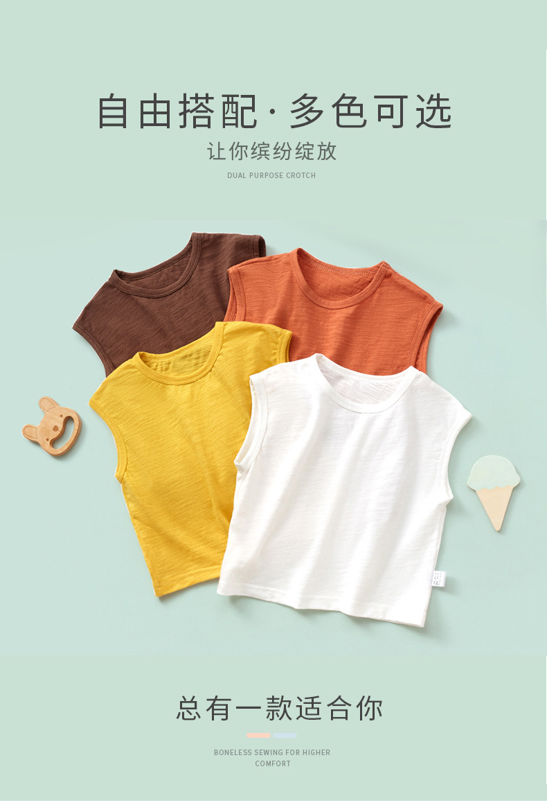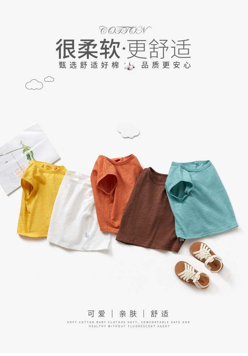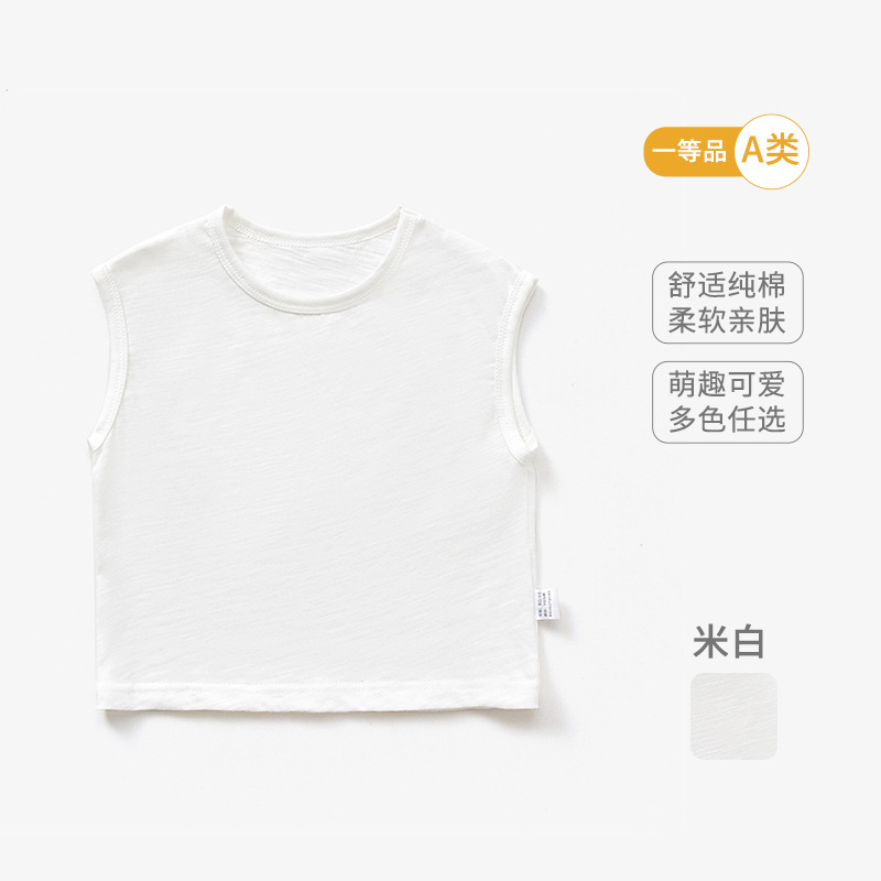 아동 조끼 순면 얇은 2025 여름 아기 여름 옷 아기상의 민소매 흰색 티셔츠 대나무면