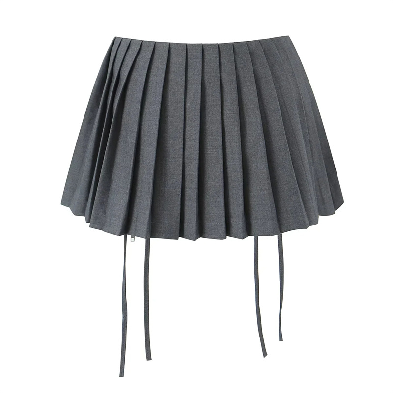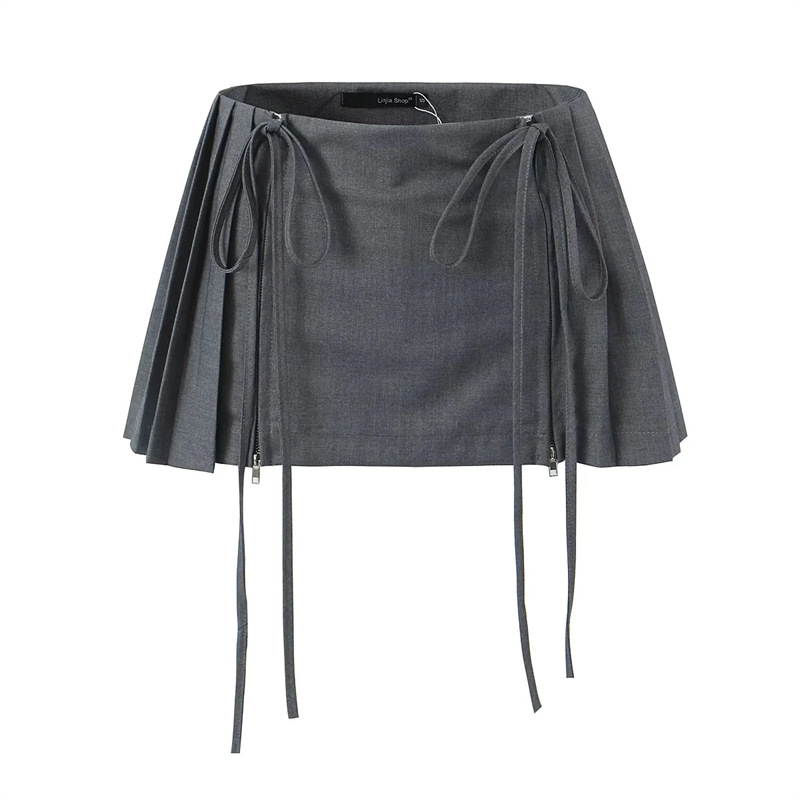 유럽과 미국 디자인 하이 웨이스트 더블 드로스트링 스커트 여성용 핫 걸 안티 라이트 모든 매치 플리츠 A 라인 미니 스커트