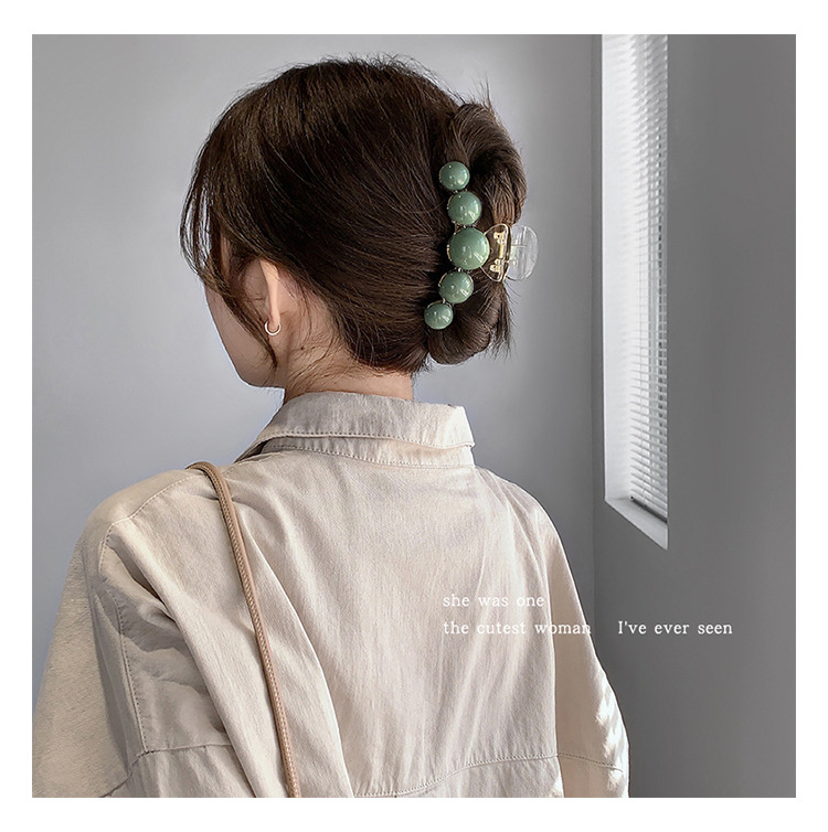 녹색 구슬 클립 여자의 고급 상어 클립 새로운 아크릴 대형 스몰 사이즈 모자 머리핀 모자