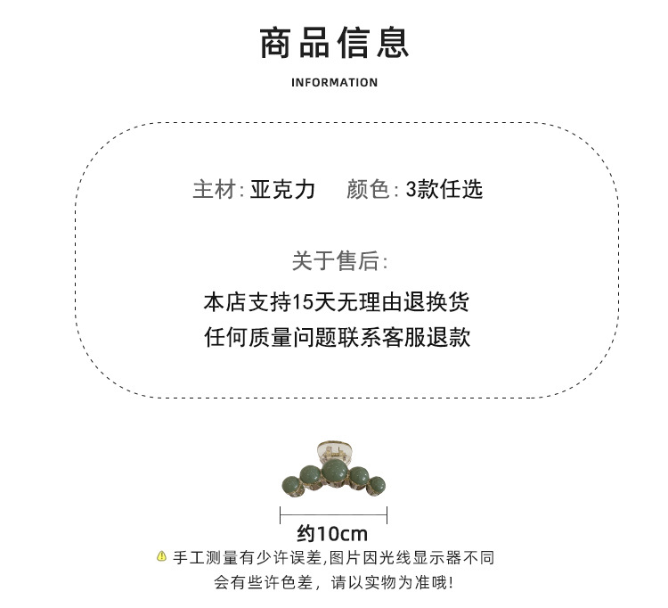 녹색 구슬 클립 여자의 고급 상어 클립 새로운 아크릴 대형 스몰 사이즈 모자 머리핀 모자스토어 가기