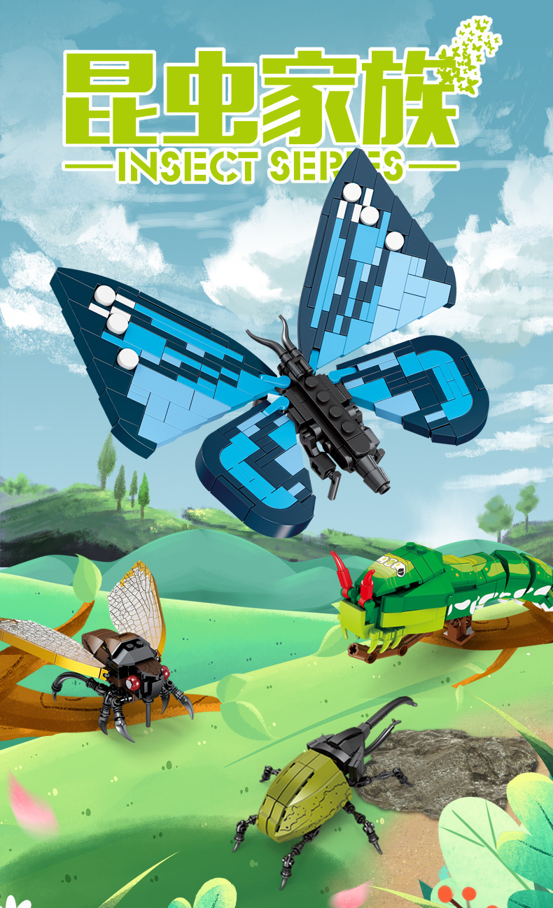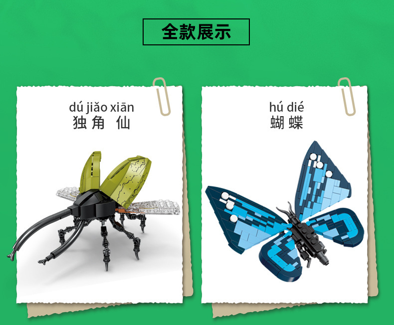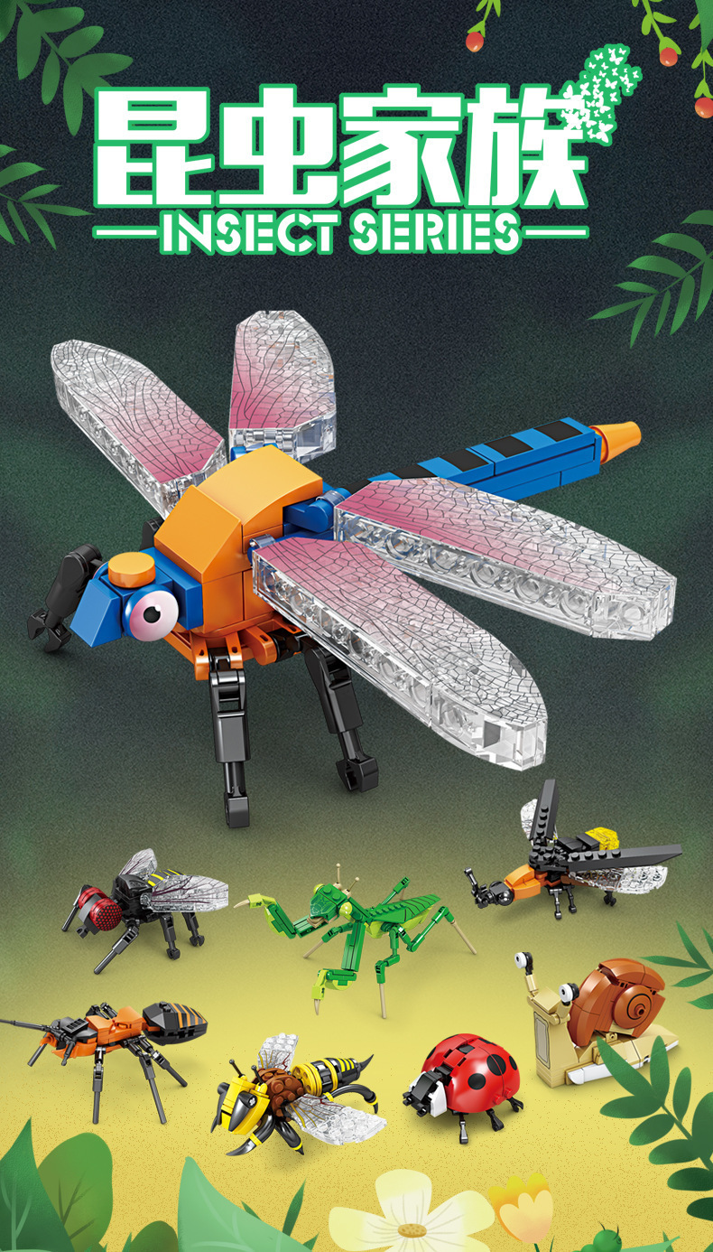 Kaizhi 80040-57 곤충 동물 나비 잠자리 조립 남녀 건물 블록 장난감 어린이 과학 및 교육 도매 선물스토어 가기