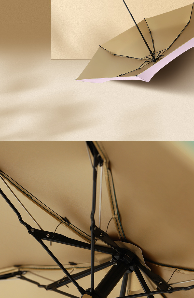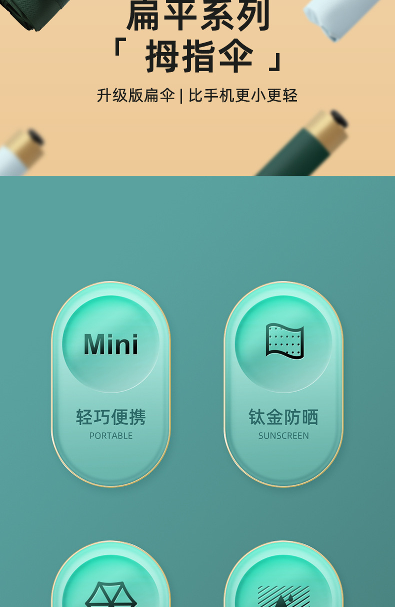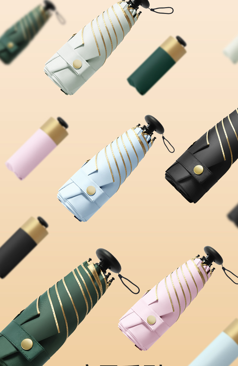 60% 접이식 엄지 우산 골드 접착제 태양 보호 차양 우산 미니 휴대용 여성용 접이식 태양 우산 맑고 비오는 이중 목적 포켓 우산