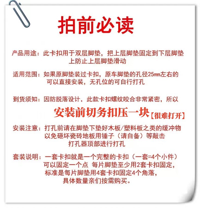 자동차 더블 레이어 풋 패드 버클 미끄럼 방지 플라스틱 버클 가죽 실크 링 손잡이 고정 아티팩트 분리 액세서리스토어 가기