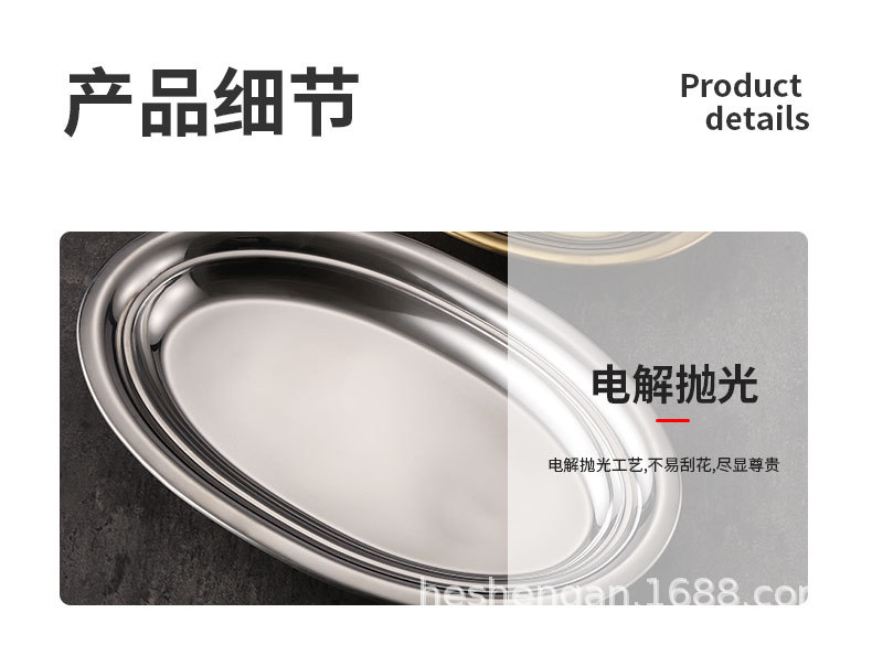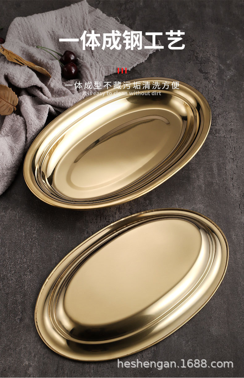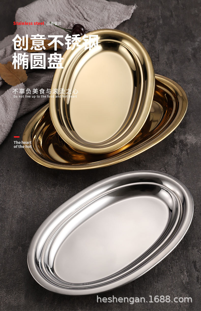 공장 직접 스테인레스 스틸 타원형 접시 계란 모양 찐 생선 접시 한국식 황금 접시 바베큐 밥 창자 식사 접시