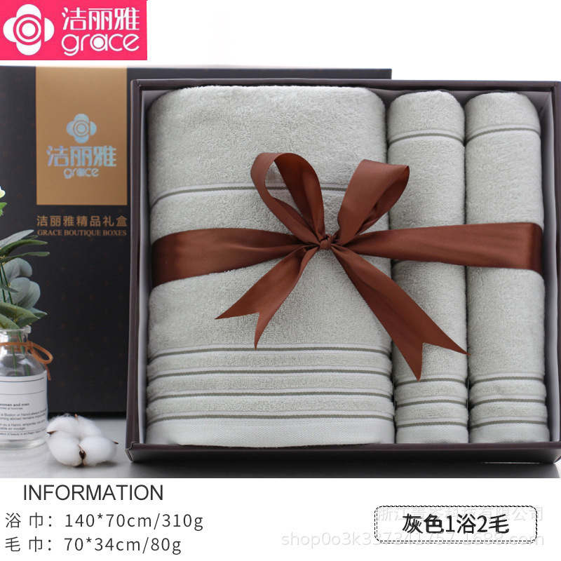 지엘리아 목욕 타월 선물 상자 도매면 3 종 세트 자수 로고 비즈니스 웨딩 선물 상자 타월 면