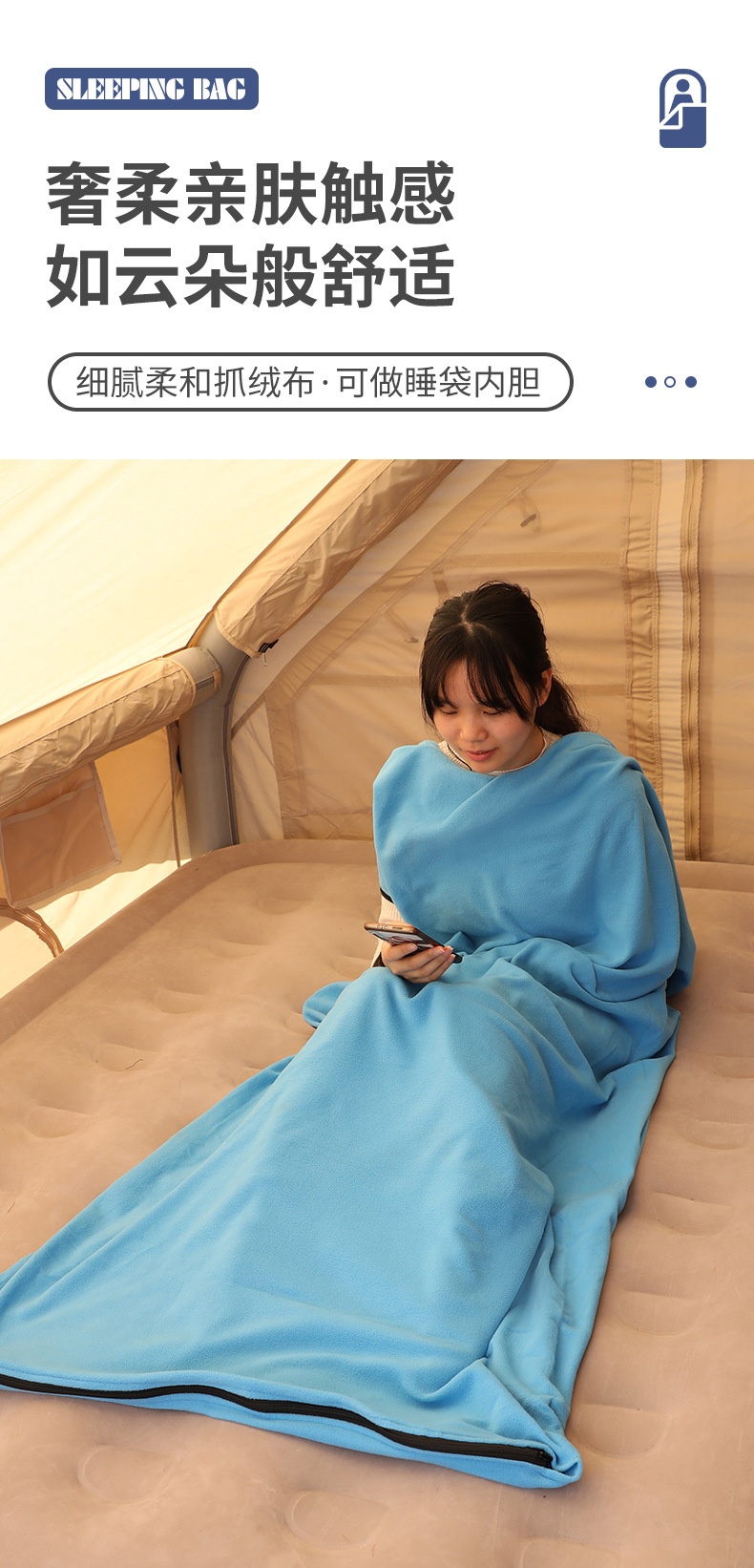 야외 캠핑 성인용 플리스 침낭 봉투형 초경량 여행 낮잠 보온 침낭 담요 제조사 직판