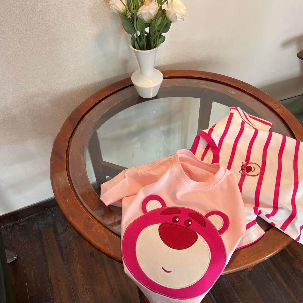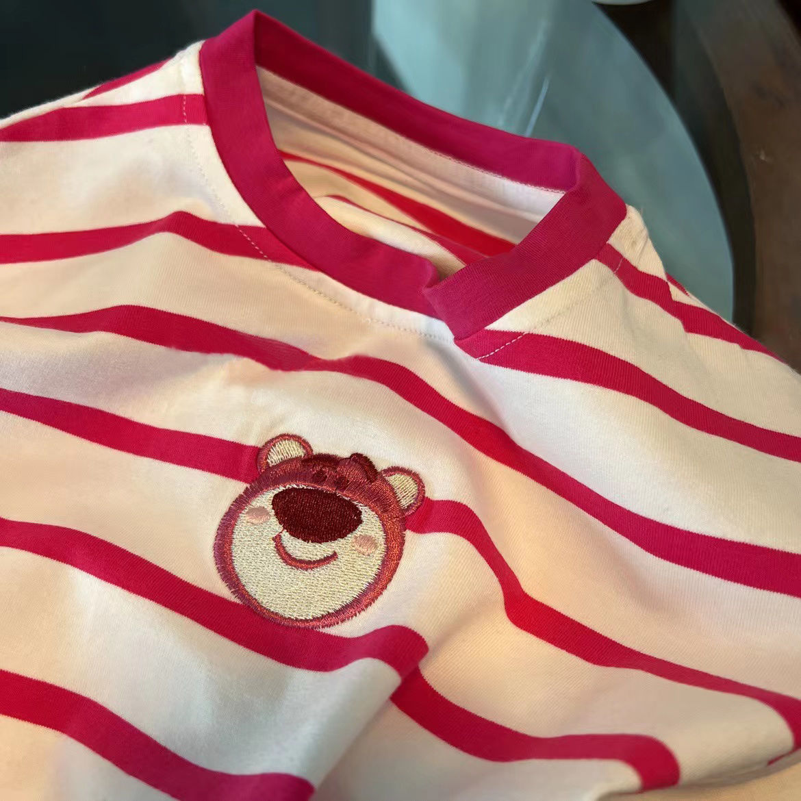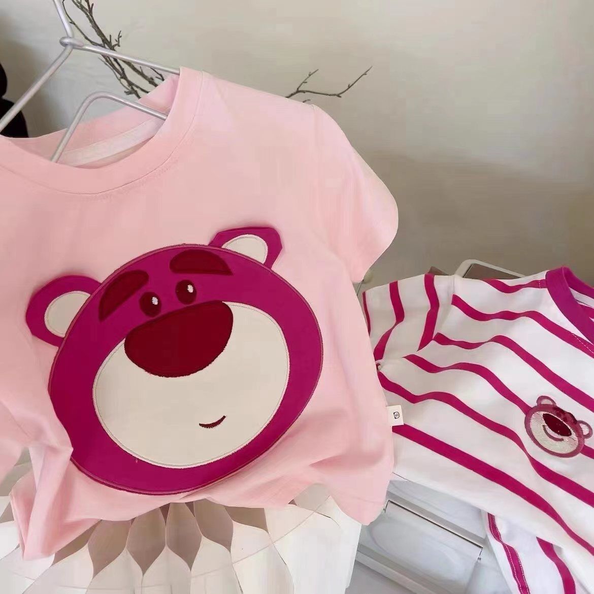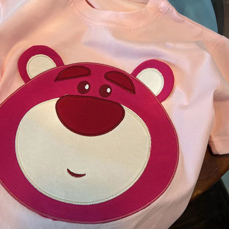 여아 반팔 여름 티셔츠 어린이 반팔 딸기 곰 만화 자수 탑 어린이 유행 느슨한 옷스토어 가기