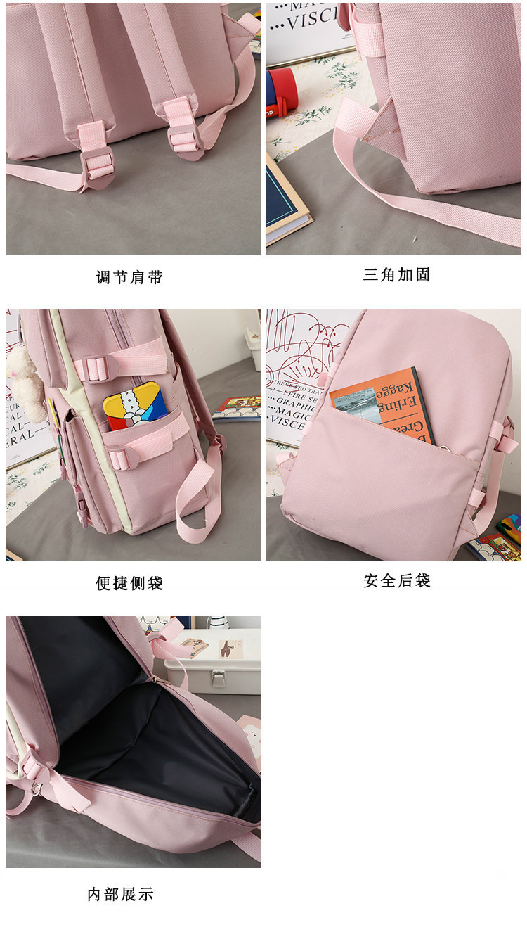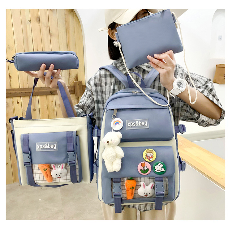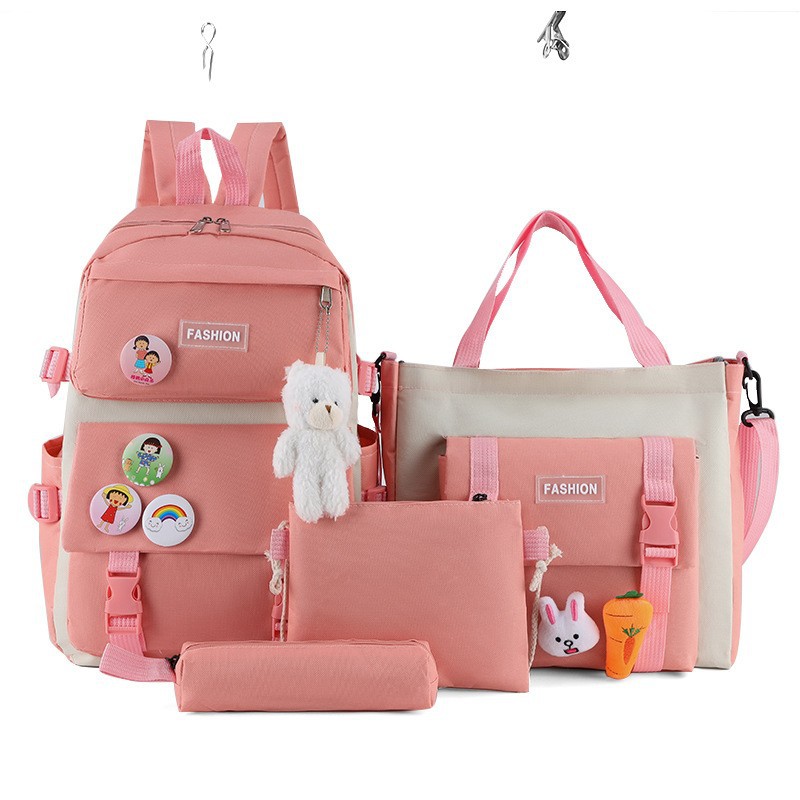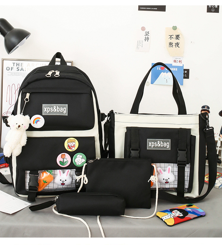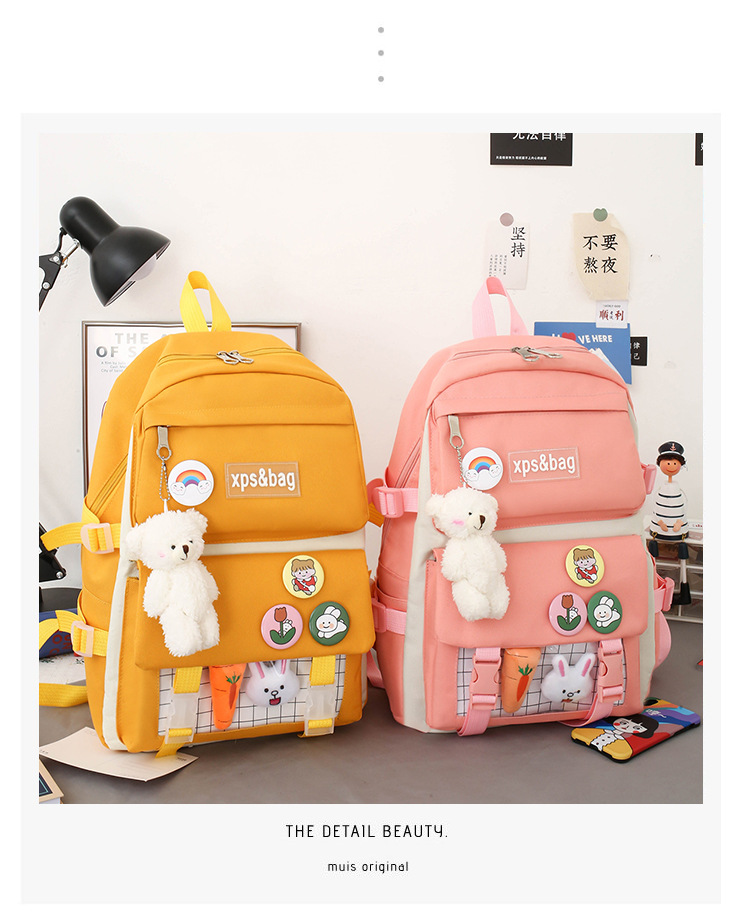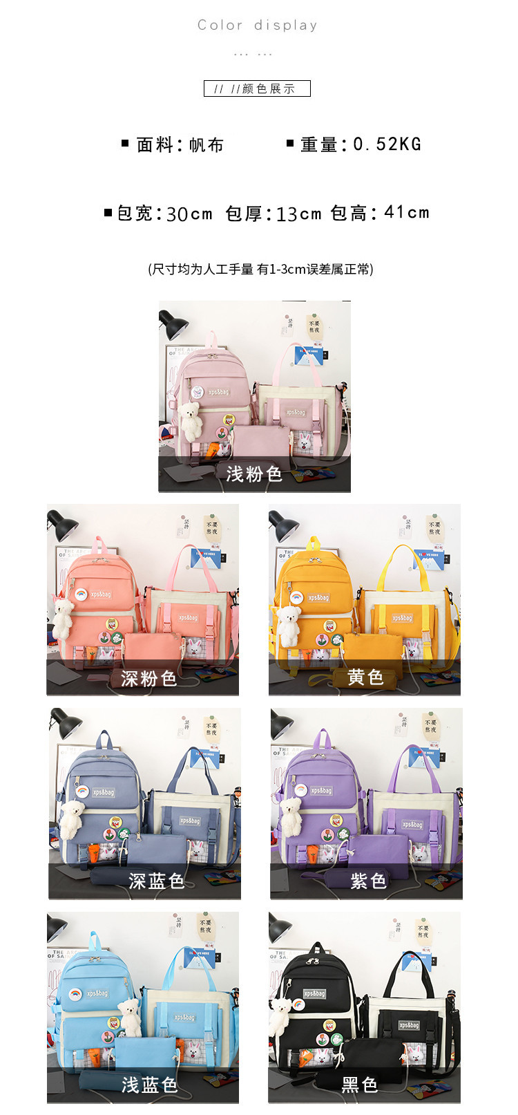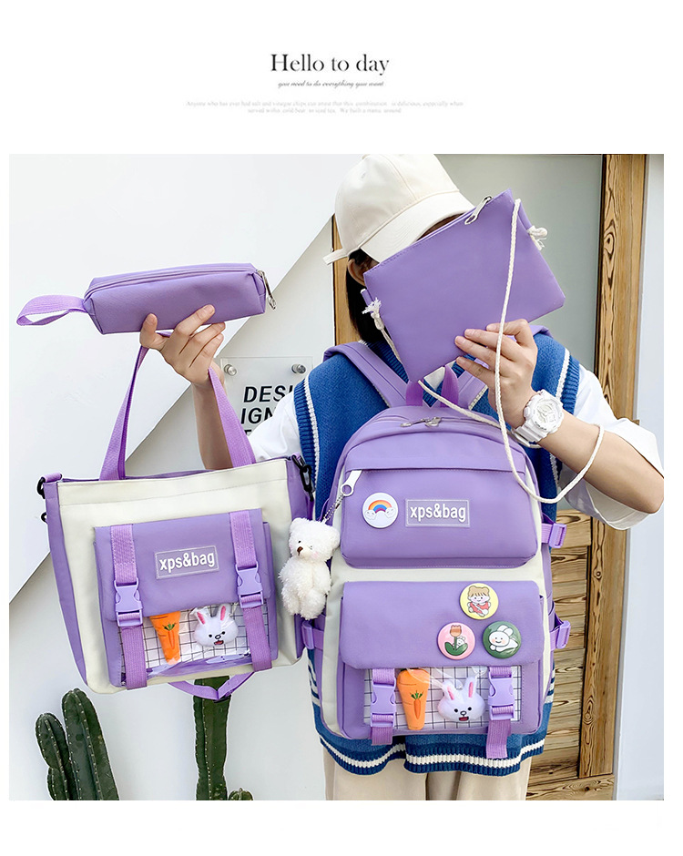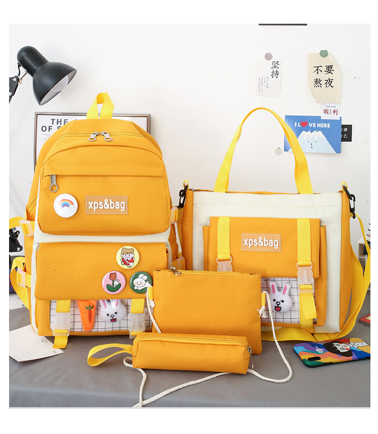 4-5 피스 학생 가방 여자 초등학생 중학생 배낭 캔버스 배낭 남성 조수 무 토끼