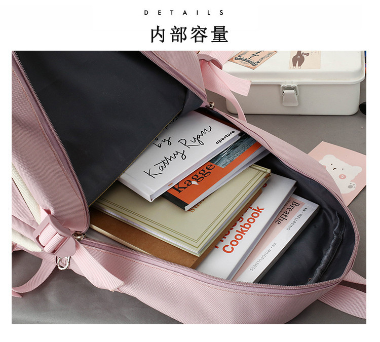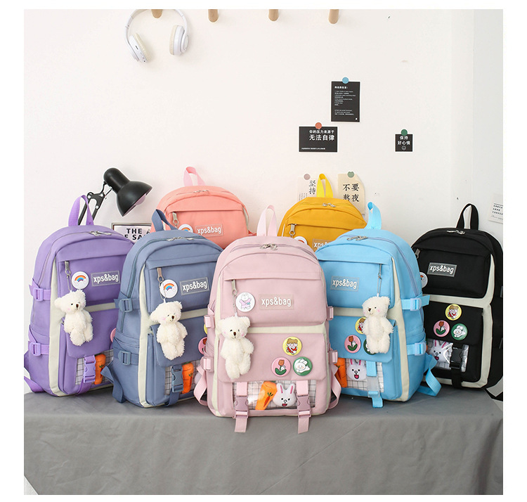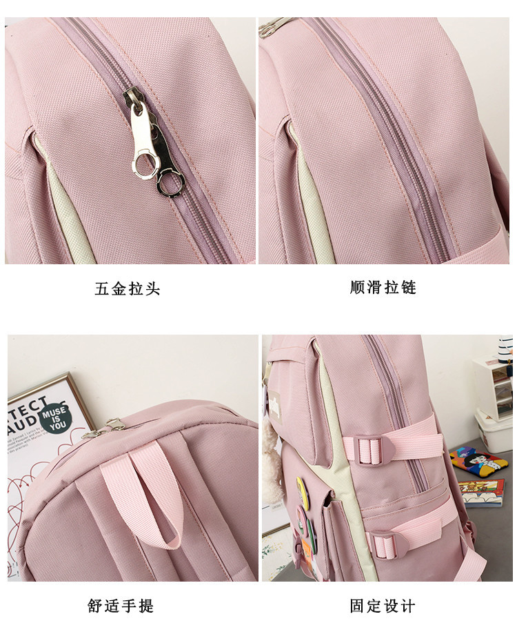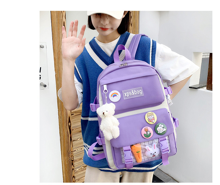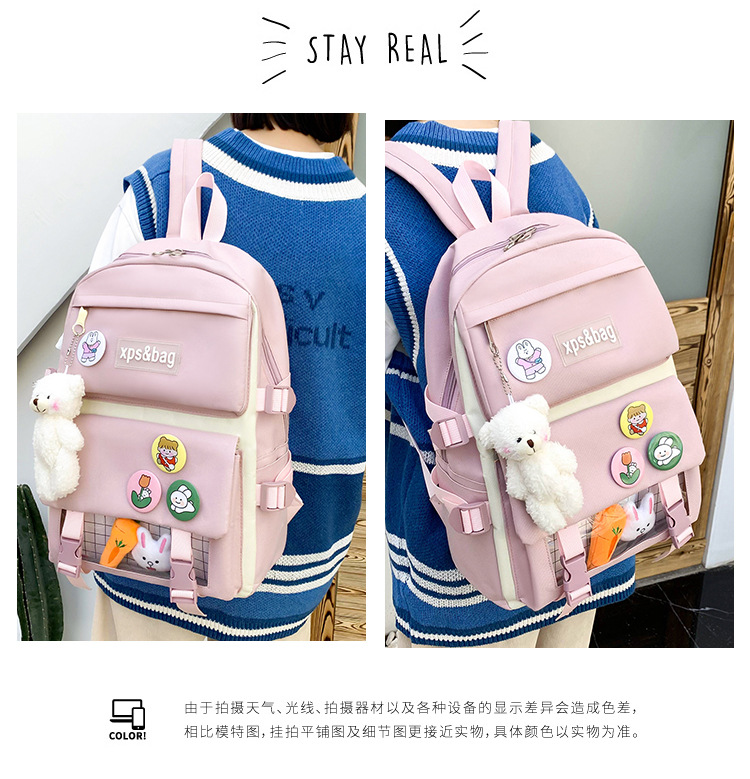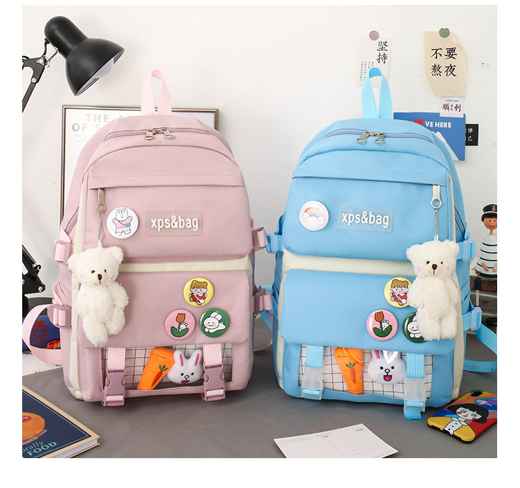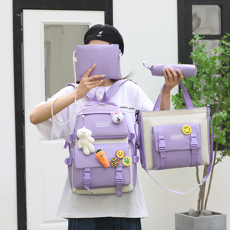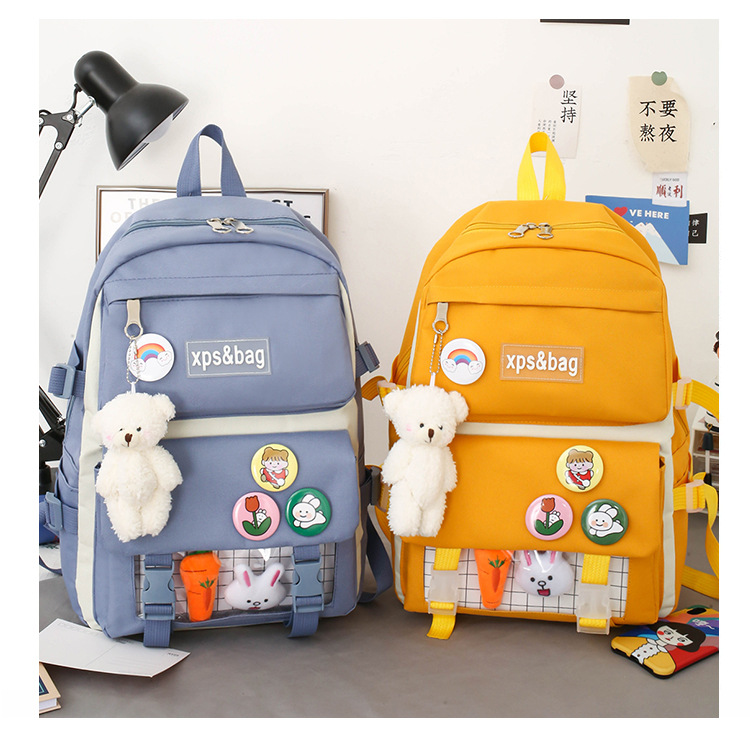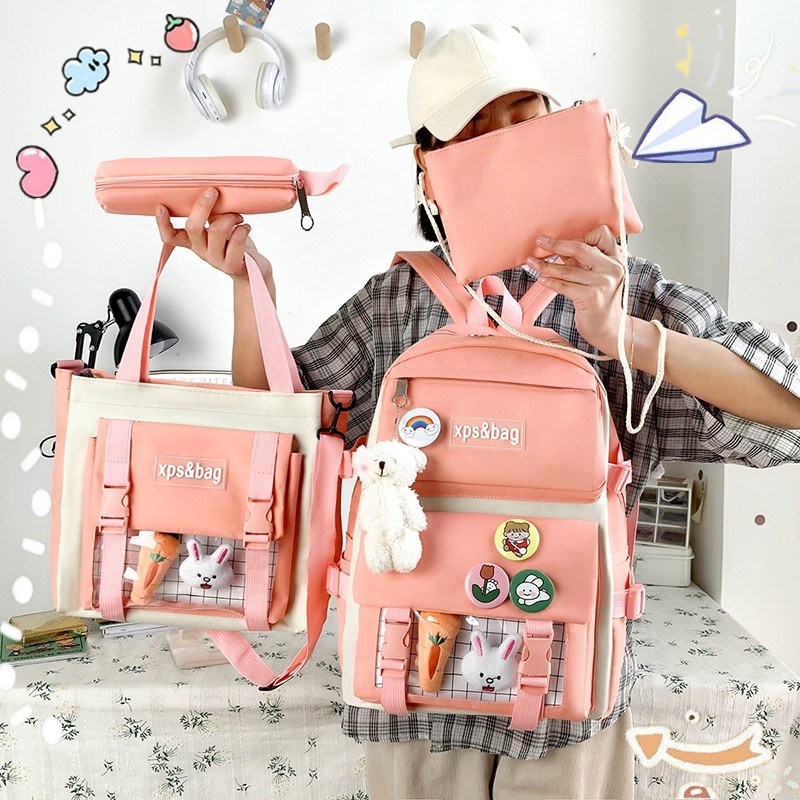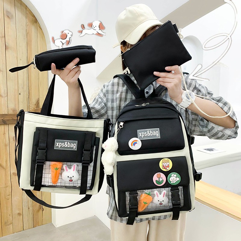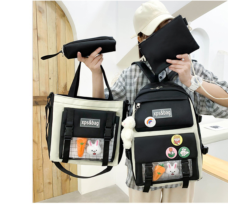 4-5 피스 학생 가방 여자 초등학생 중학생 배낭 캔버스 배낭 남성 조수 무 토끼