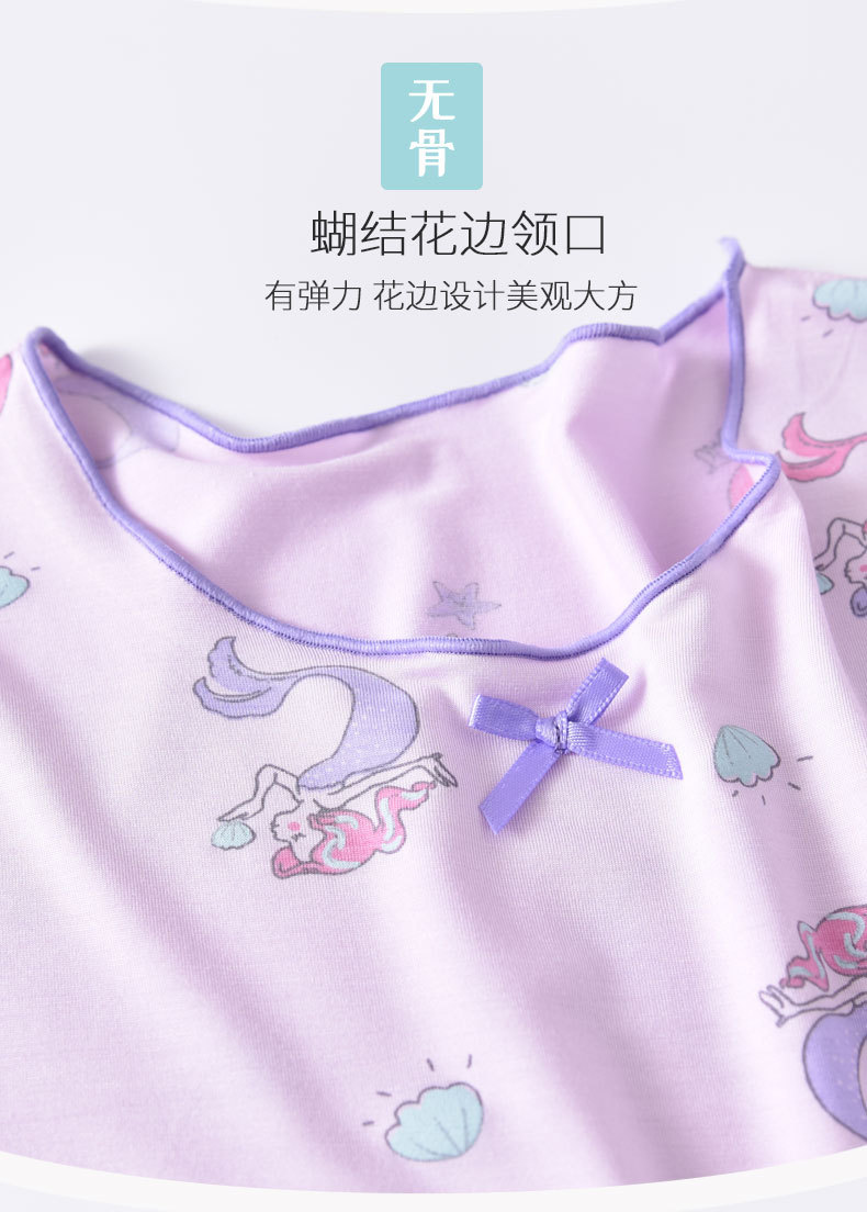 60 모달 소녀 잠옷 얇은 7 소매 어린이 여름 에어컨 옷 긴 소매 가정 옷 세트스토어 가기