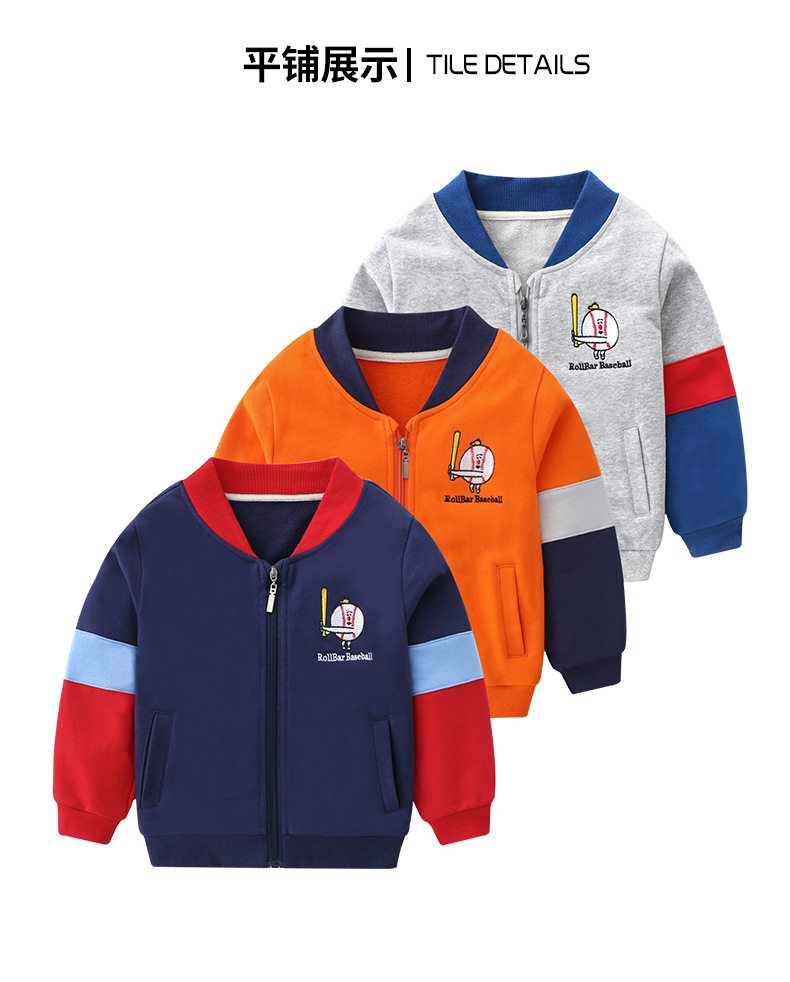 2023 년 봄과 가을, 새로운 어린이 만화 컬러 매칭 긴 소매 카디건 테리 지퍼 코트 어린이를위한 머리카락 세대