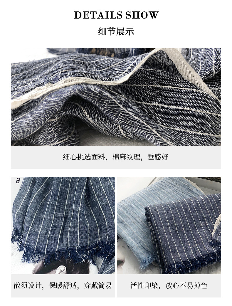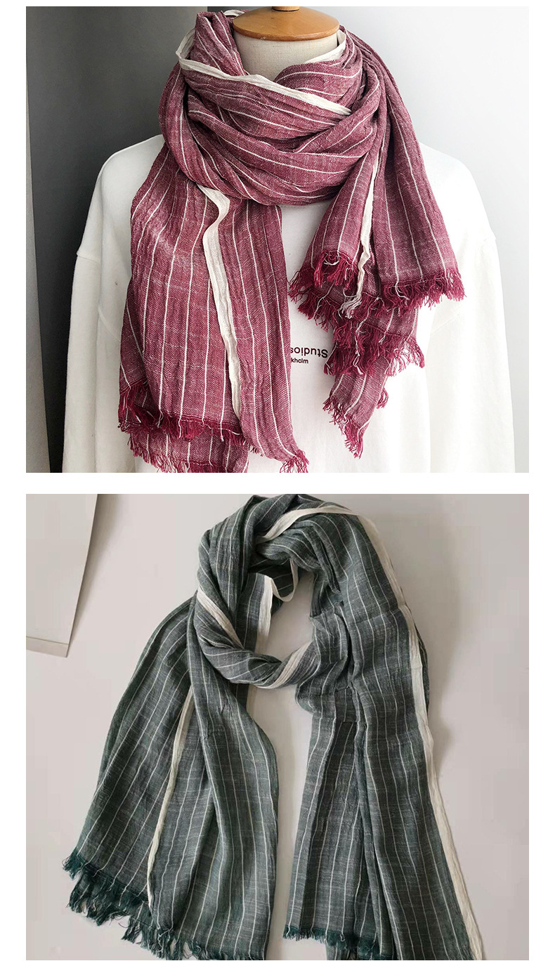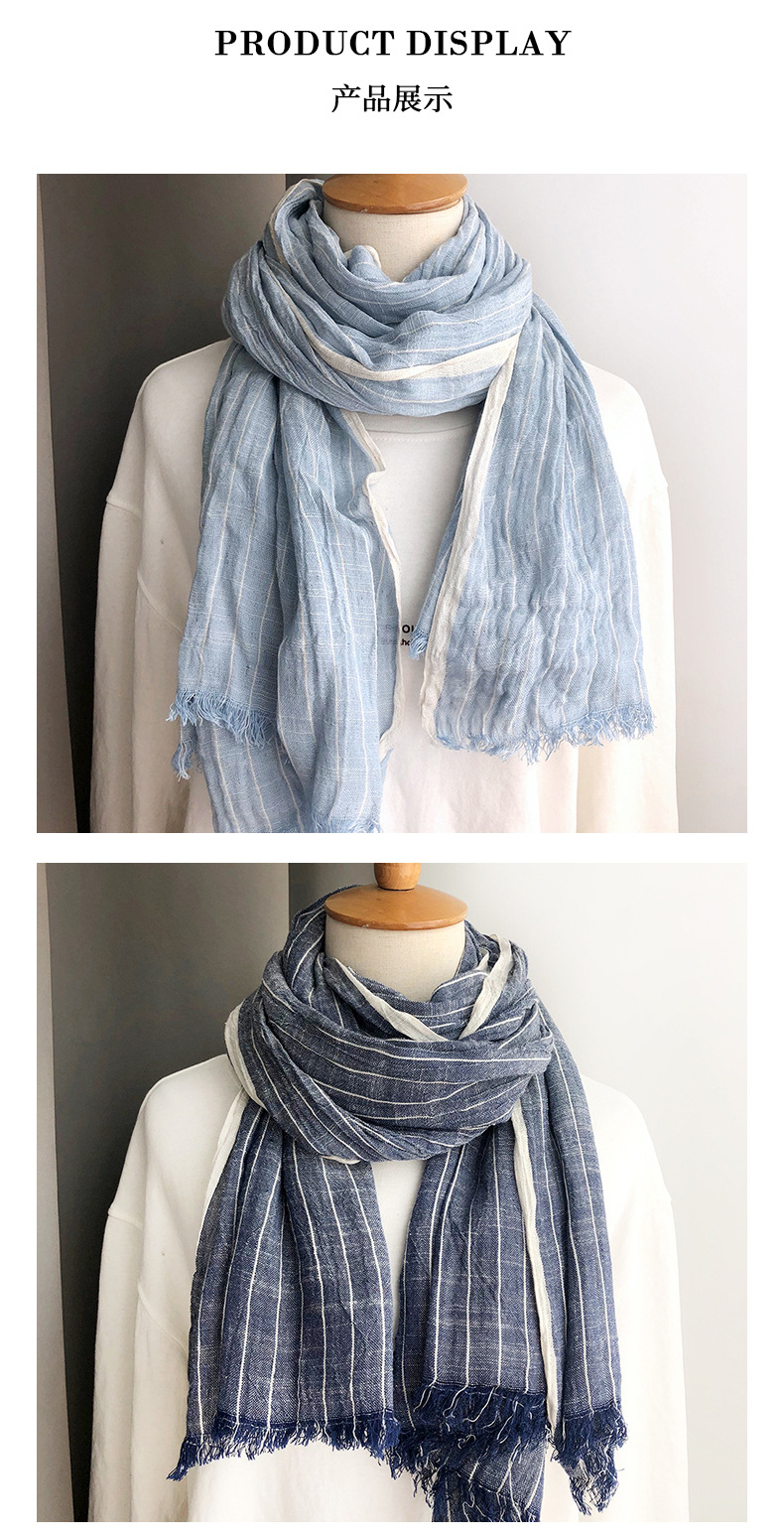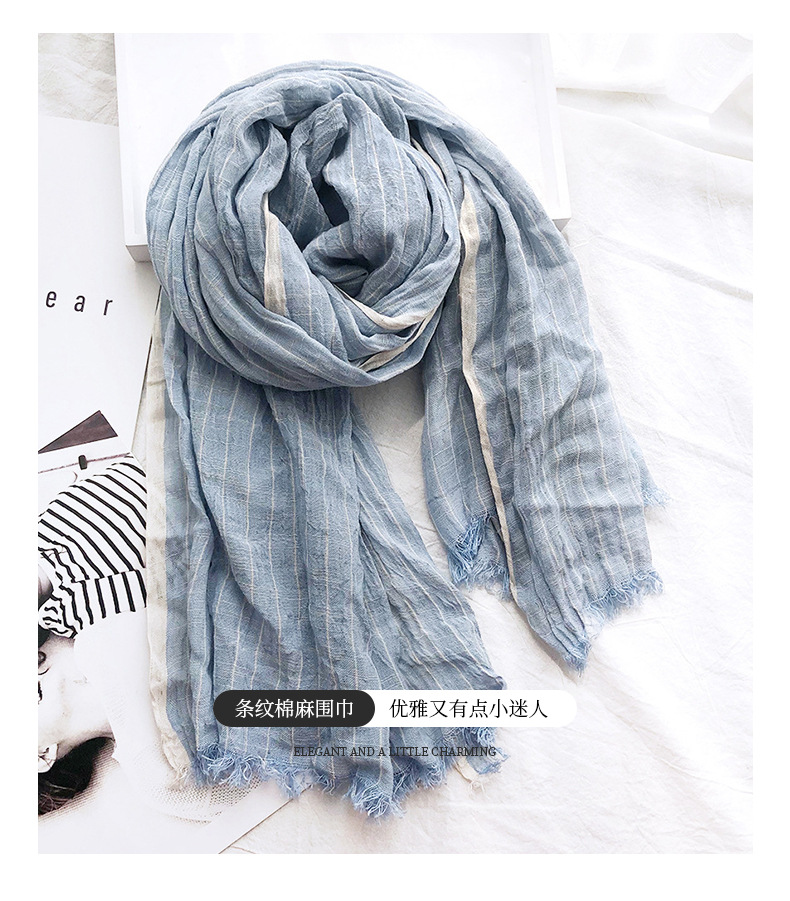 일본의면과 린넨 스카프 여성의 봄과 가을 2023 얇은 빈티지 예술적 술 숄 롱 스트라이프 린넨 와이스토어 가기
