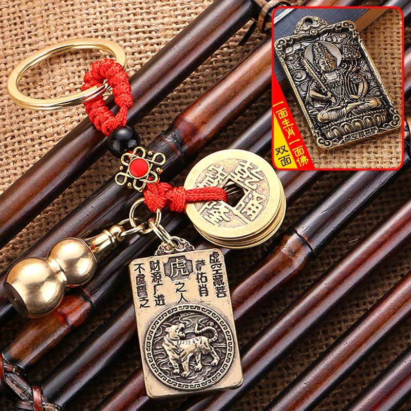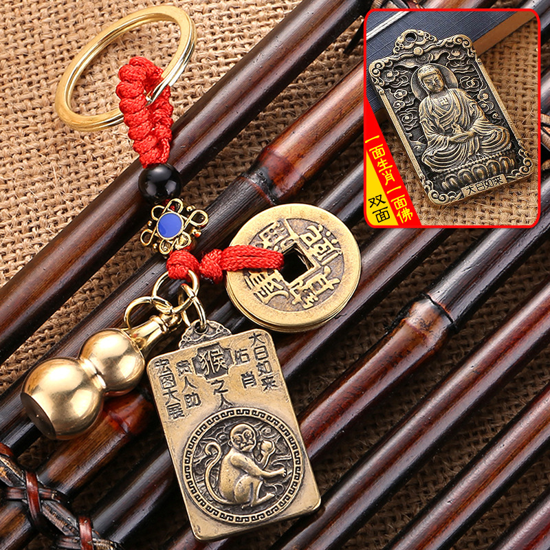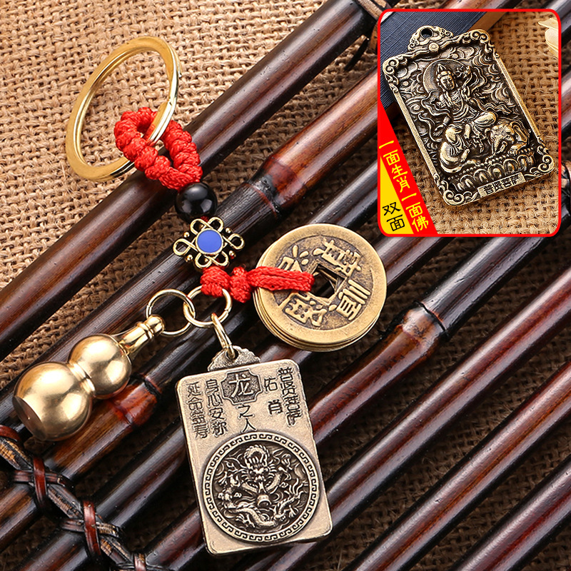 황동 펜던트 12 조디악 5 황제 돈 8 후원자 세인트 조롱박 빨간 밧줄 짠 부적 자동차 열쇠 고리스토어 가기