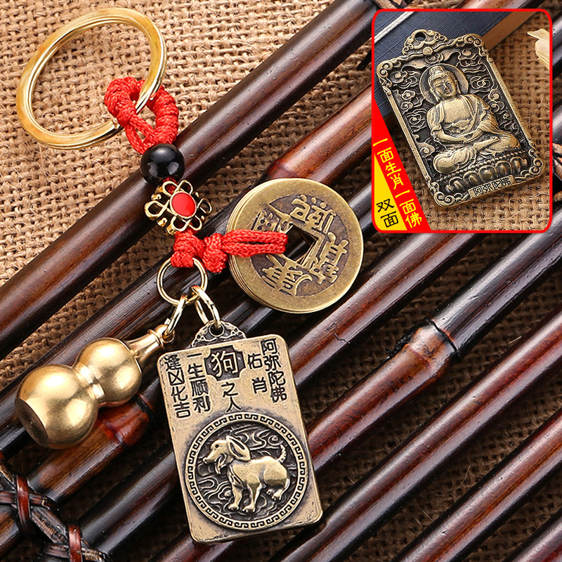 황동 펜던트 12 조디악 5 황제 돈 8 후원자 세인트 조롱박 빨간 밧줄 짠 부적 자동차 열쇠 고리
