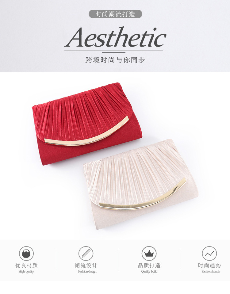 유럽 고급 플리츠 새틴 클러치 백 우아한 휴대 전화 연회 가방 클러치 백 대용량 봉투 가방