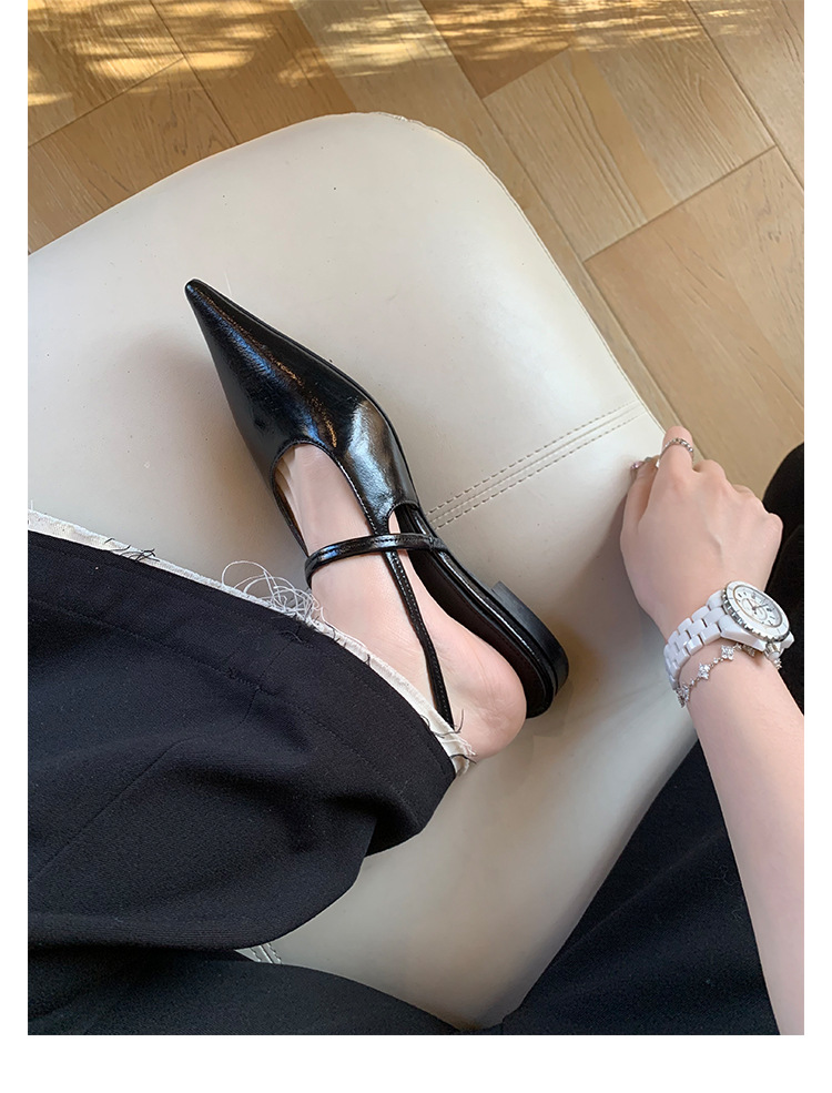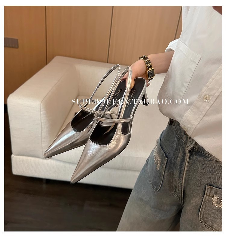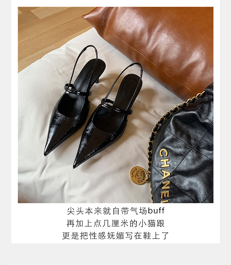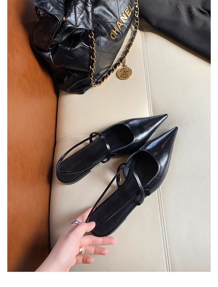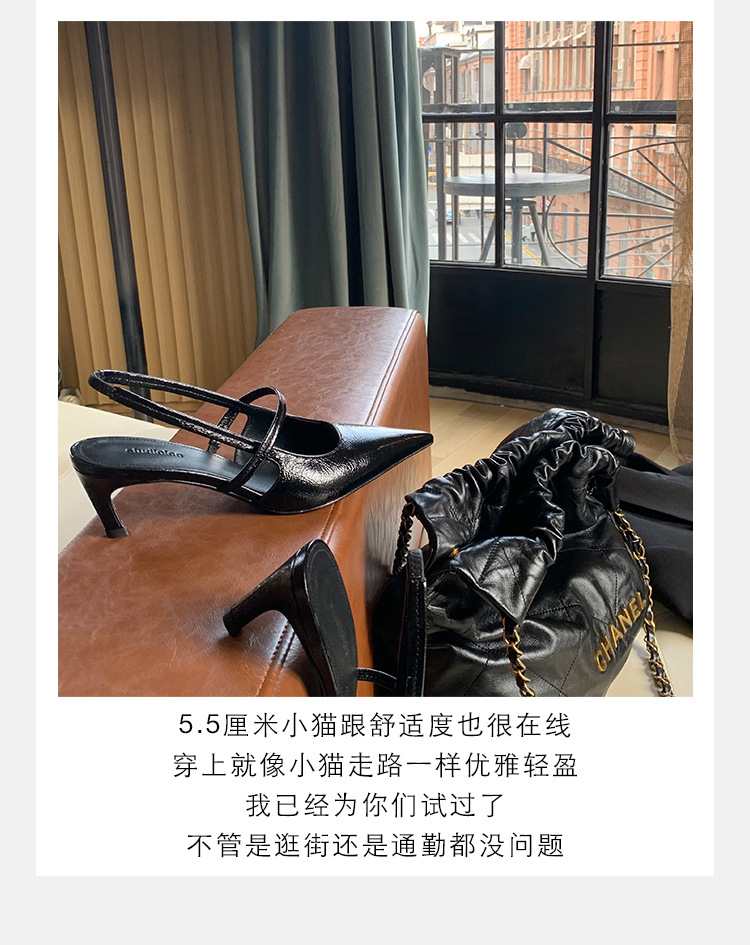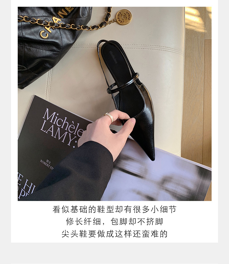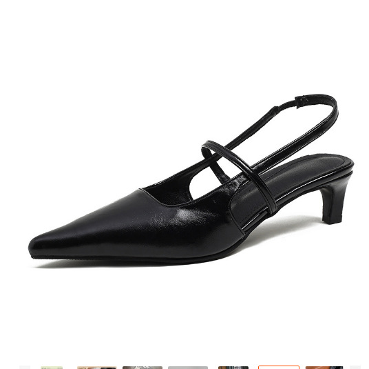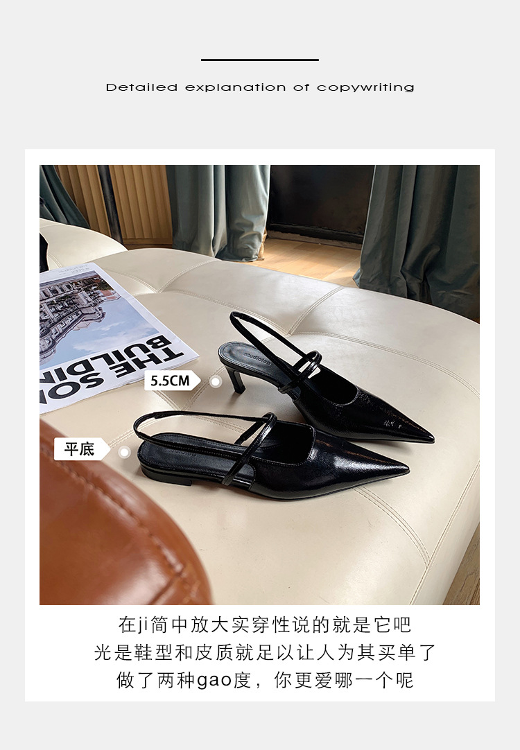 포도마마 스튜디오리 여름 프렌치 스타일 뾰족코 오픈백 샌들 키튼힐 여성용 원뿔형 중간 굽 신발스토어 가기