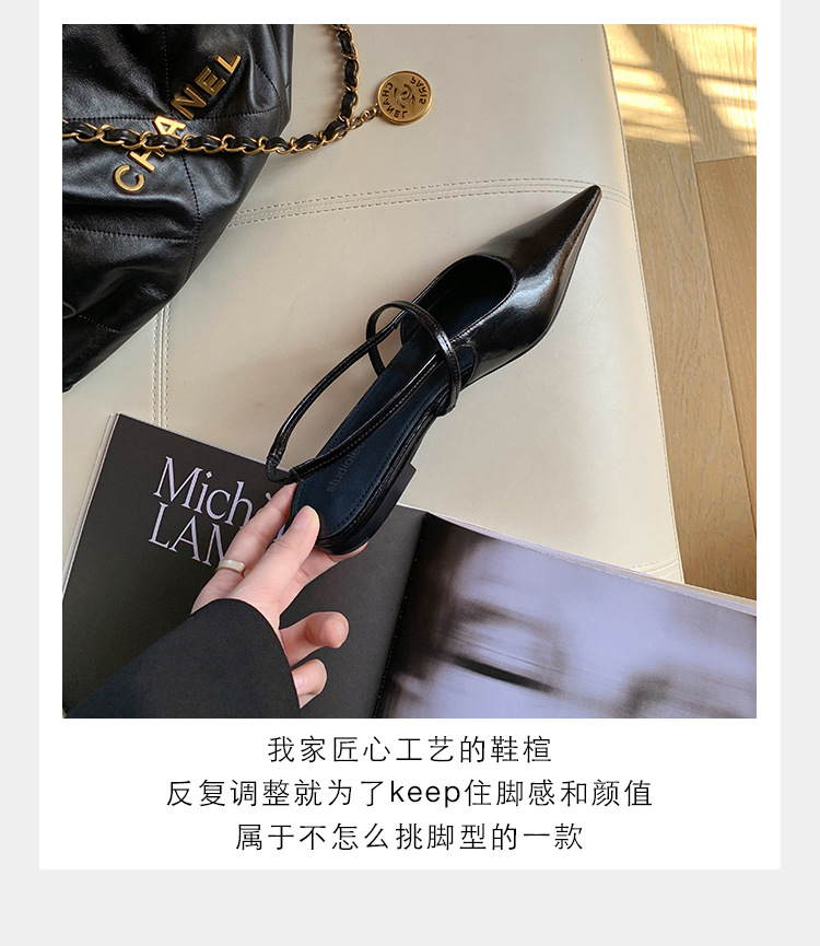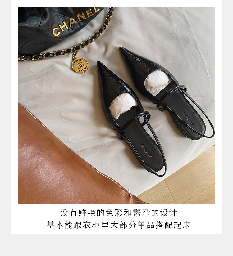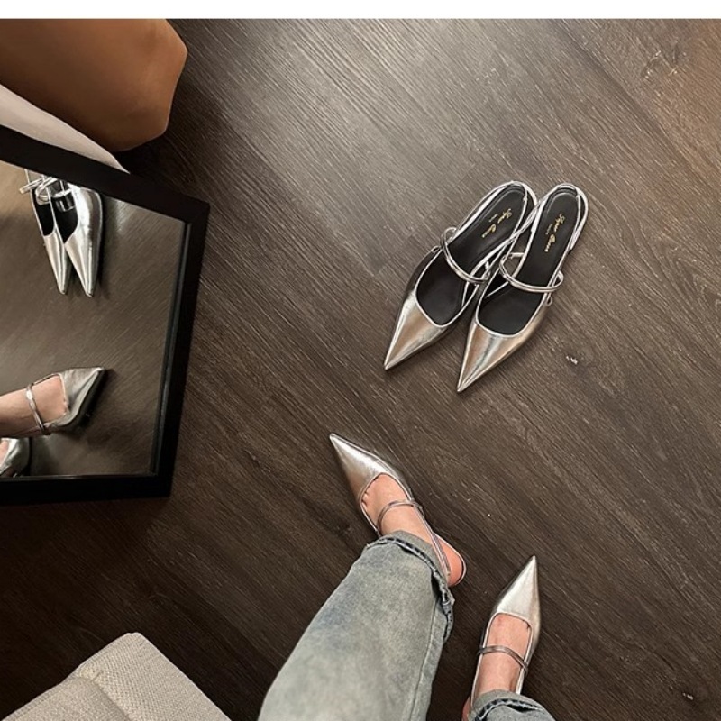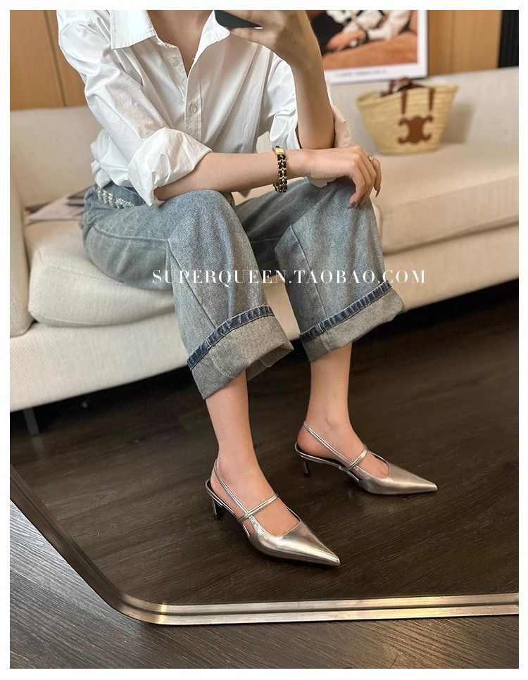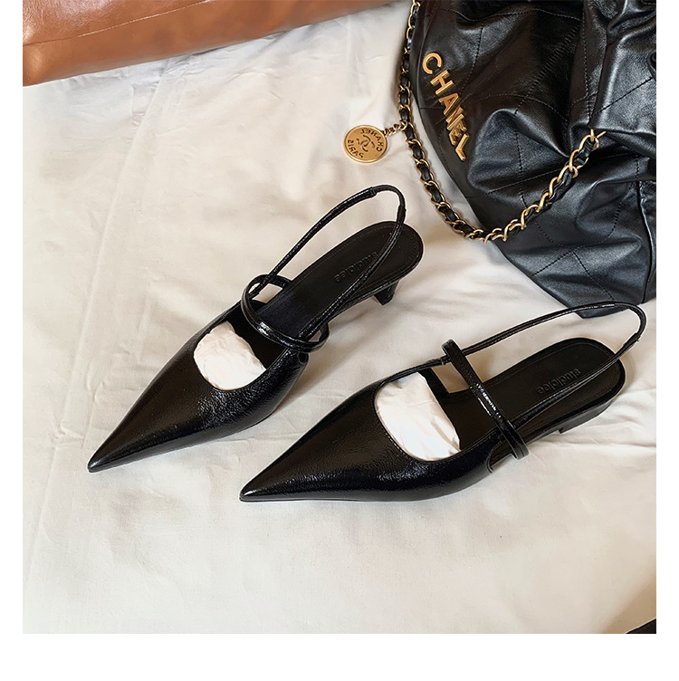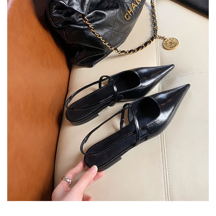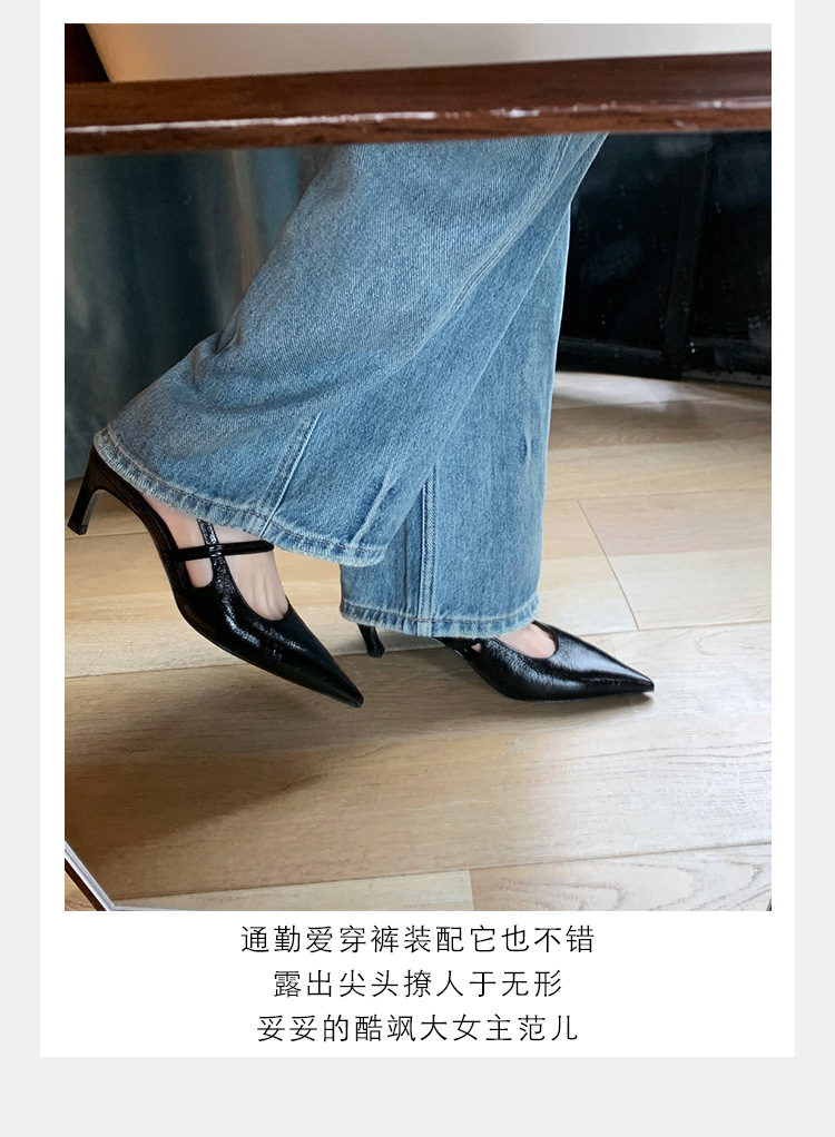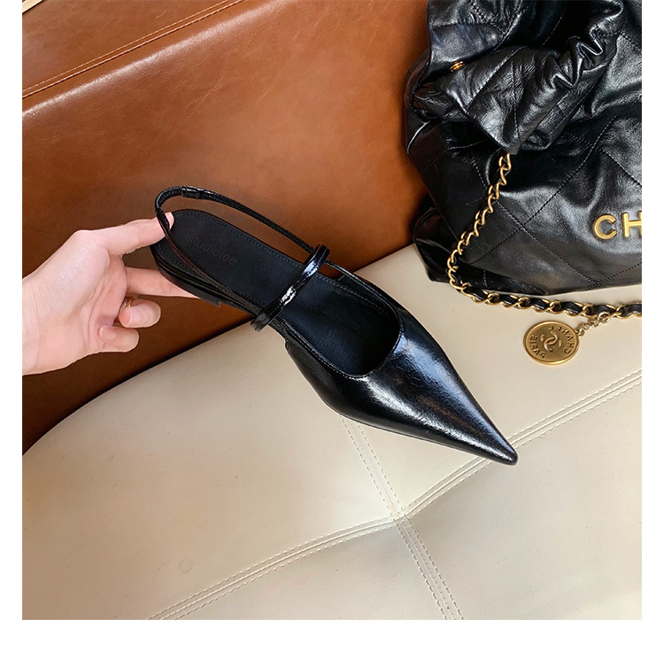포도마마 스튜디오리 여름 프렌치 스타일 뾰족코 오픈백 샌들 키튼힐 여성용 원뿔형 중간 굽 신발스토어 가기