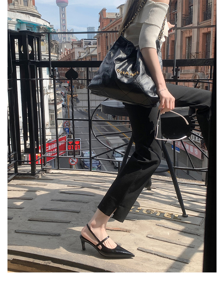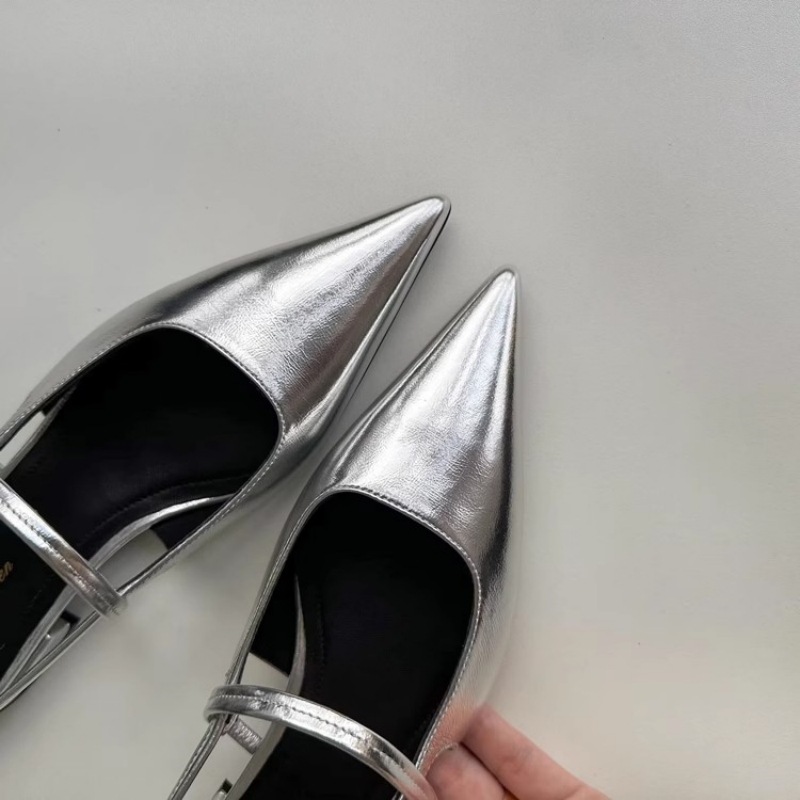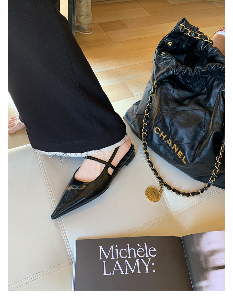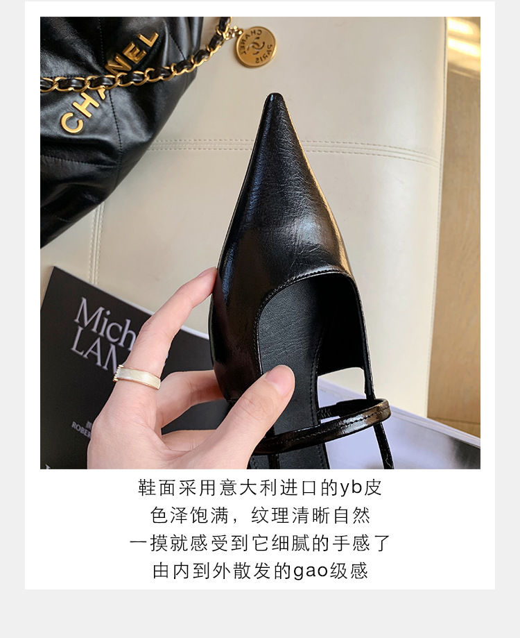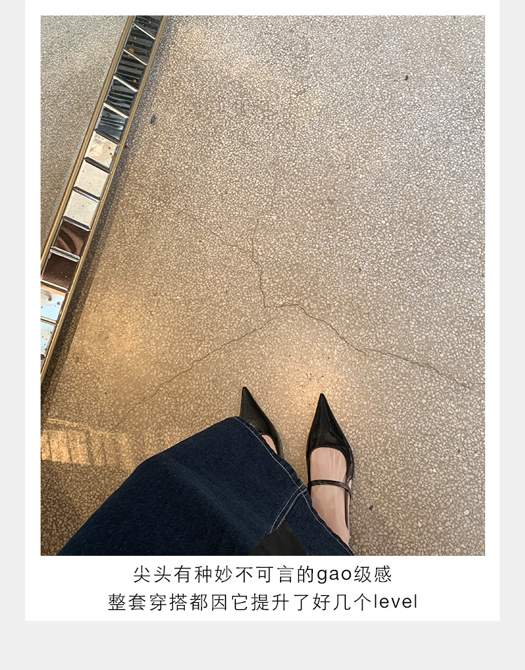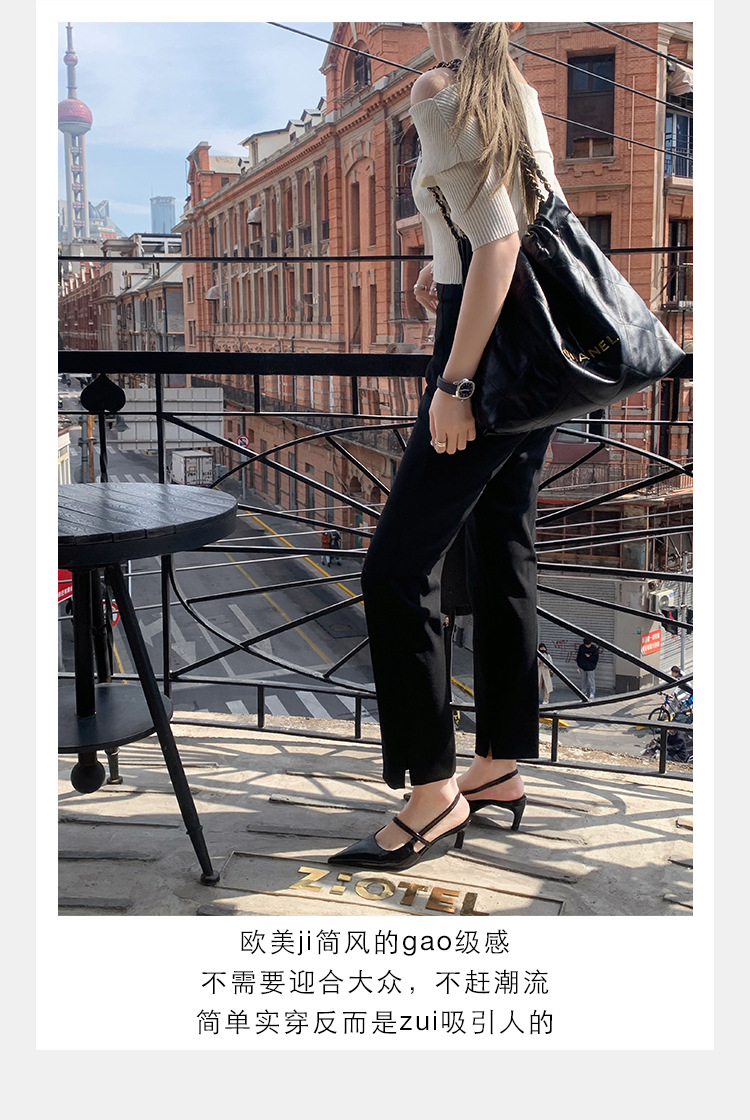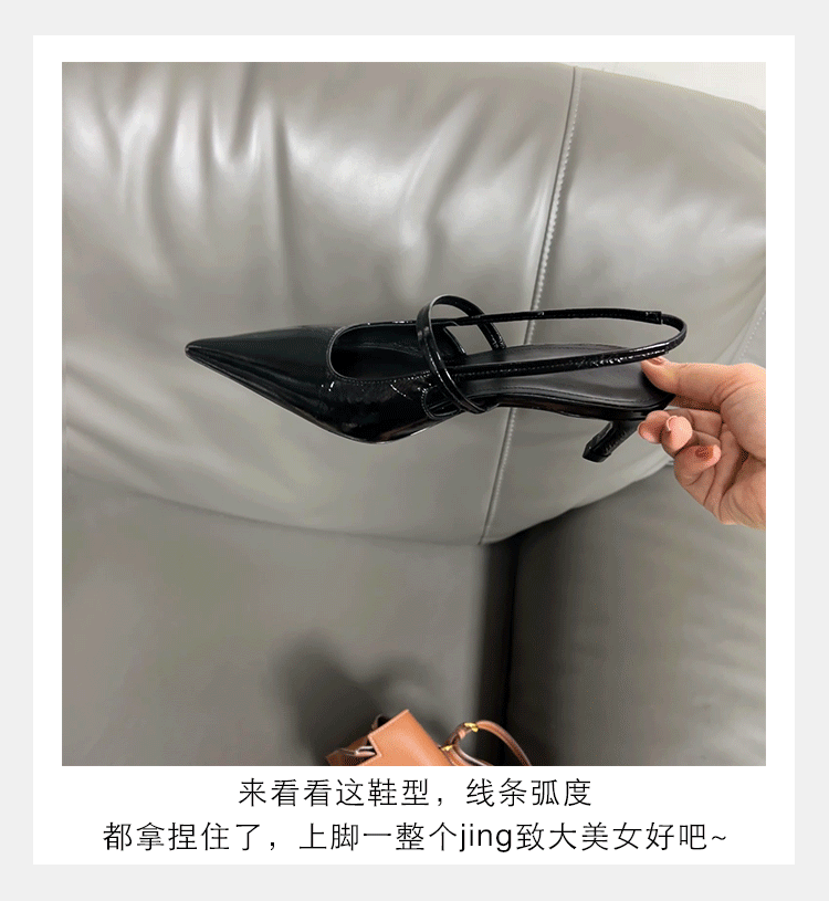 포도마마 스튜디오리 여름 프렌치 스타일 뾰족코 오픈백 샌들 키튼힐 여성용 원뿔형 중간 굽 신발스토어 가기