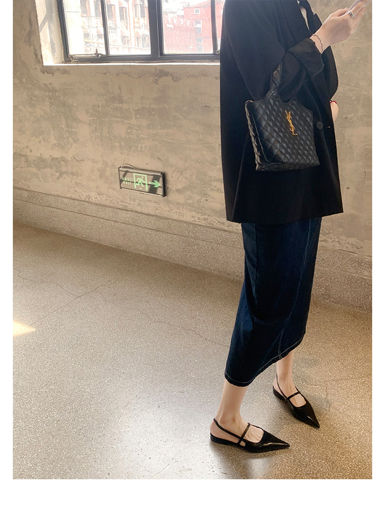 포도마마 스튜디오리 여름 프렌치 스타일 뾰족코 오픈백 샌들 키튼힐 여성용 원뿔형 중간 굽 신발
