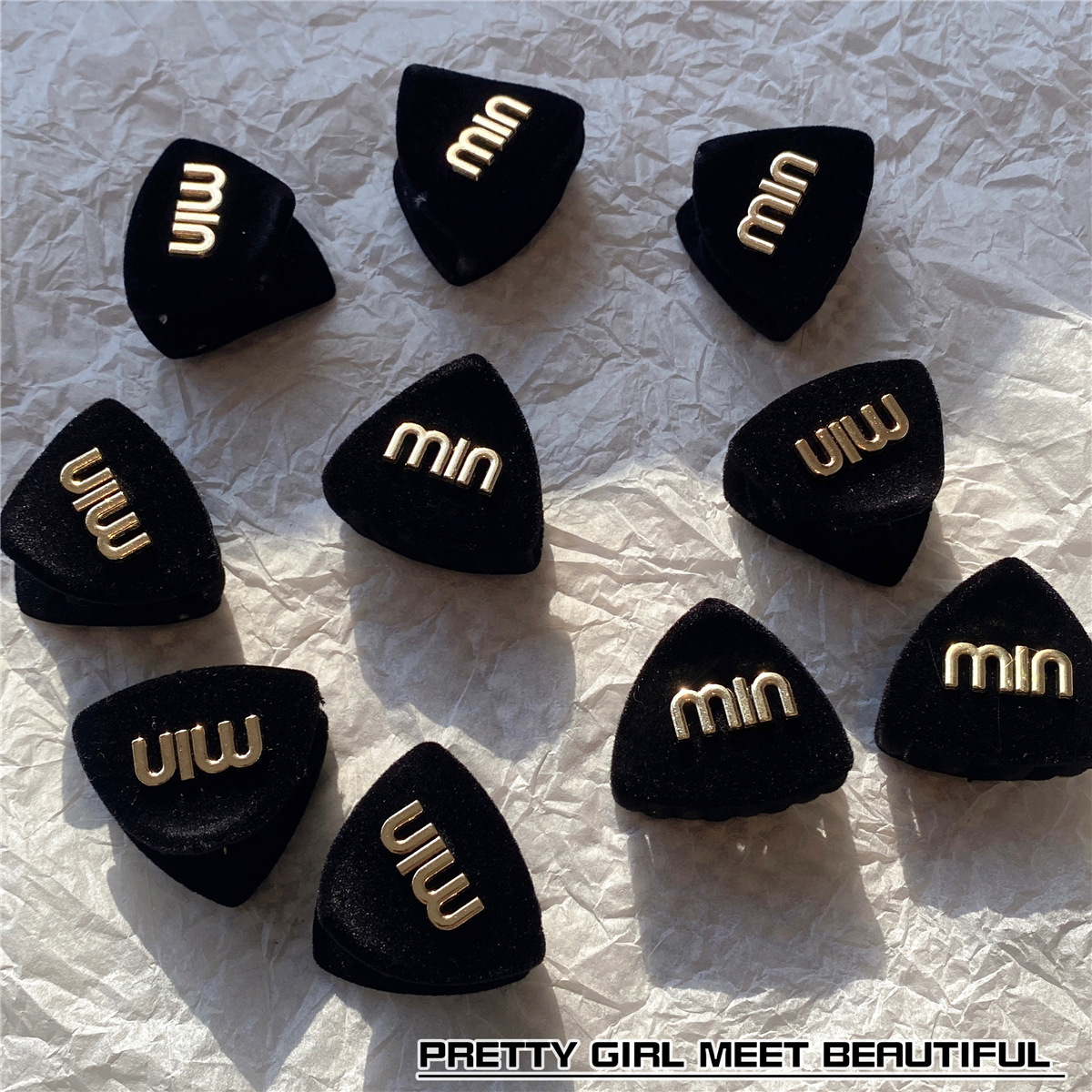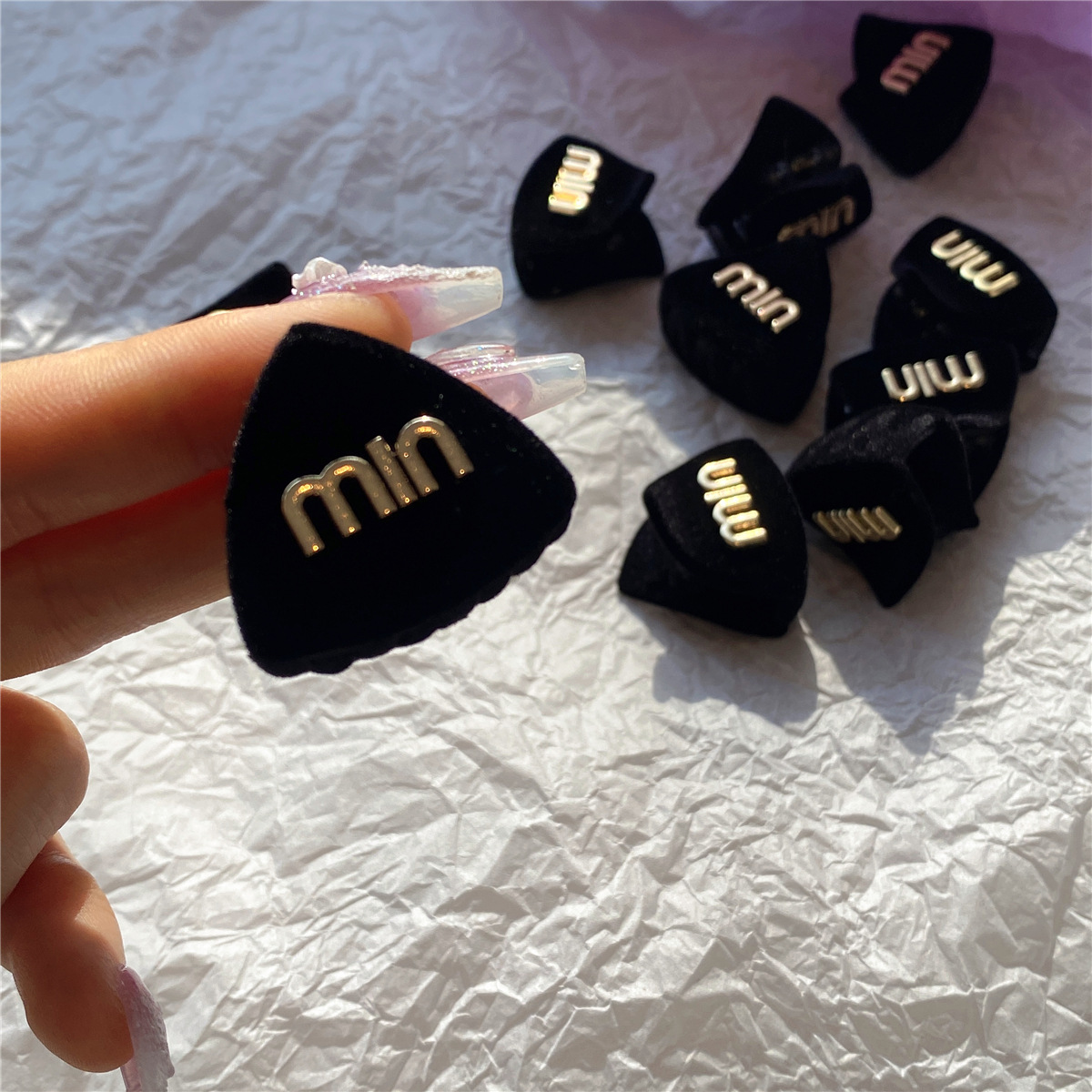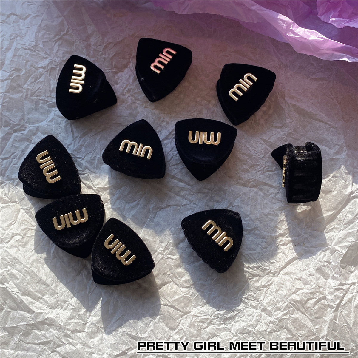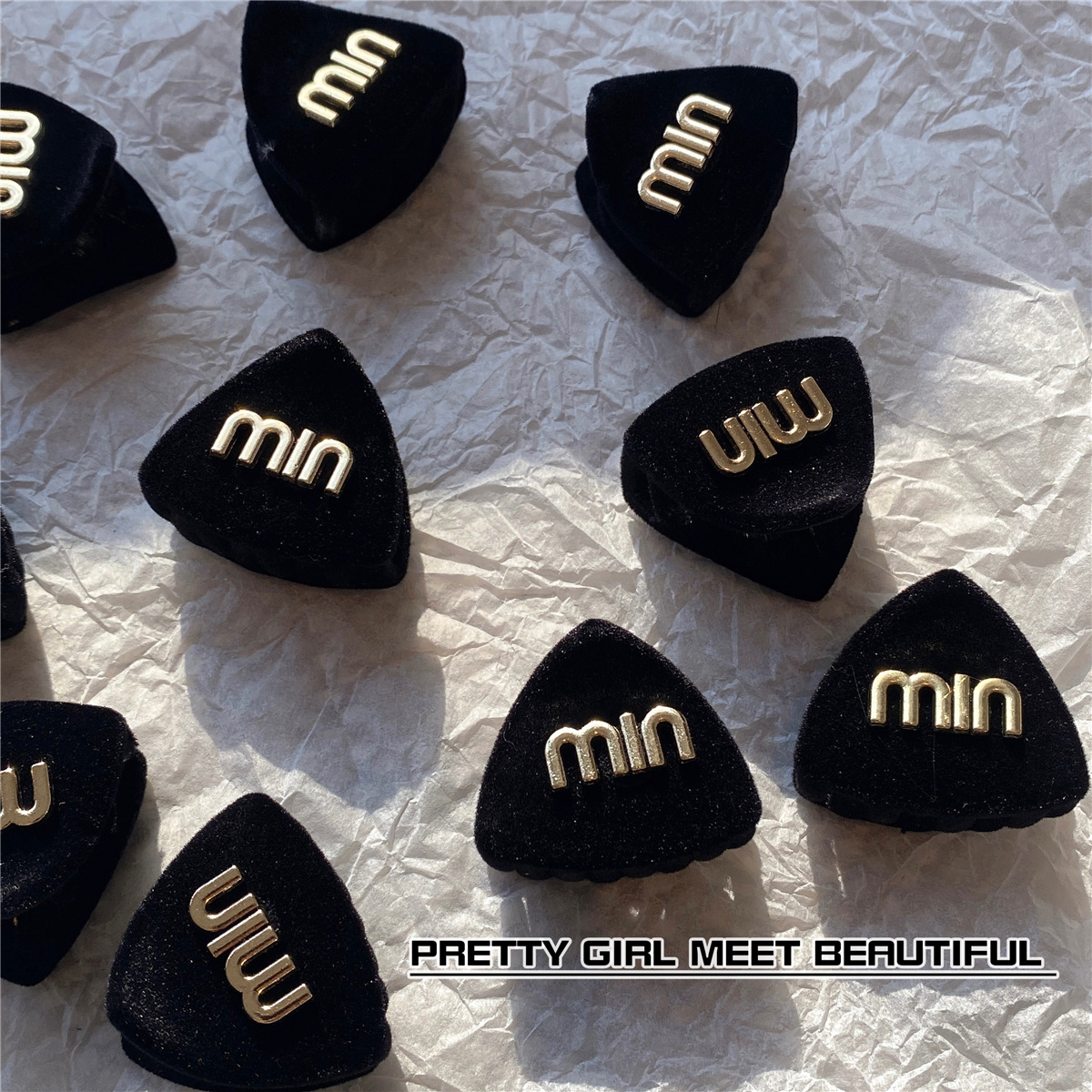 봄 2023 새로운 검은 무리 금속 편지 MIN 작은 삼각형 머리핀 프린지 잡아 헤어 액세서리