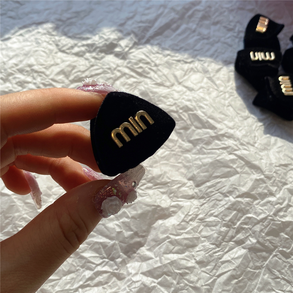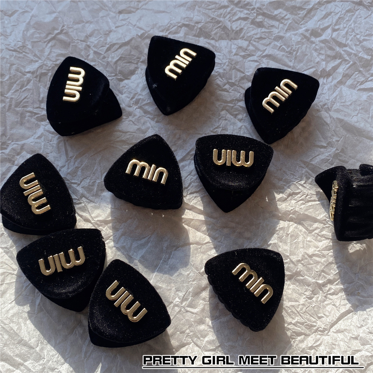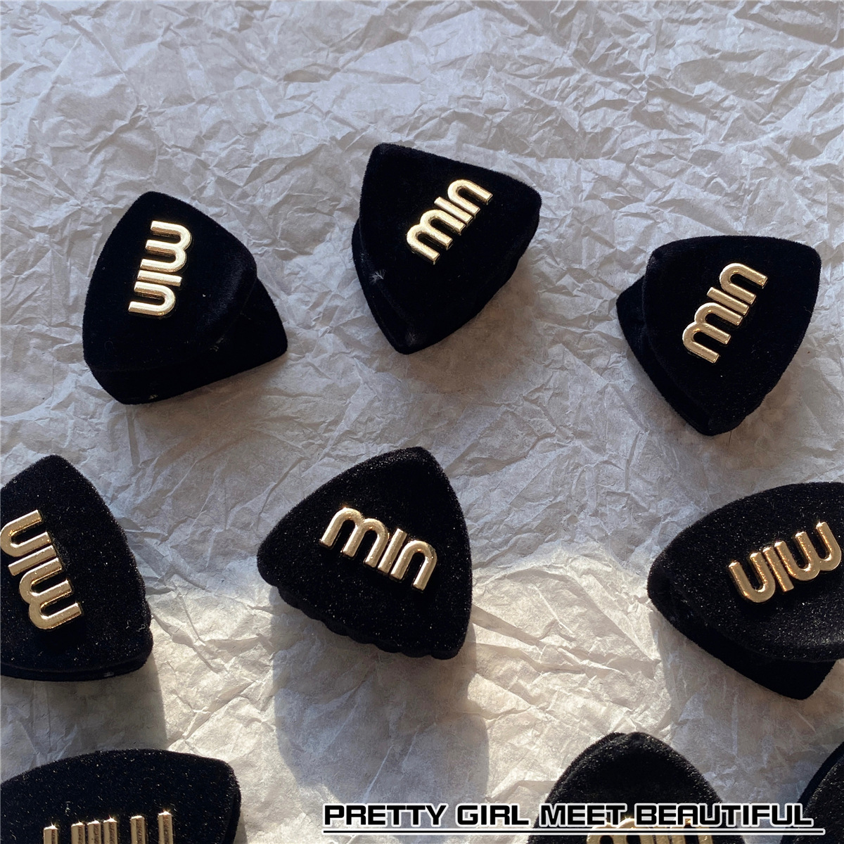 봄 2023 새로운 검은 무리 금속 편지 MIN 작은 삼각형 머리핀 프린지 잡아 헤어 액세서리스토어 가기